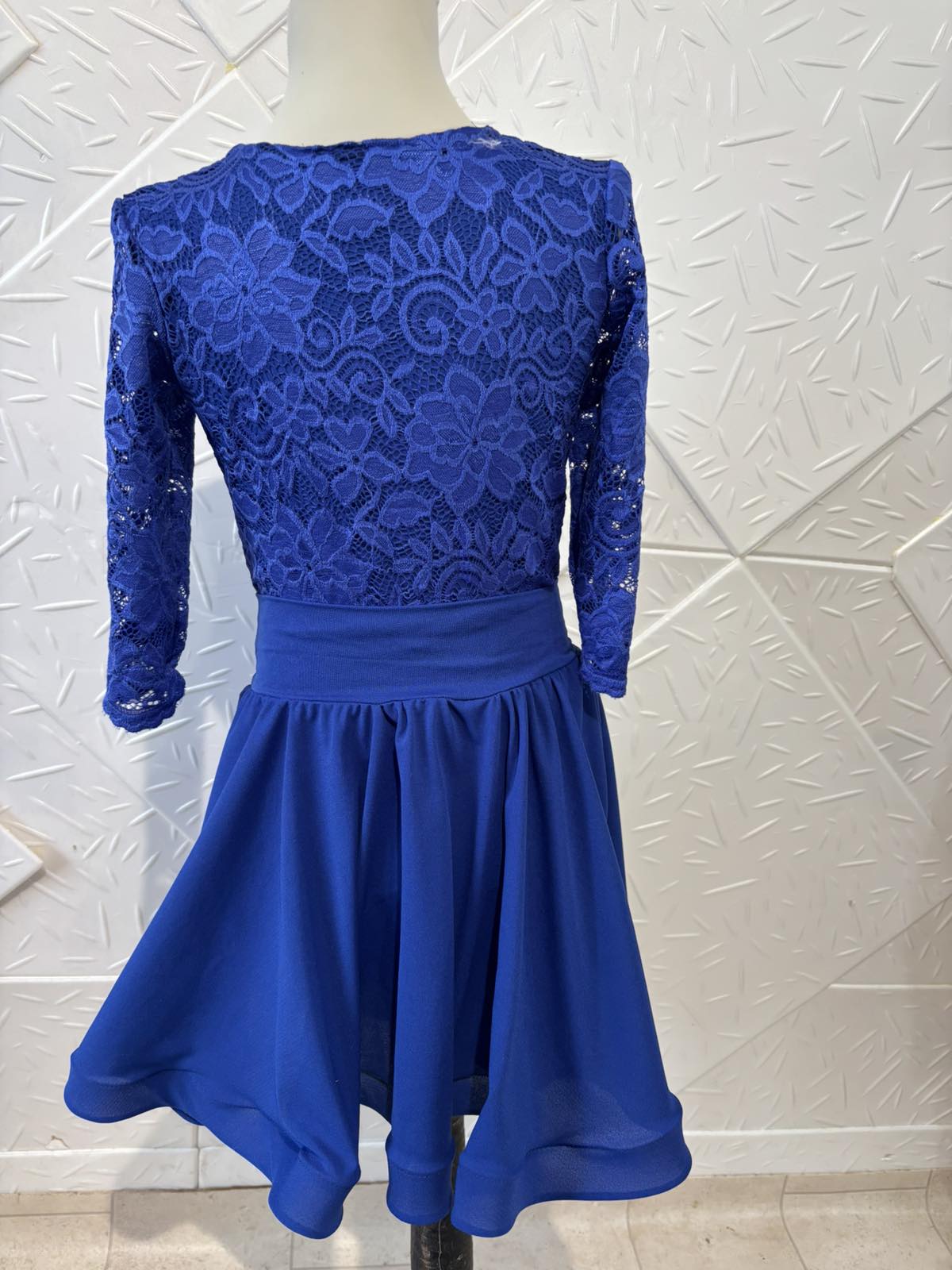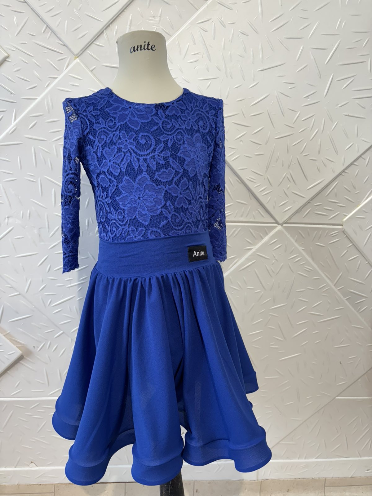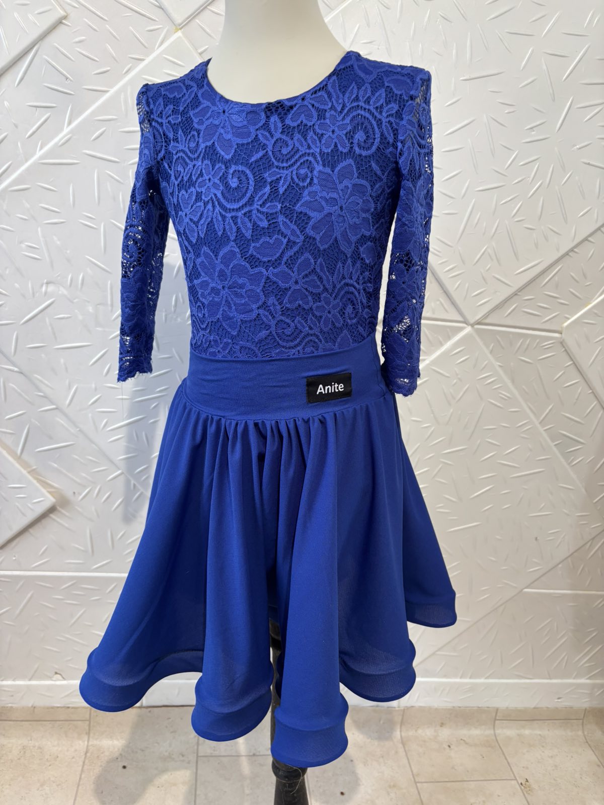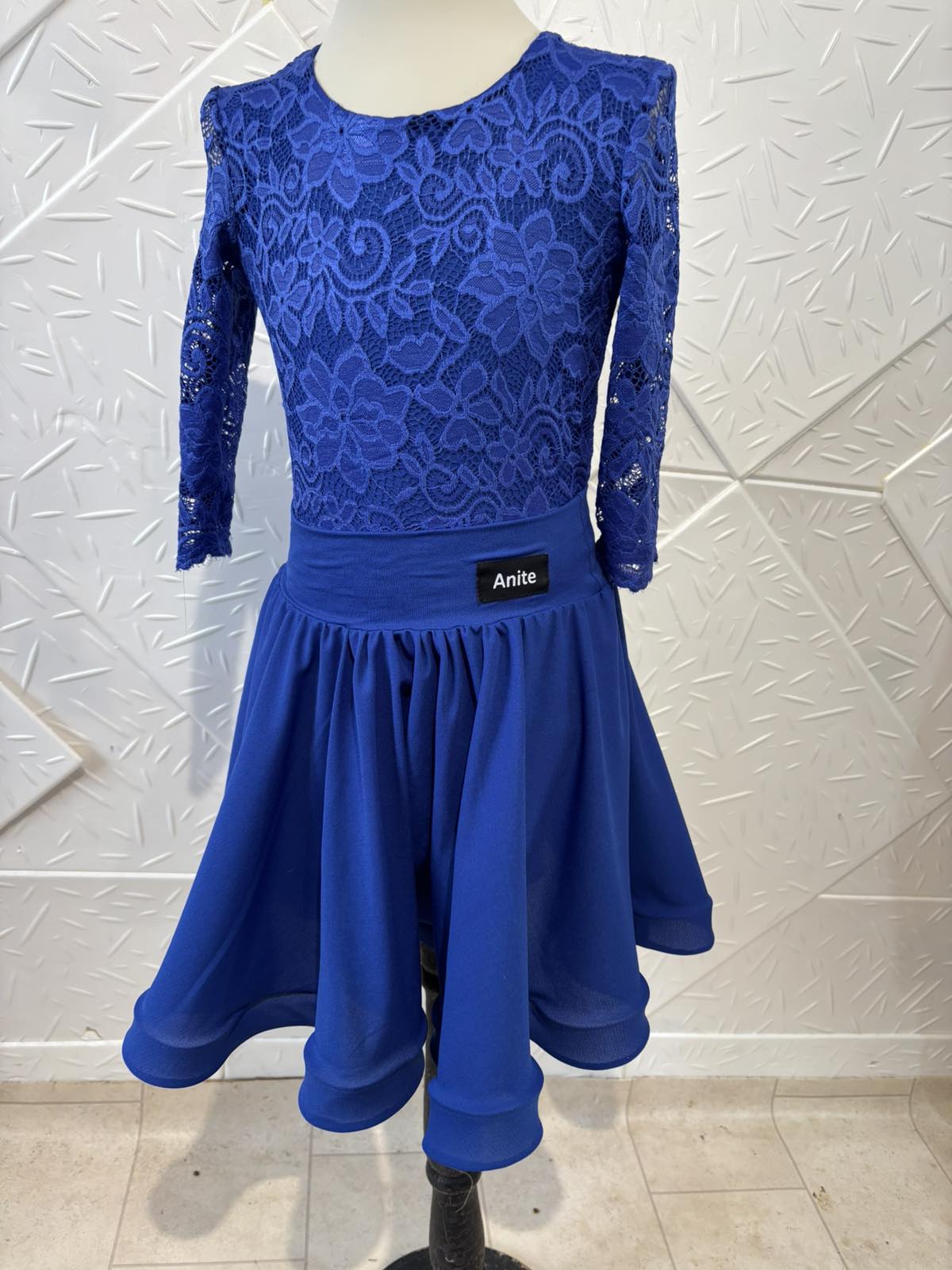 Боди и пола за спортни танци с дантела в кралско син цвят.