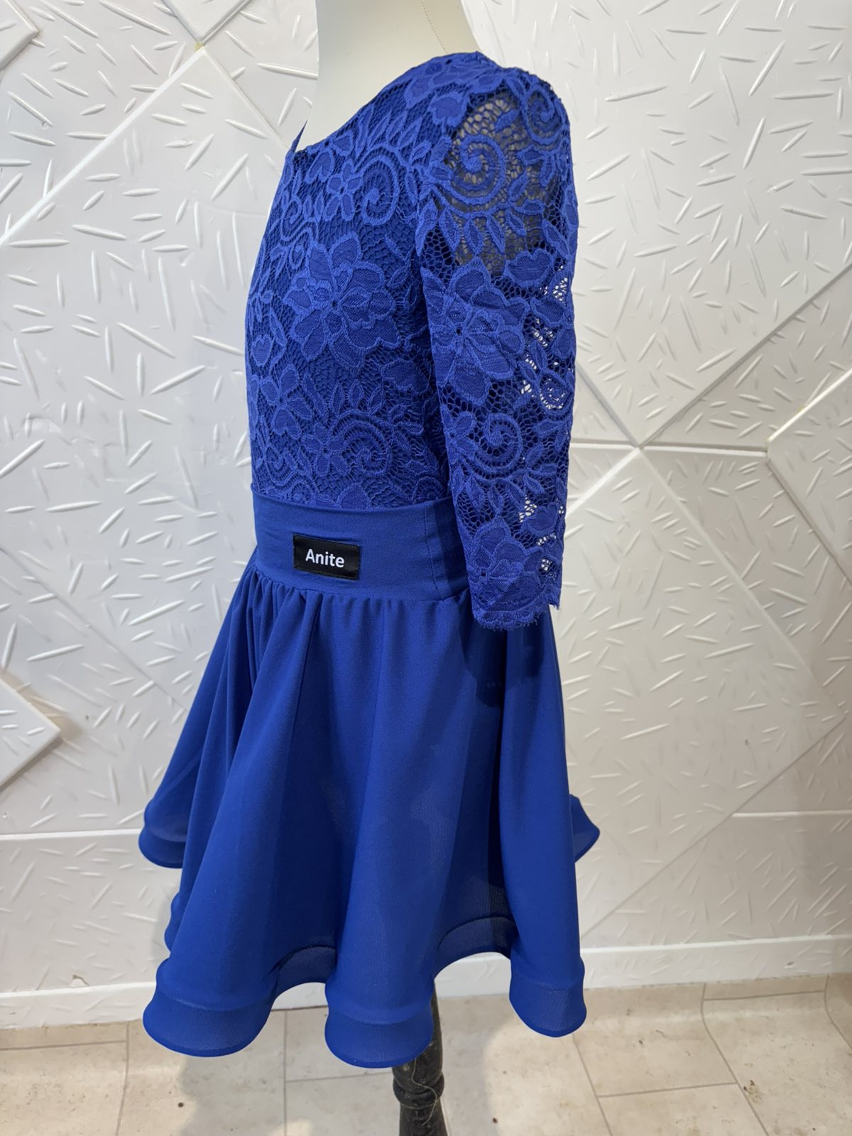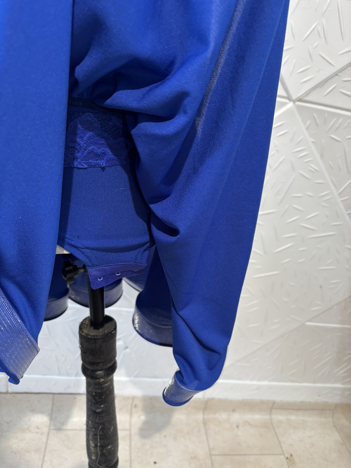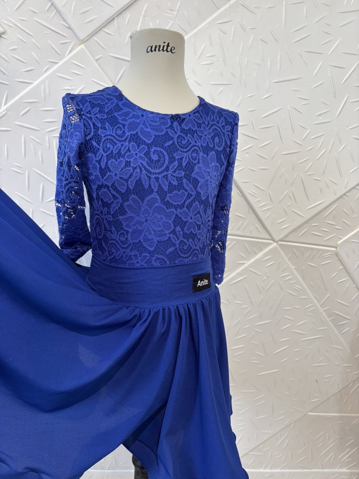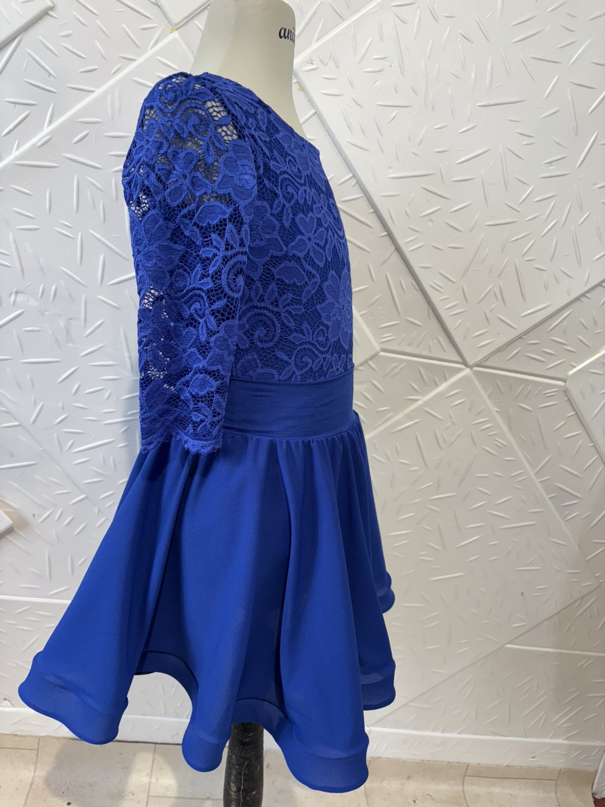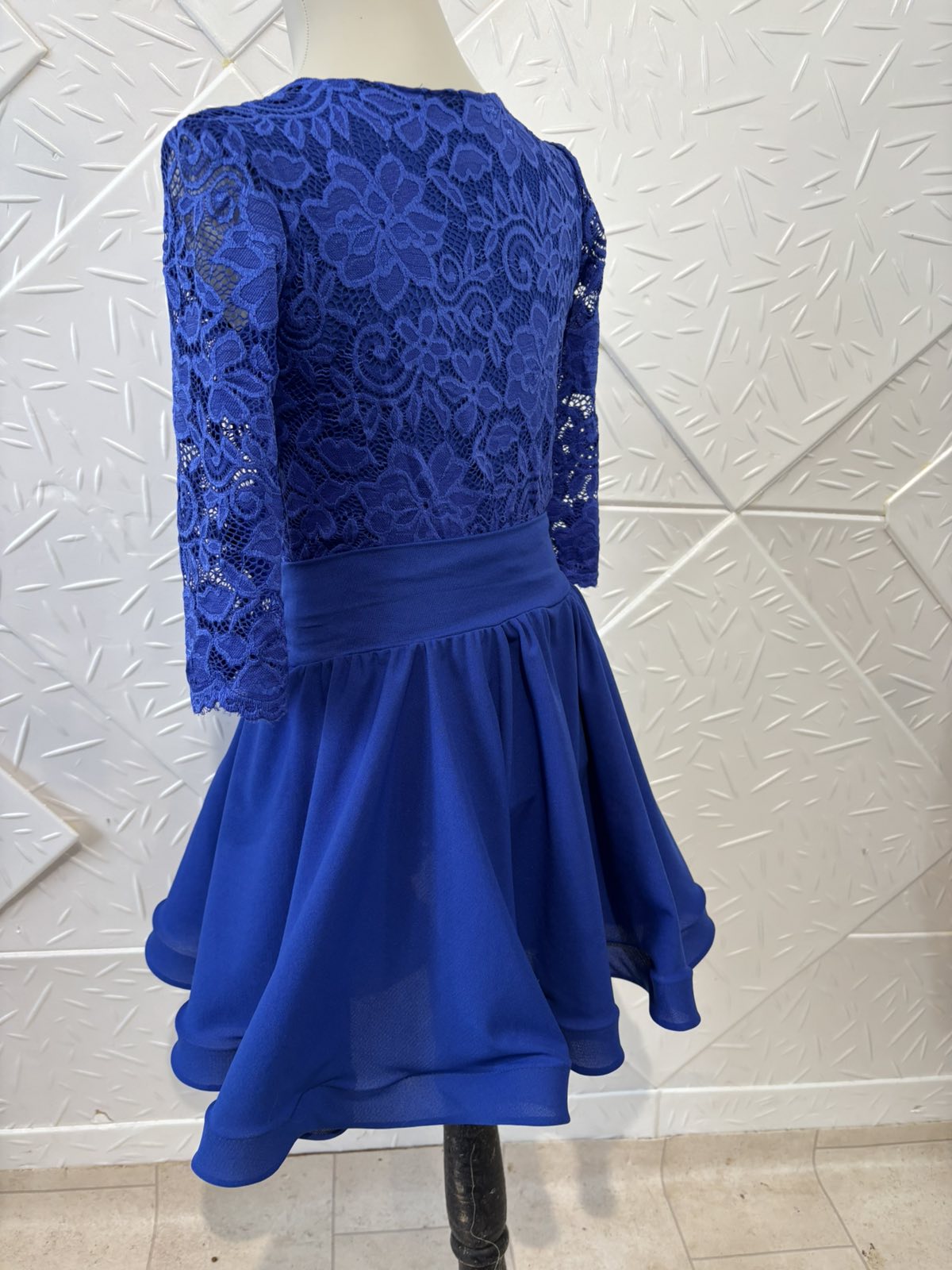 Боди и пола за спортни танци с дантела в кралско син цвят.