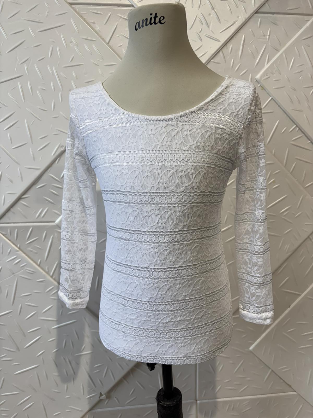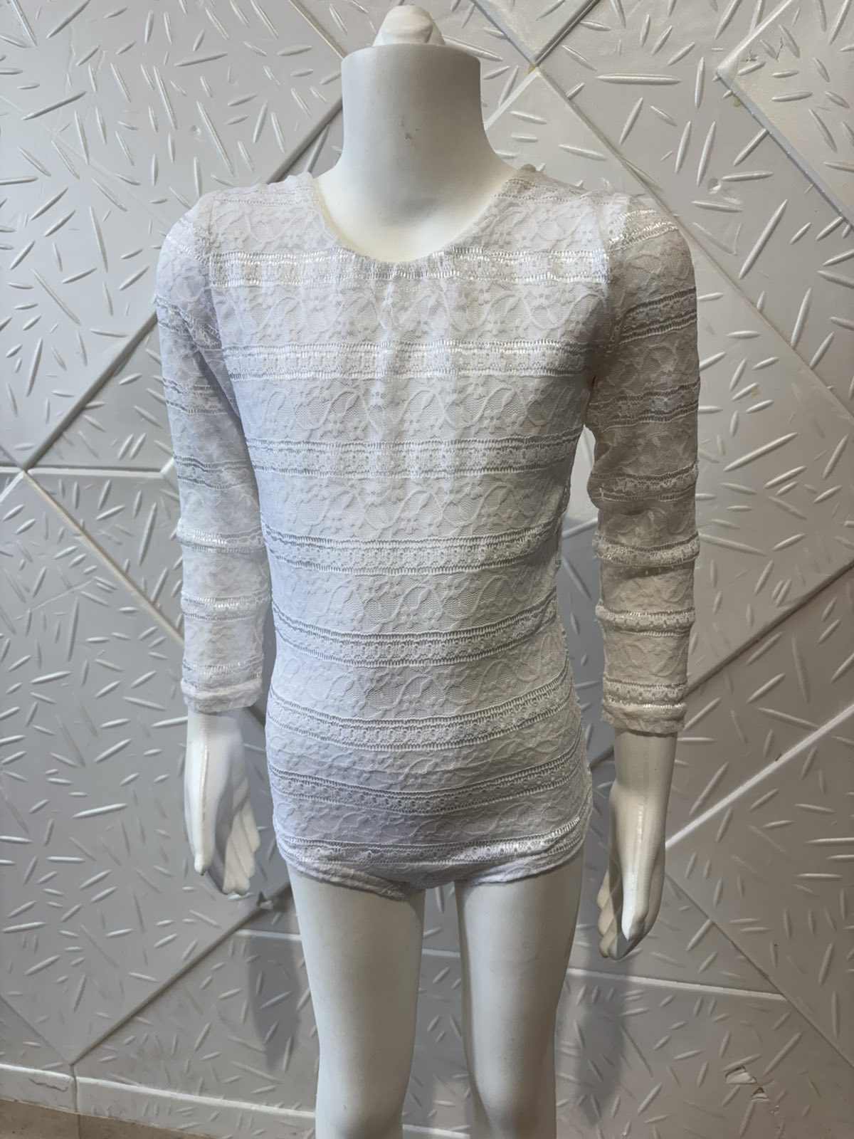 Детско боди за спортни танци с дантела , бодито може да е с закопчаване отдолу ако детето го дразни може и без , ръкавчетата също може да бъдат – дълги, три четвърти и къси.