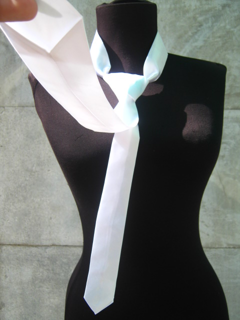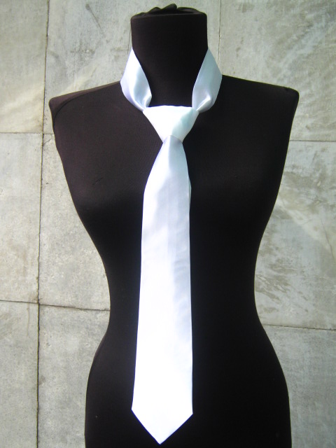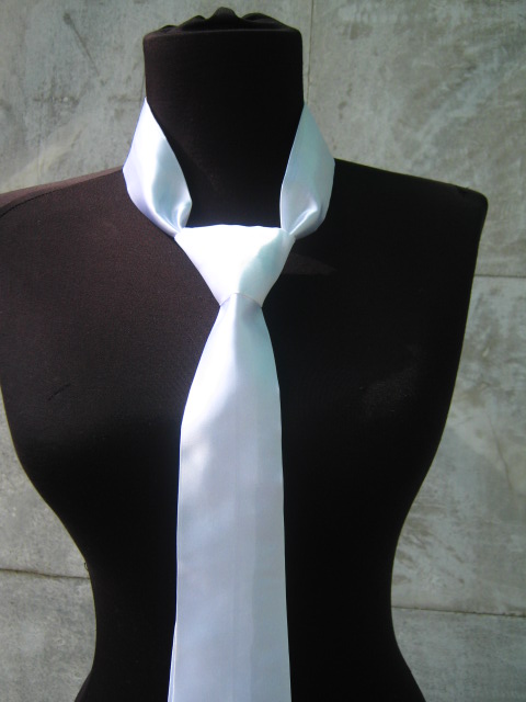 бяла сатенена вратовръзка