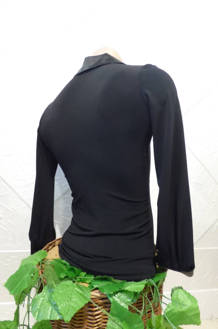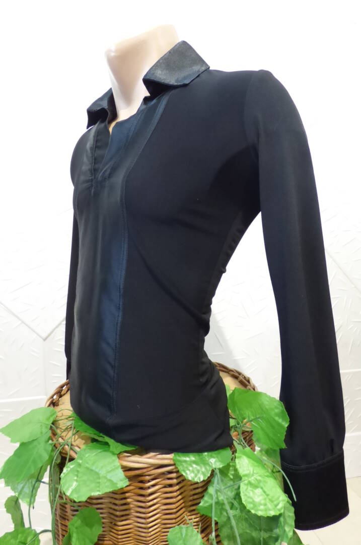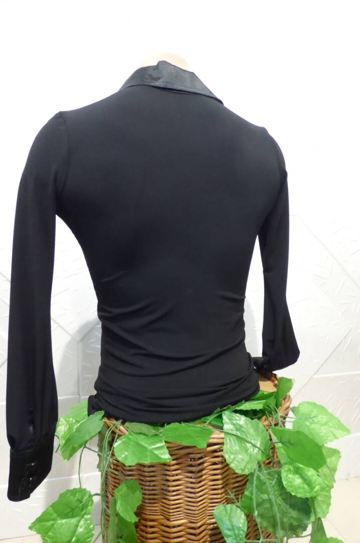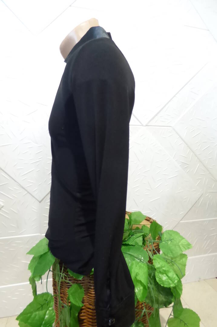 Черна риза за спортн танци , изработена от полиамид и сатен . модела е подходящ за дете с височина от 146см. до165см. или XS.