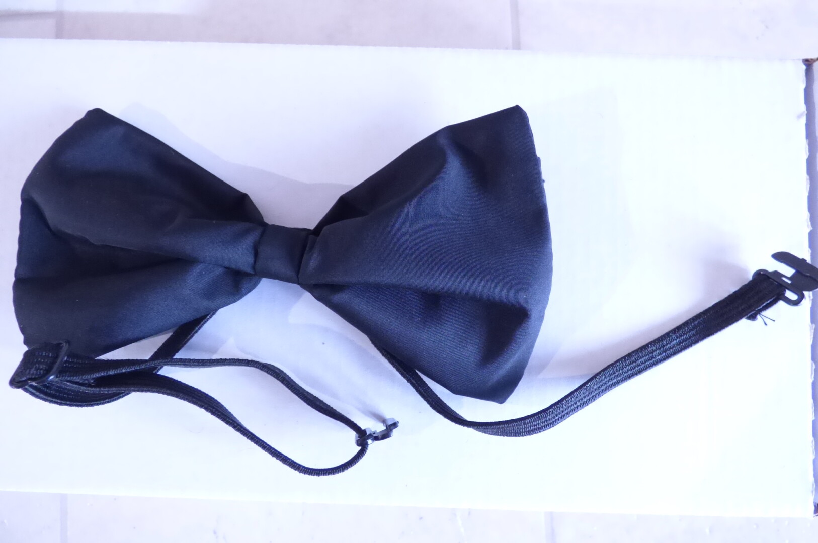 Черна сатенена папионка с ластик , регулатор и пласмасова закопчалка.