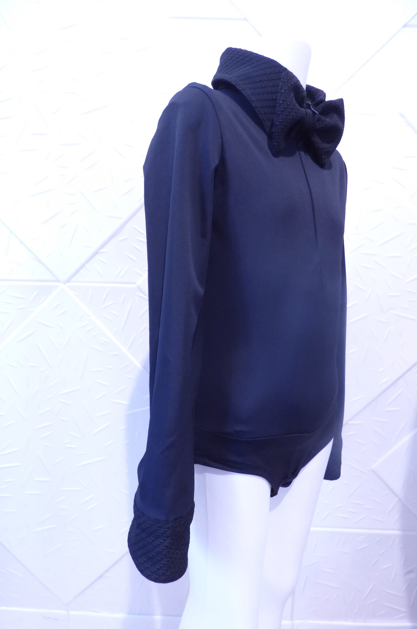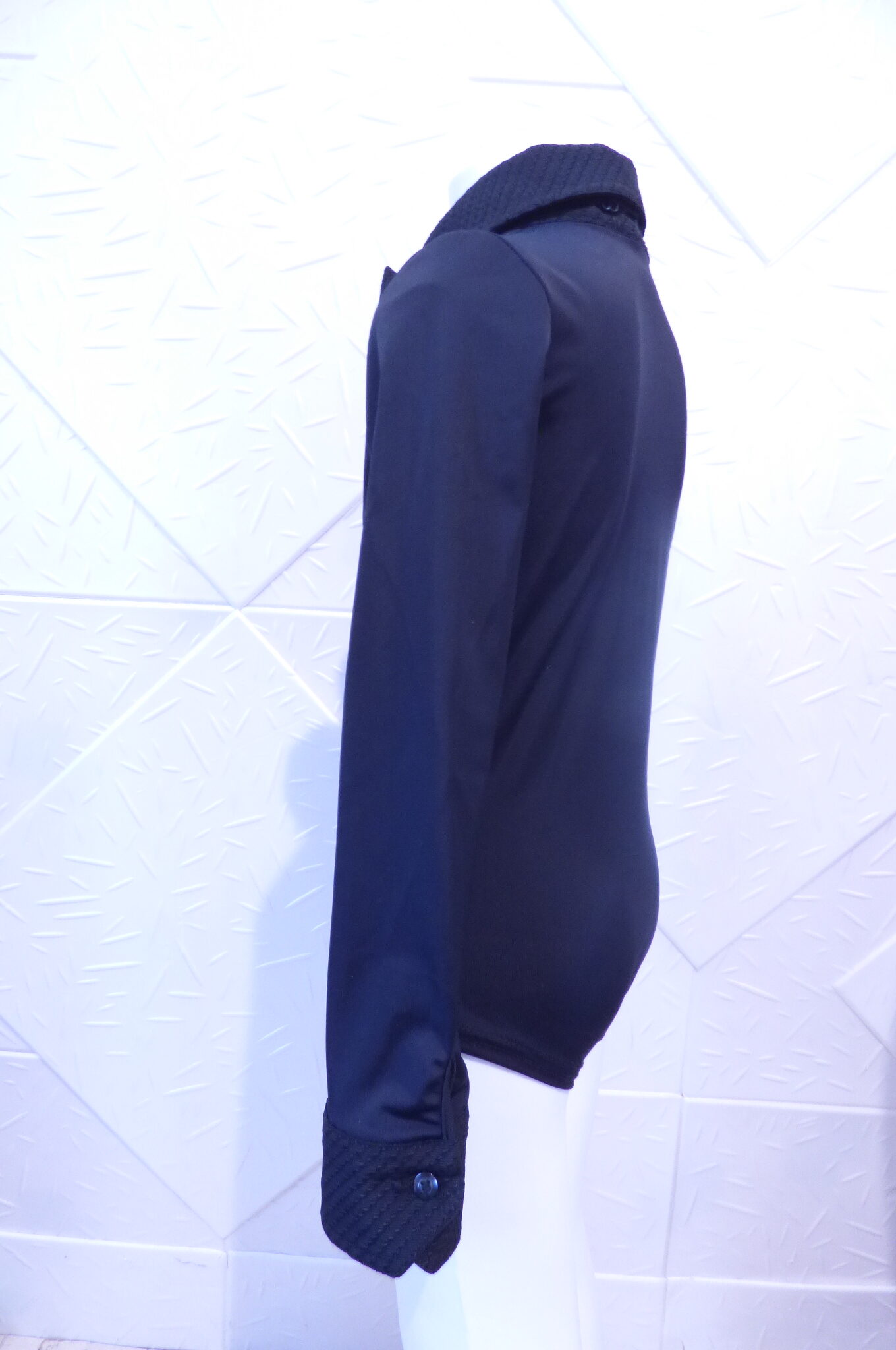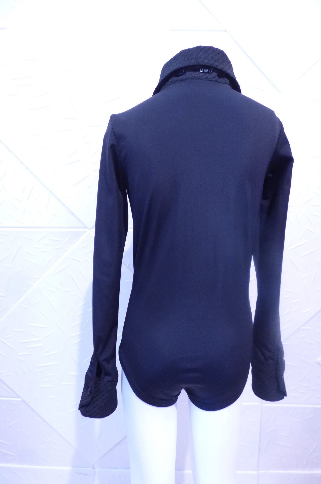 Черно боди -риза за спортни танци,изработено от ликра .