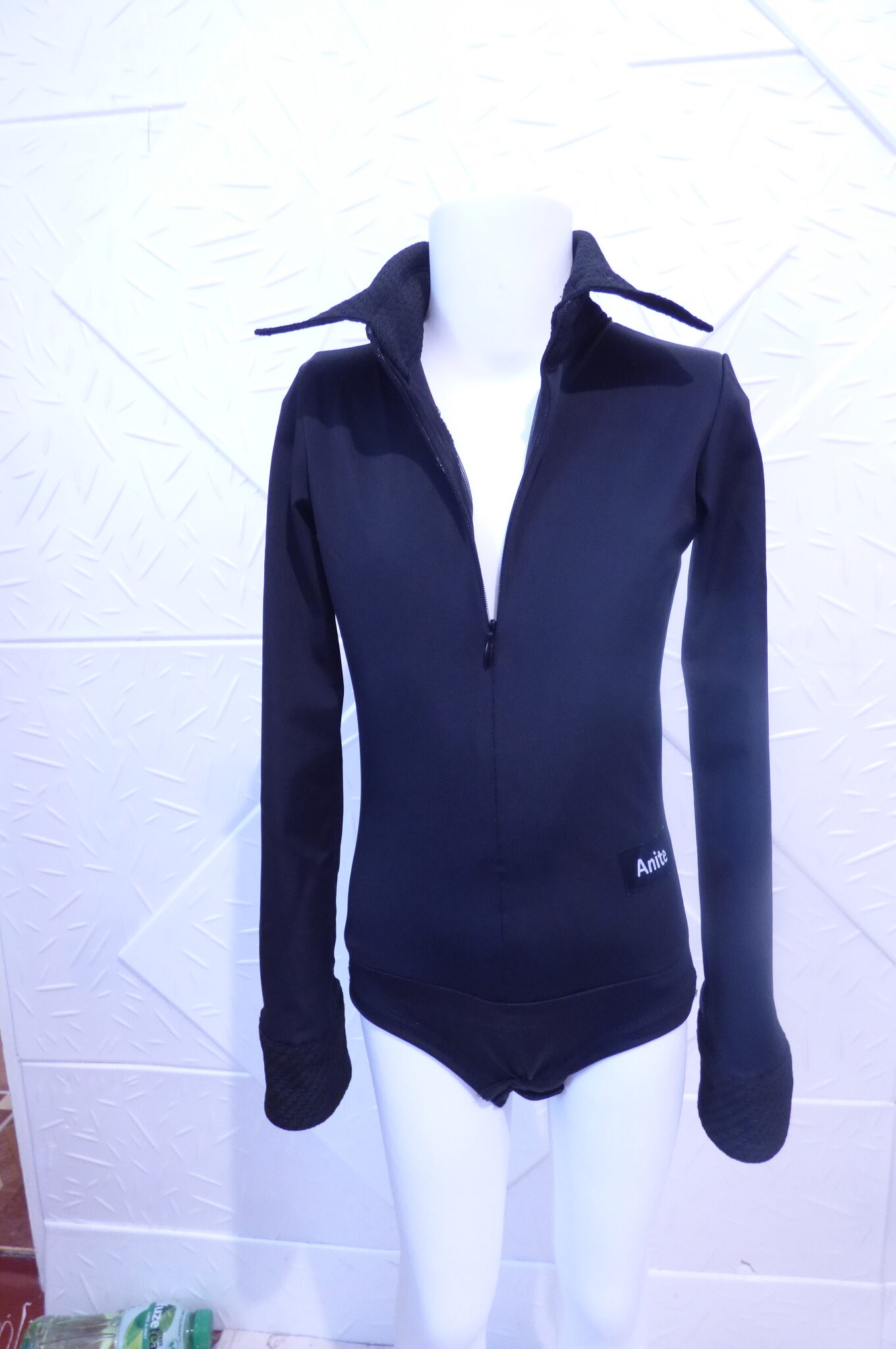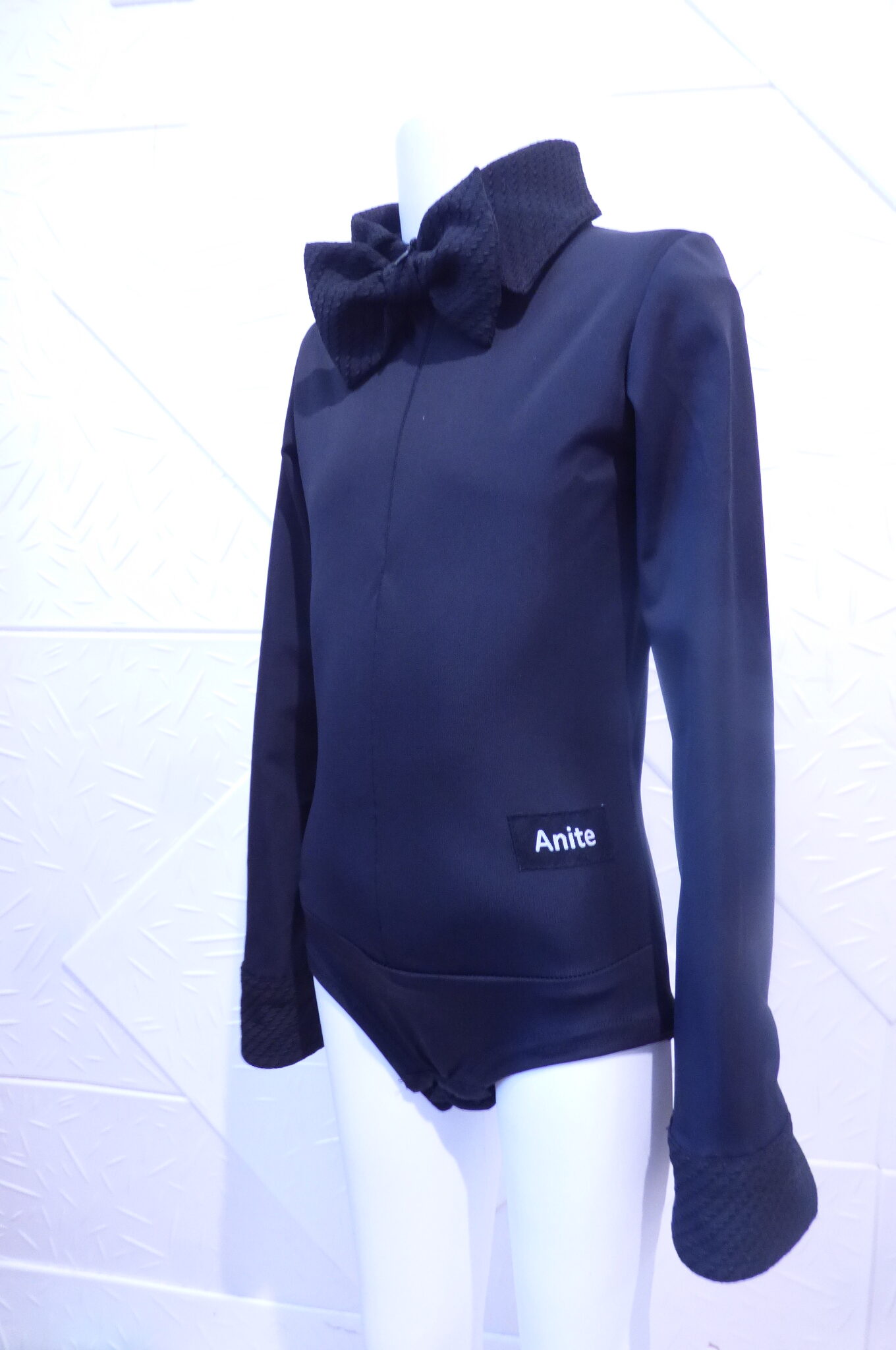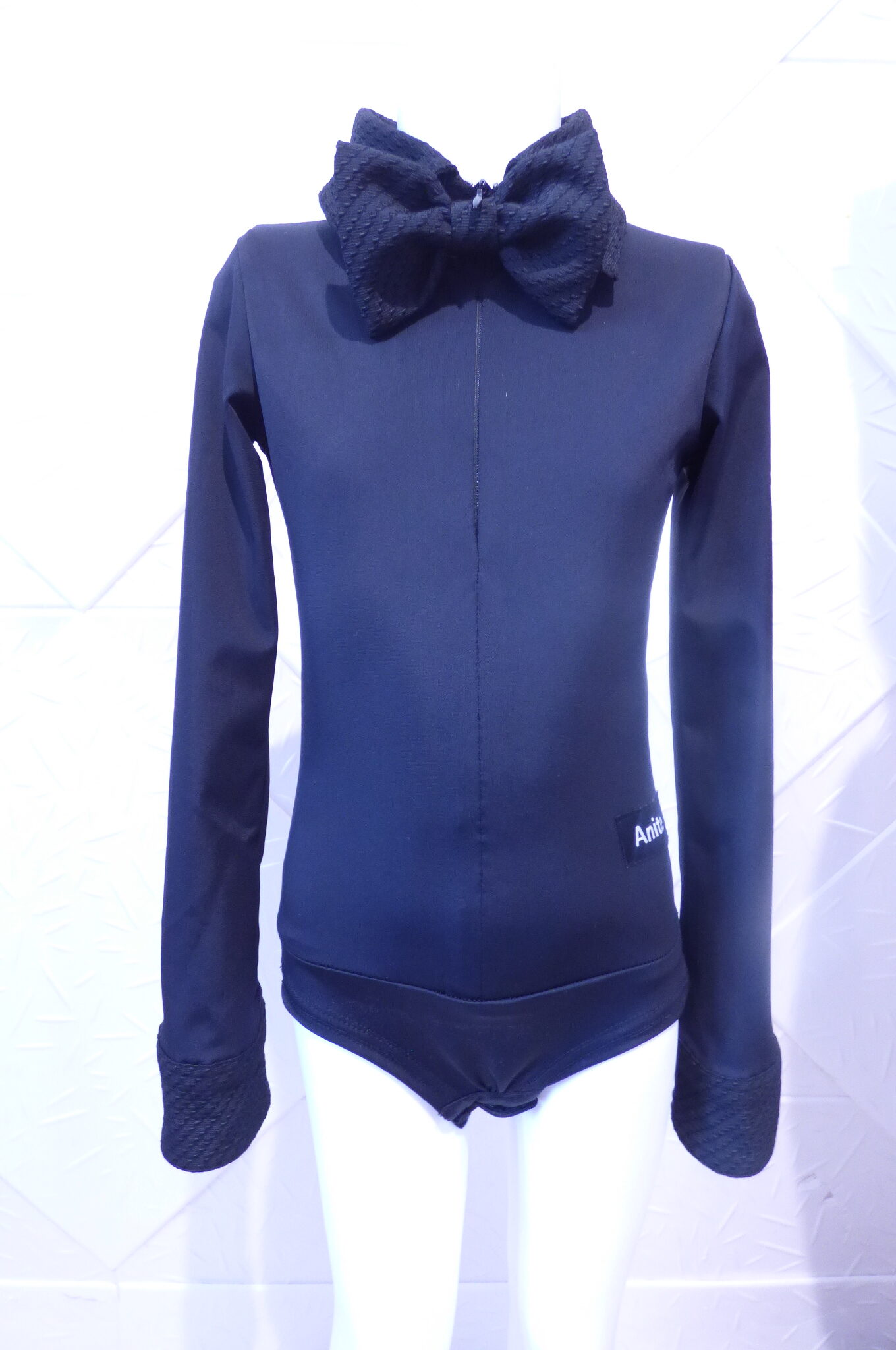 Черно боди -риза за спортни танци,изработено от ликра .
