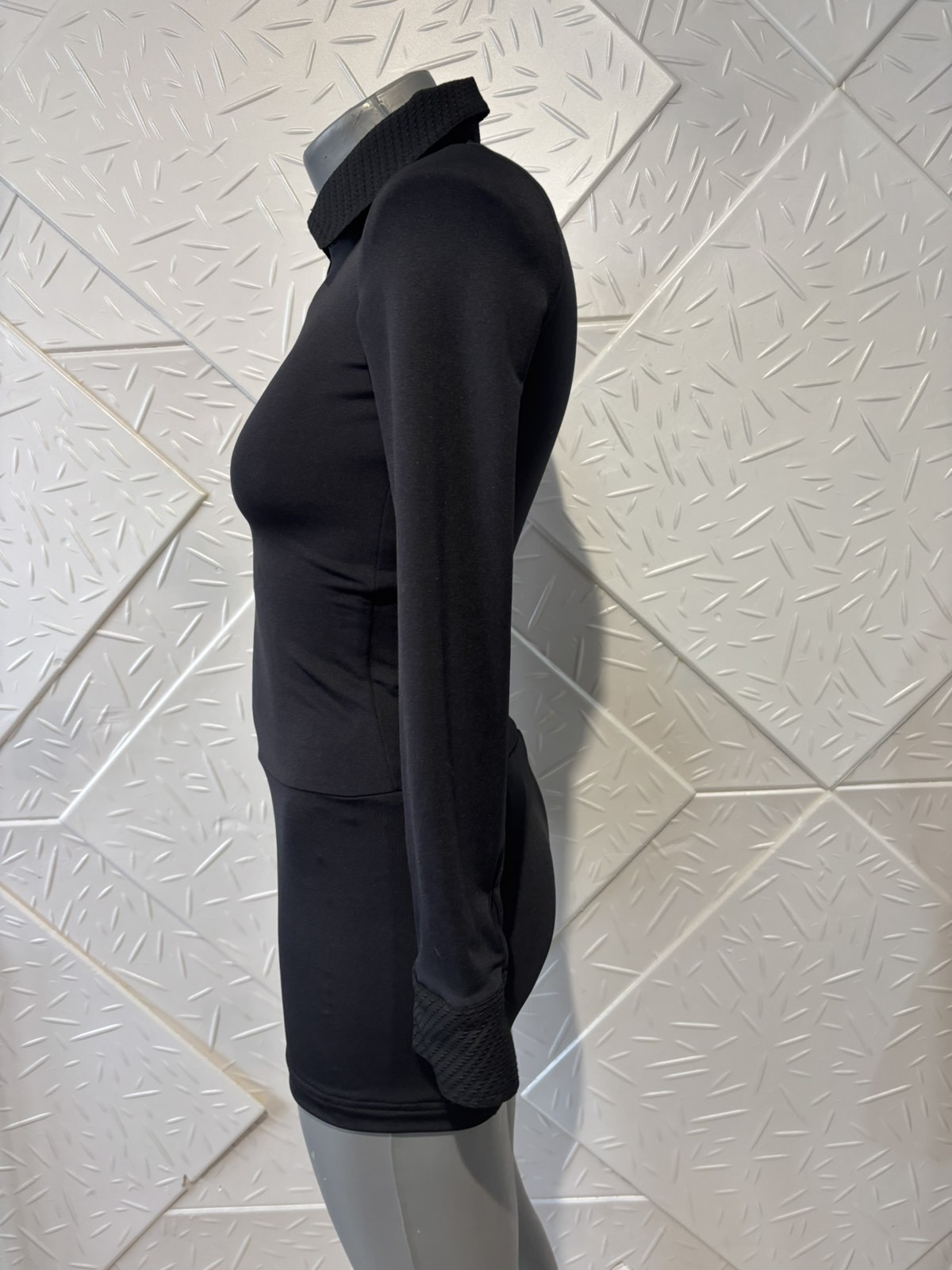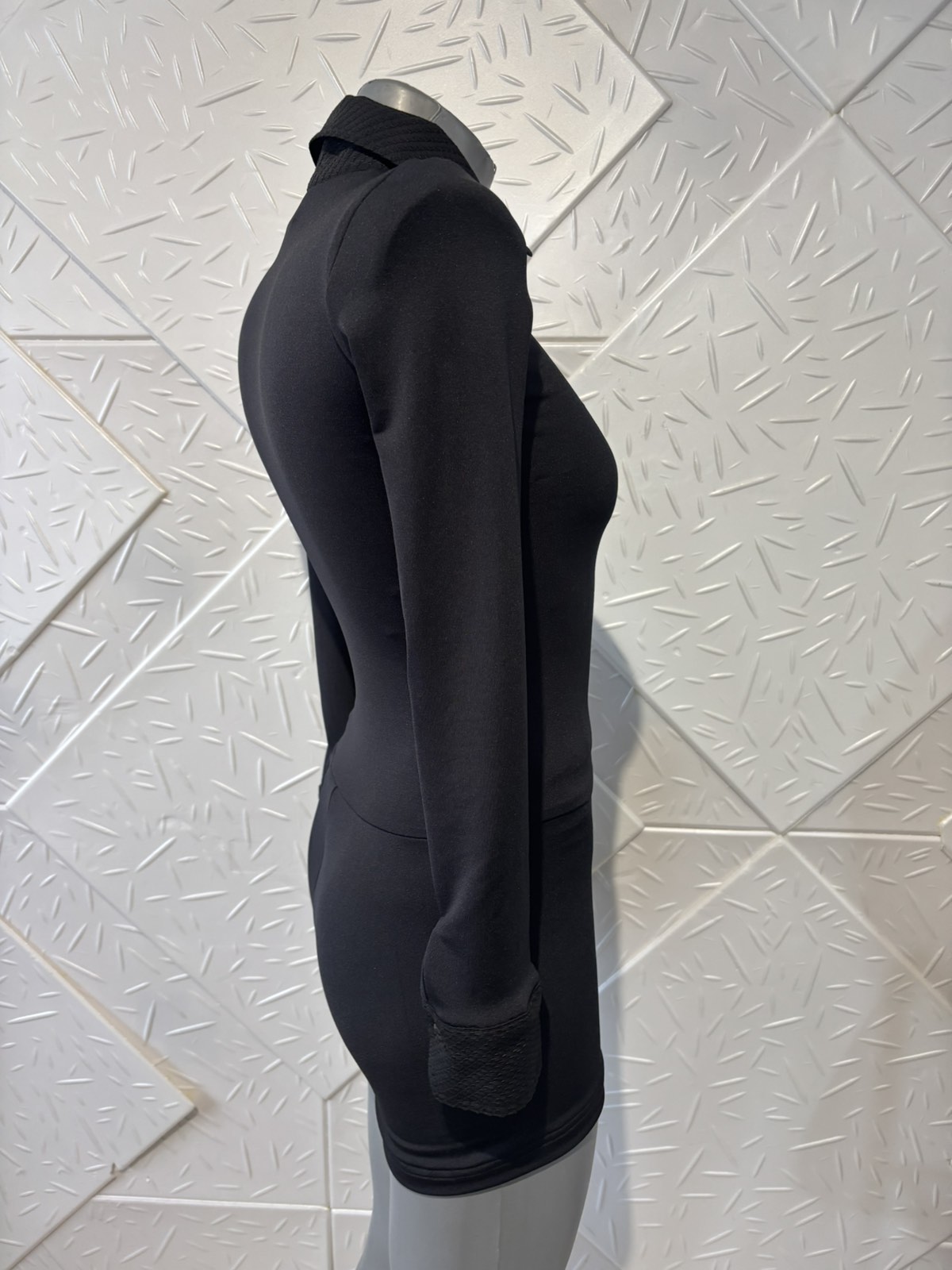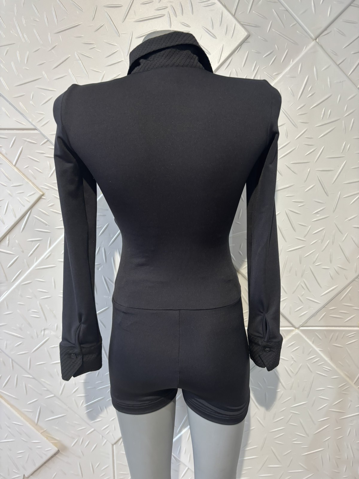 Черно боди риза за спортни танци, модела е с боксерки няма закопчаване отдолу . При поръчка ще Ви се обадя за да уточним подробностите относно модела и доставката.