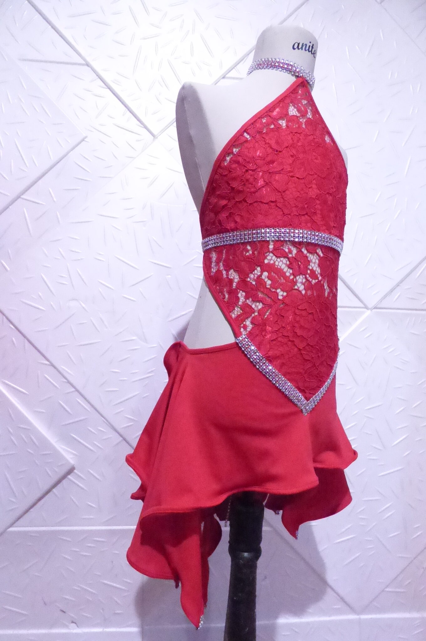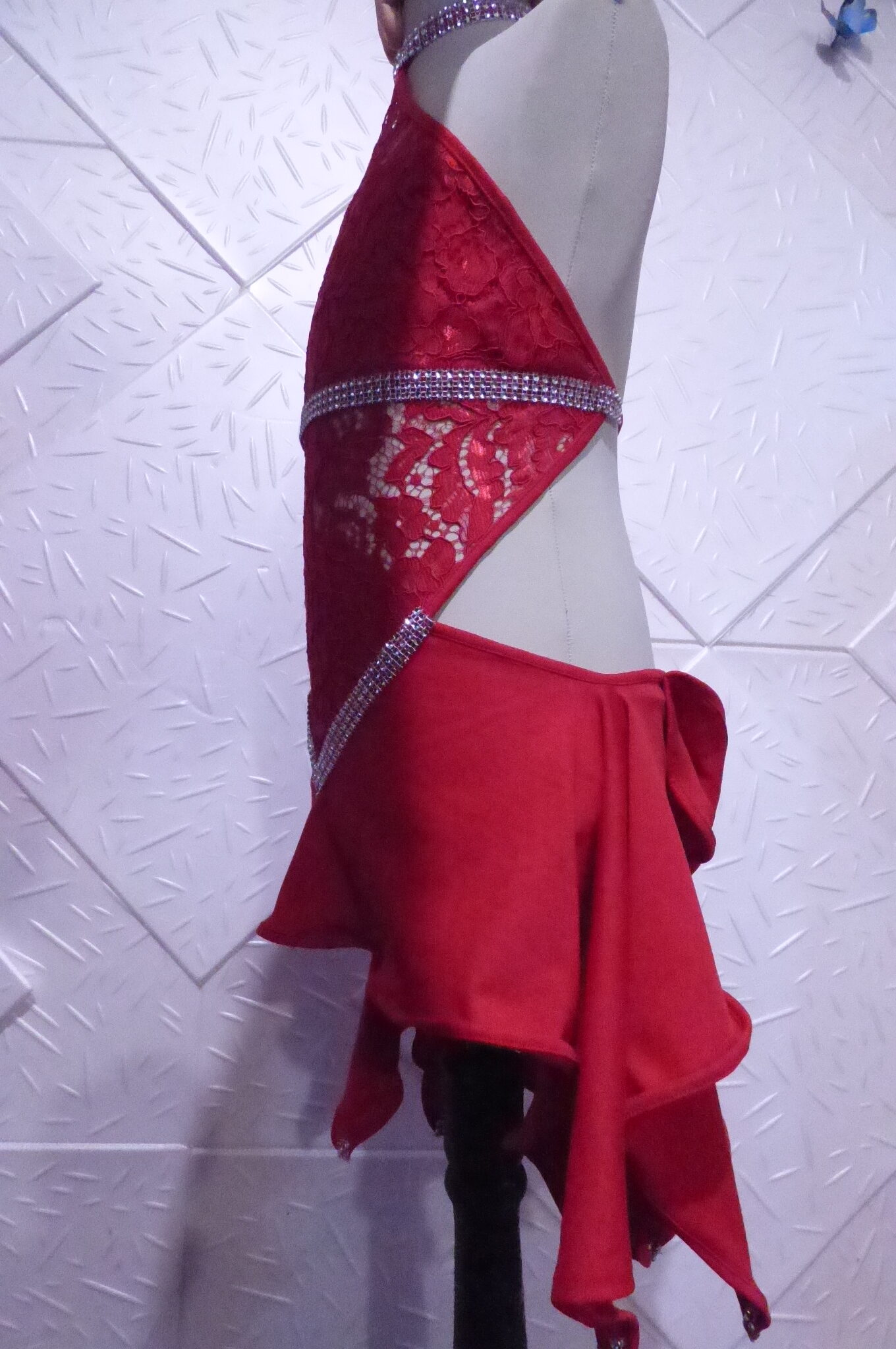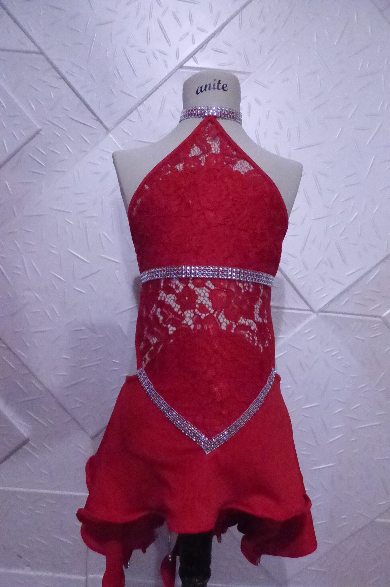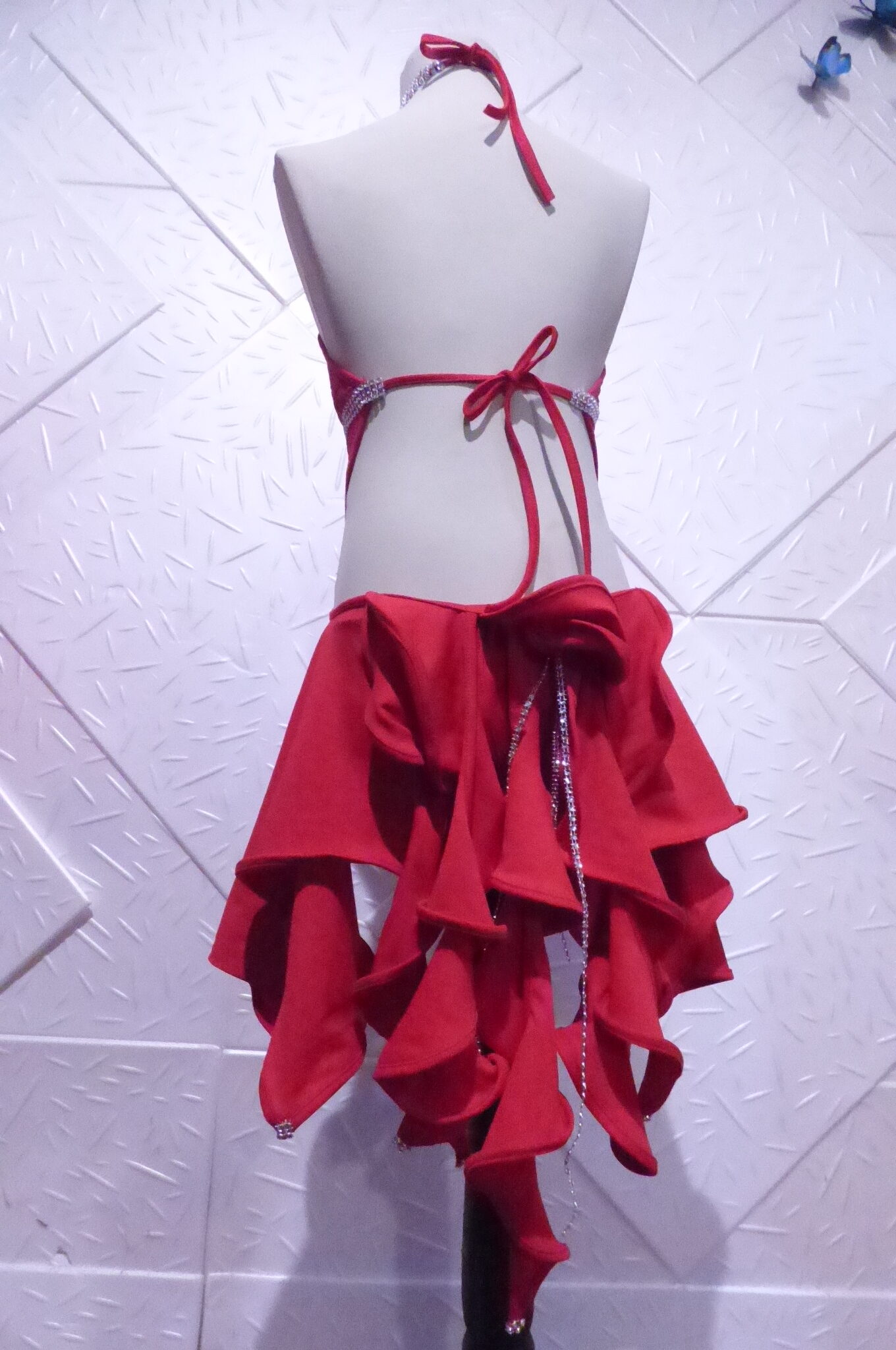 Червена детска рокля за спортни танци ,