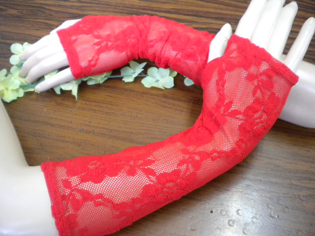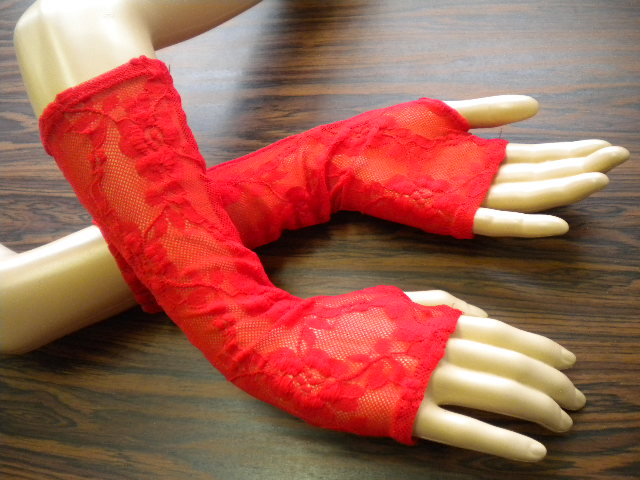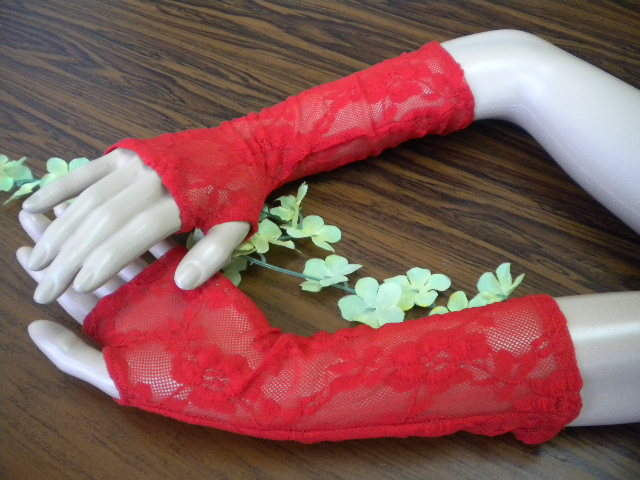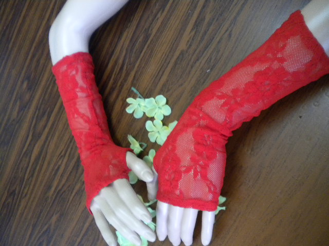 Червени дантелени ръкавели до лакътя ,