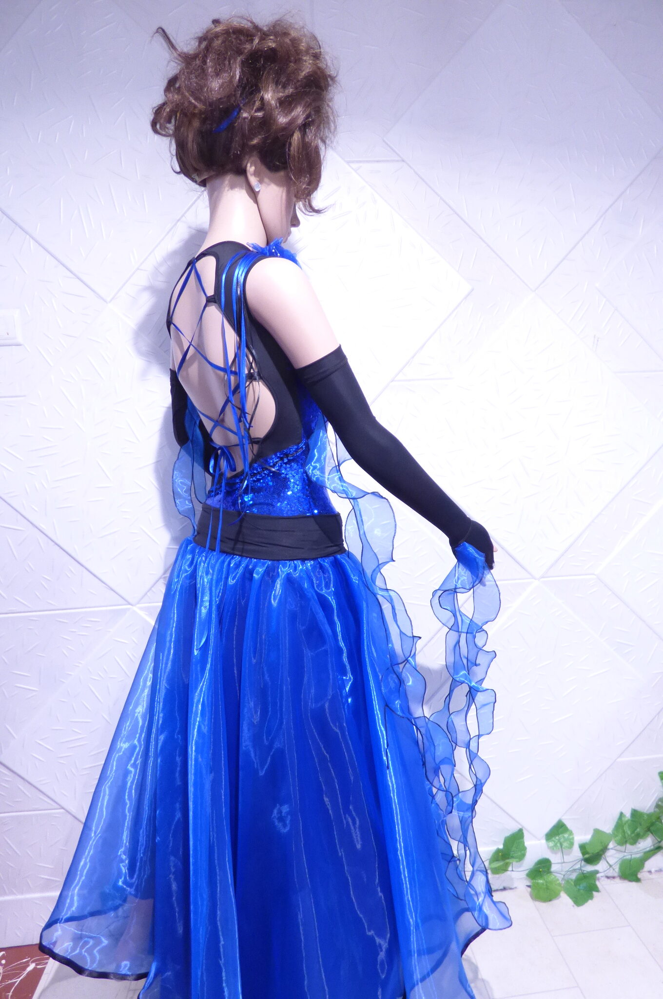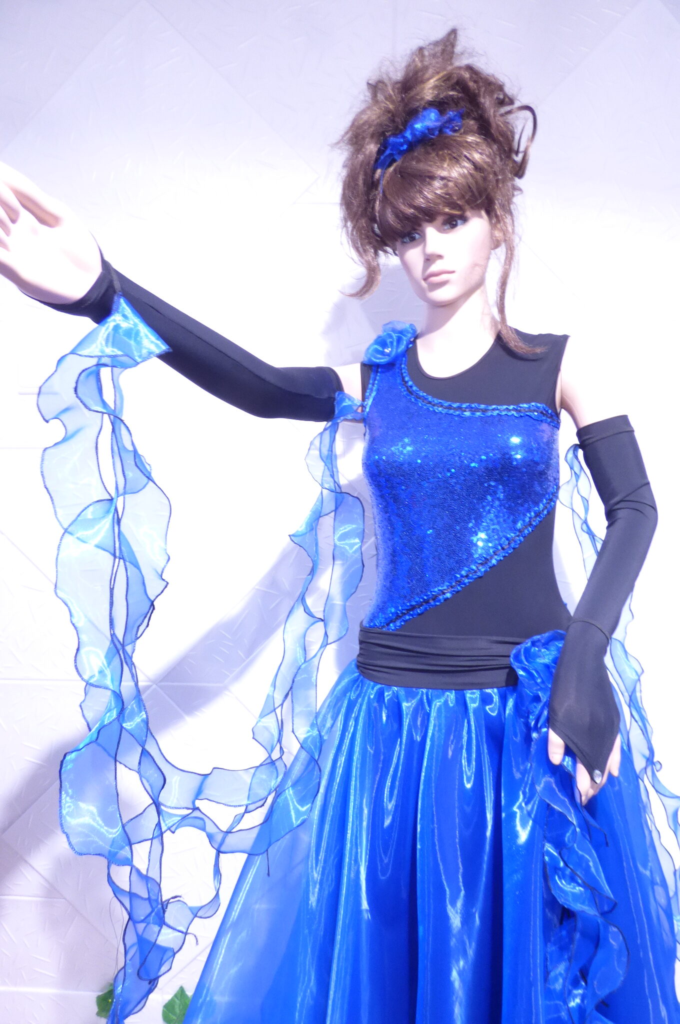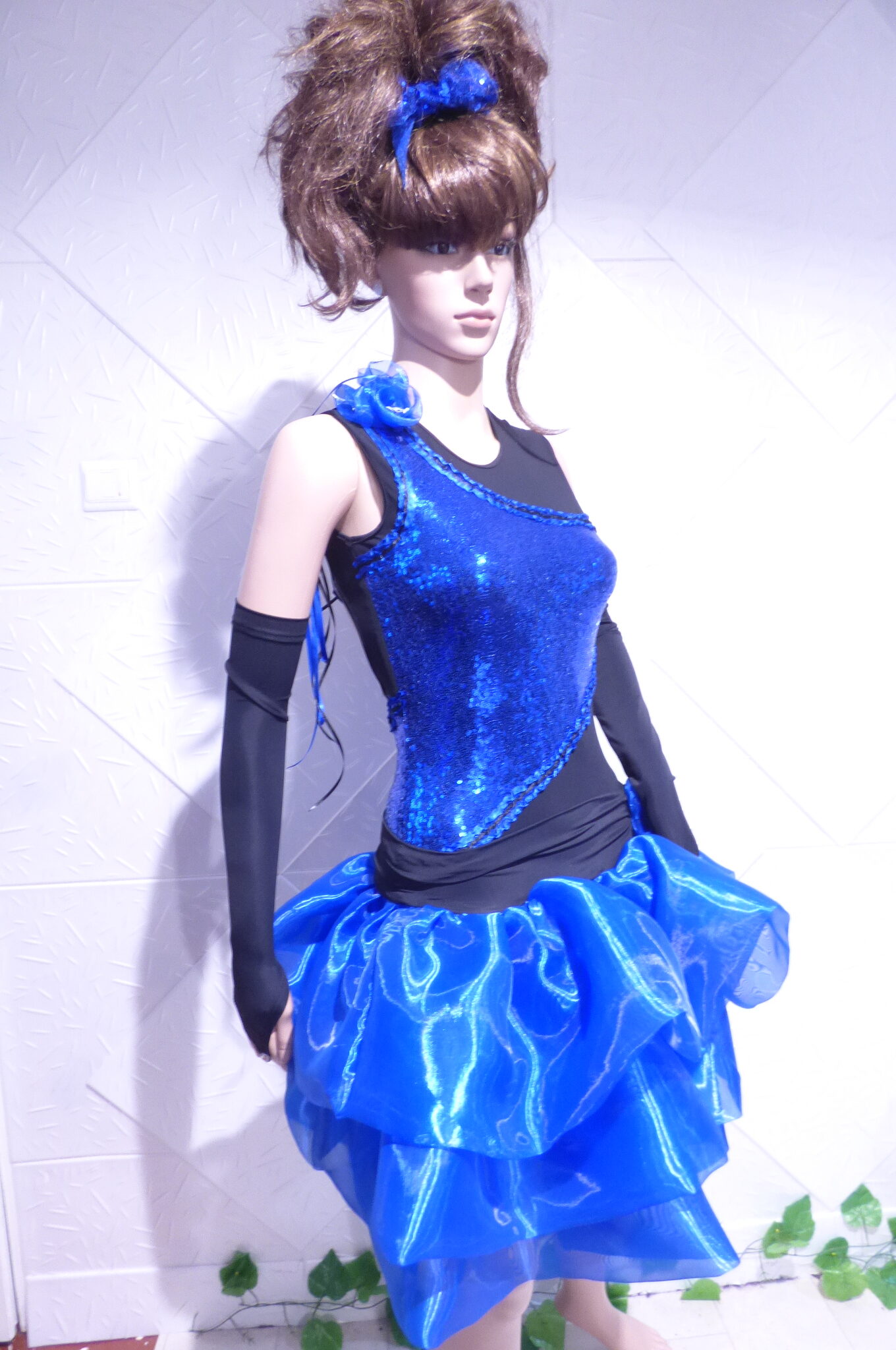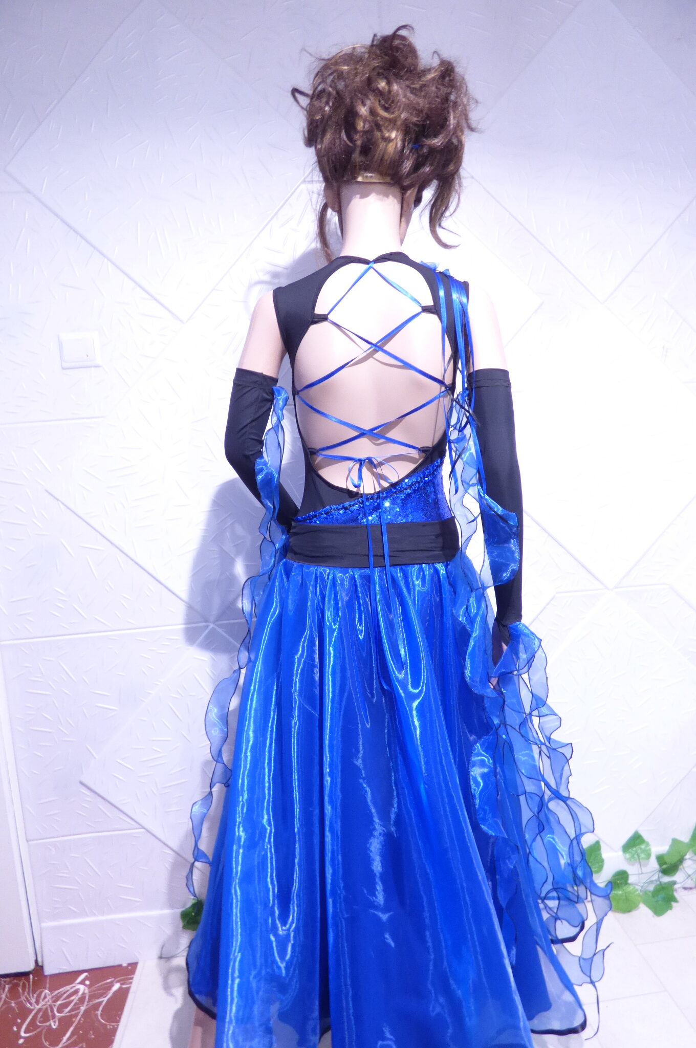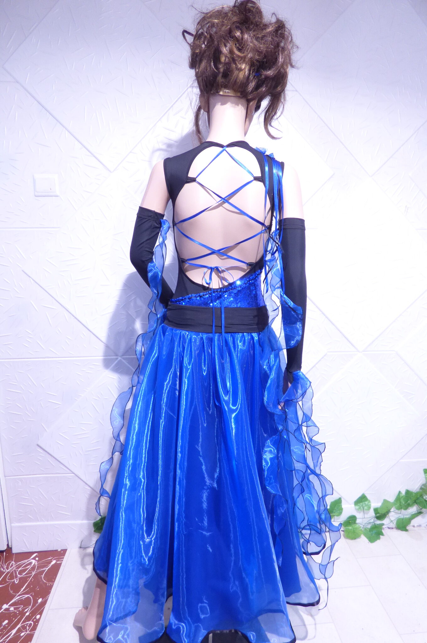 Боди с две поли -стандарт и латина,изработена от ликра ,органза, текстил с паети , сатенени панделки.