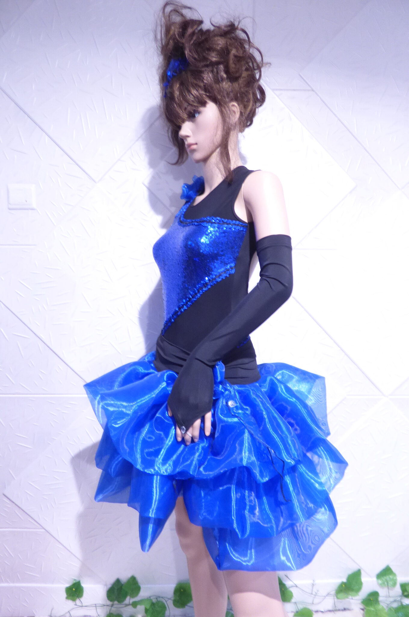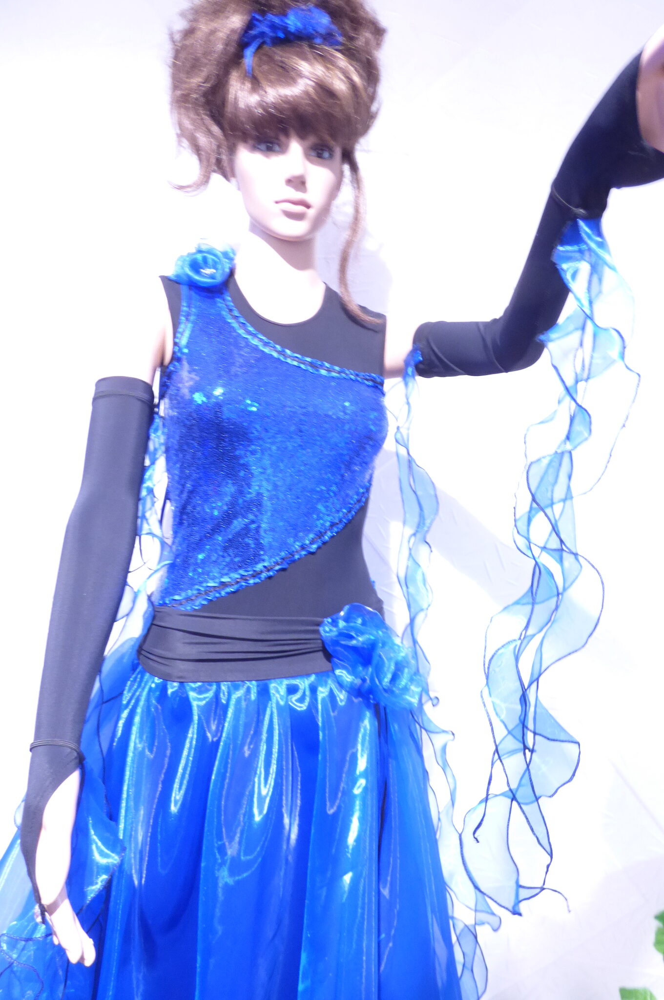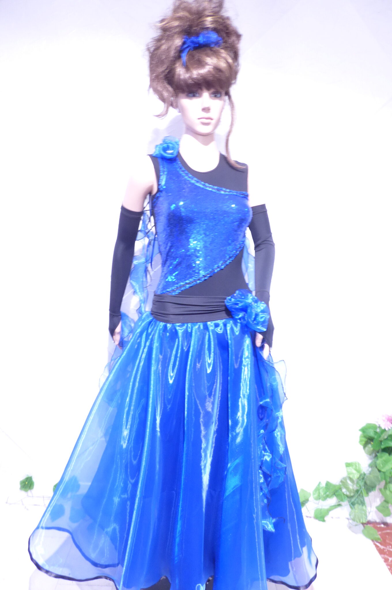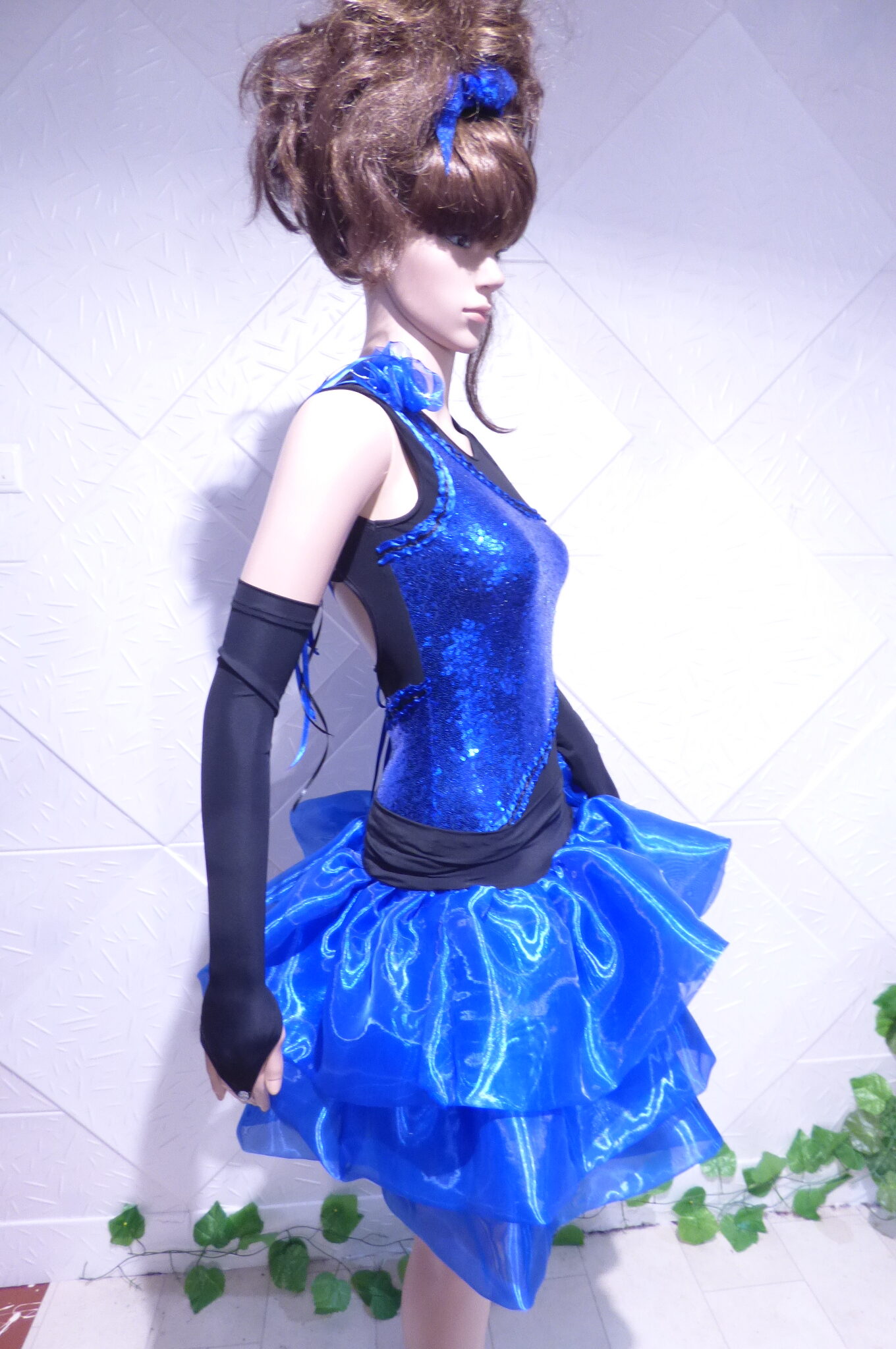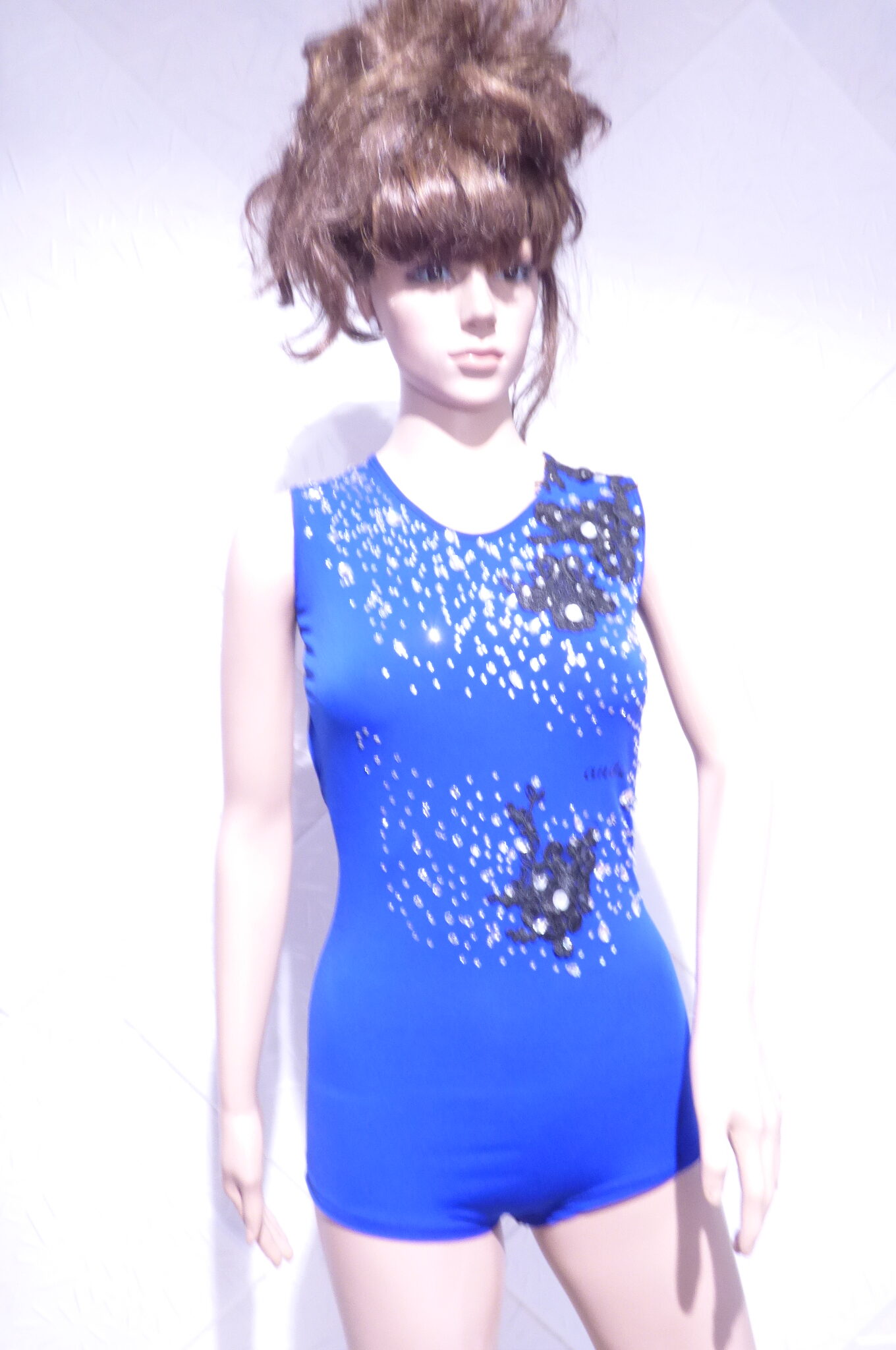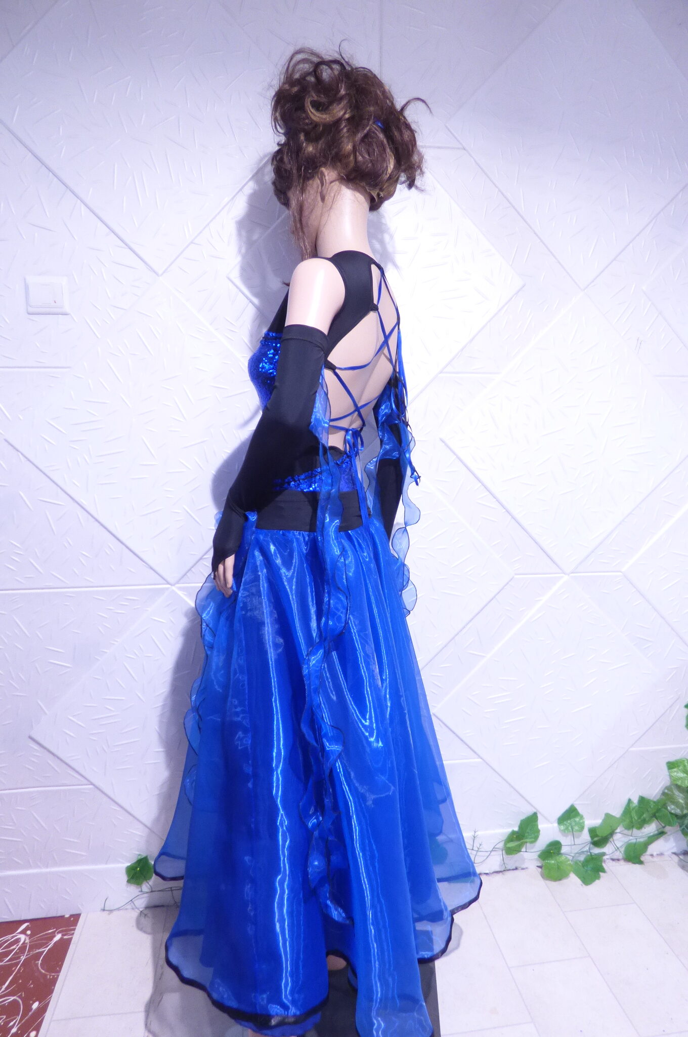 Боди с две поли -стандарт и латина,изработена от ликра ,органза, текстил с паети , сатенени панделки.
