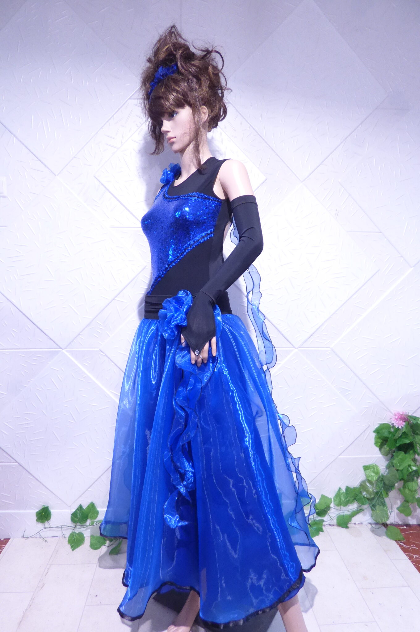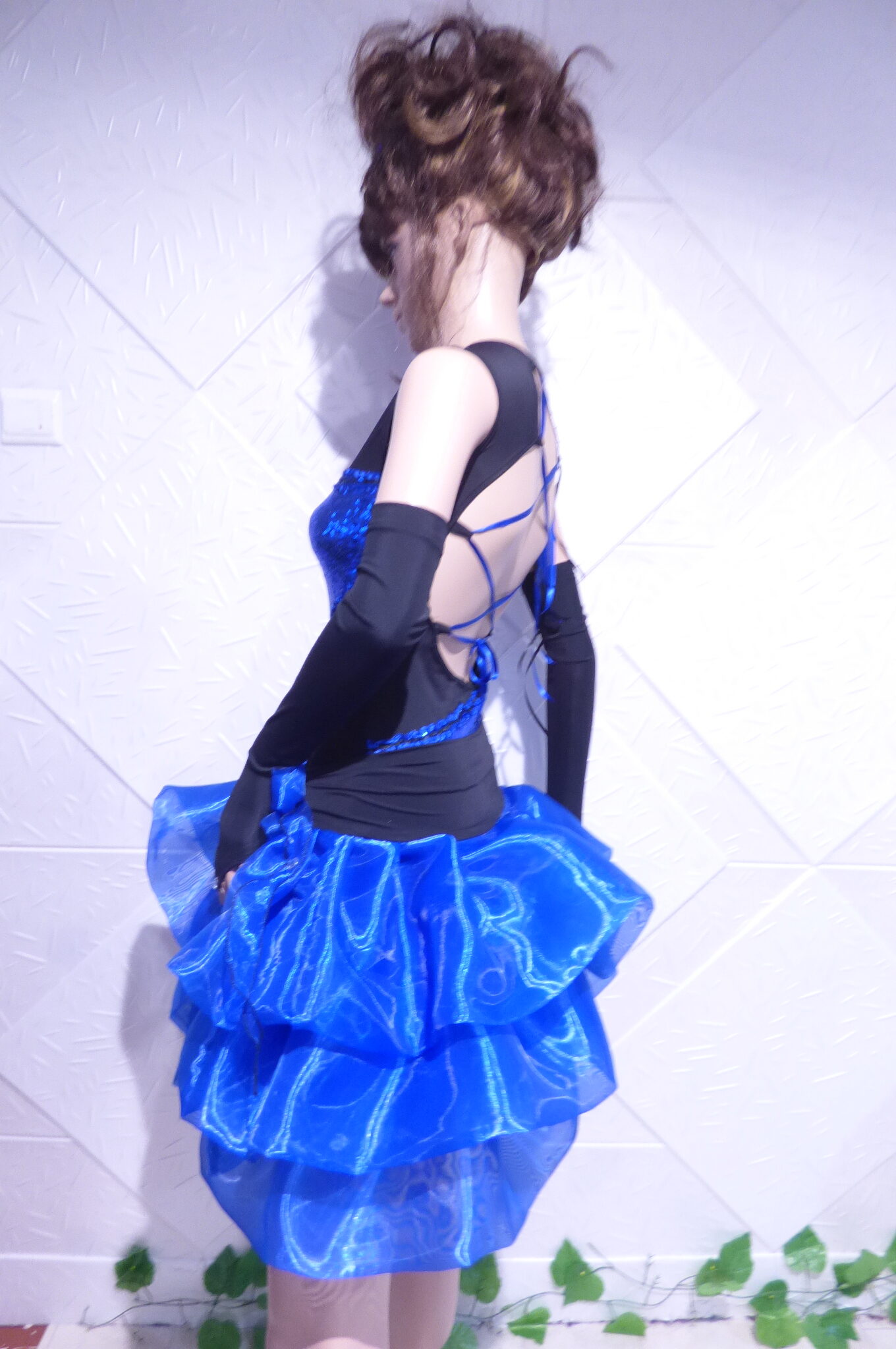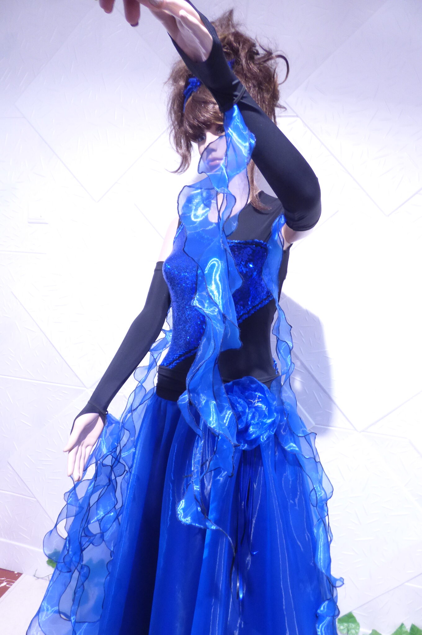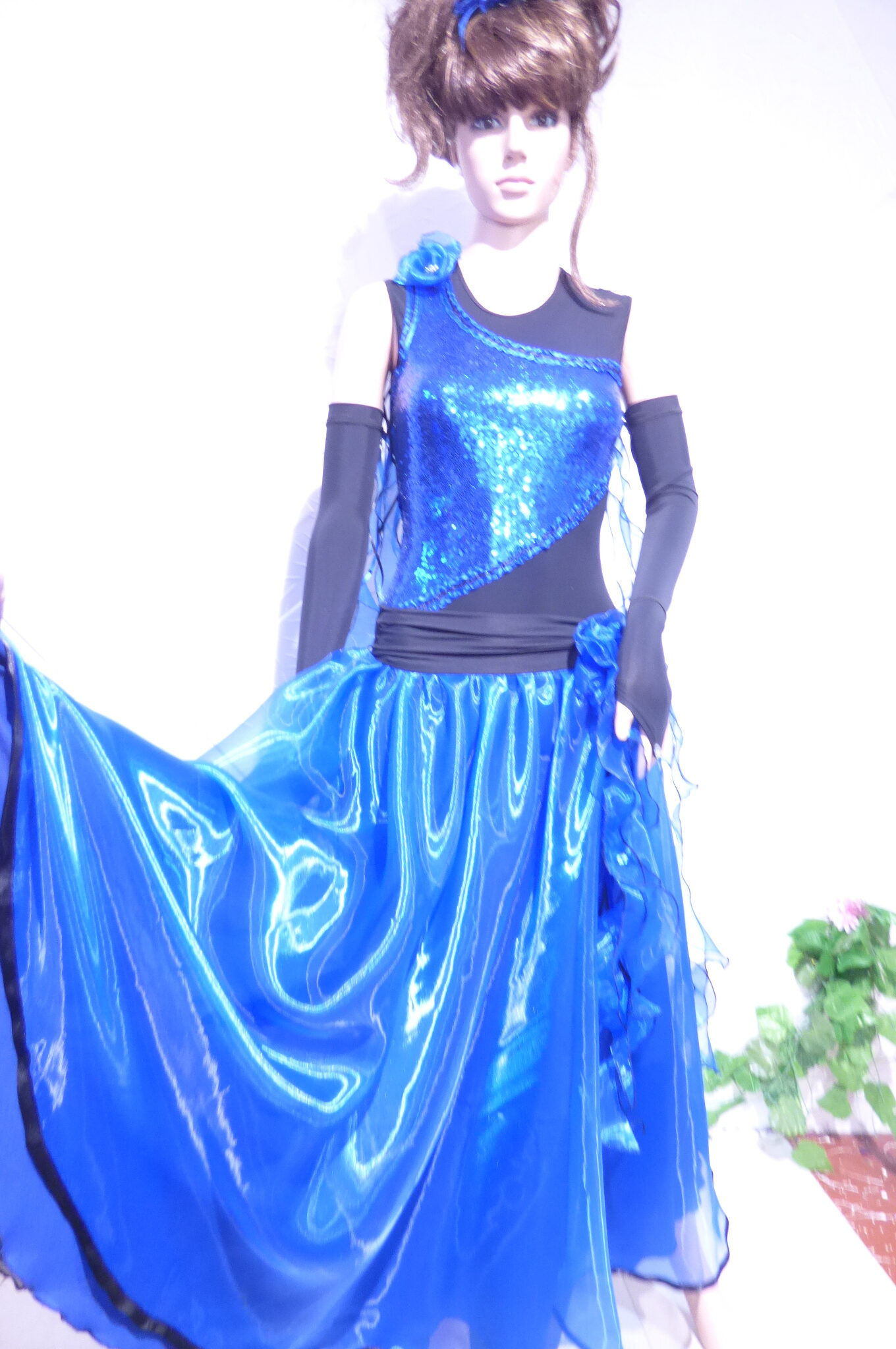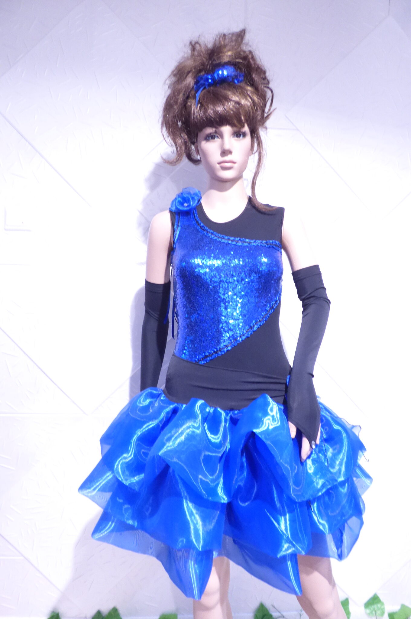 Боди с две поли -стандарт и латина,изработена от ликра ,органза, текстил с паети , сатенени панделки.