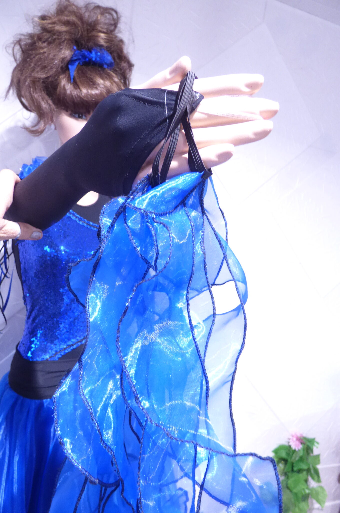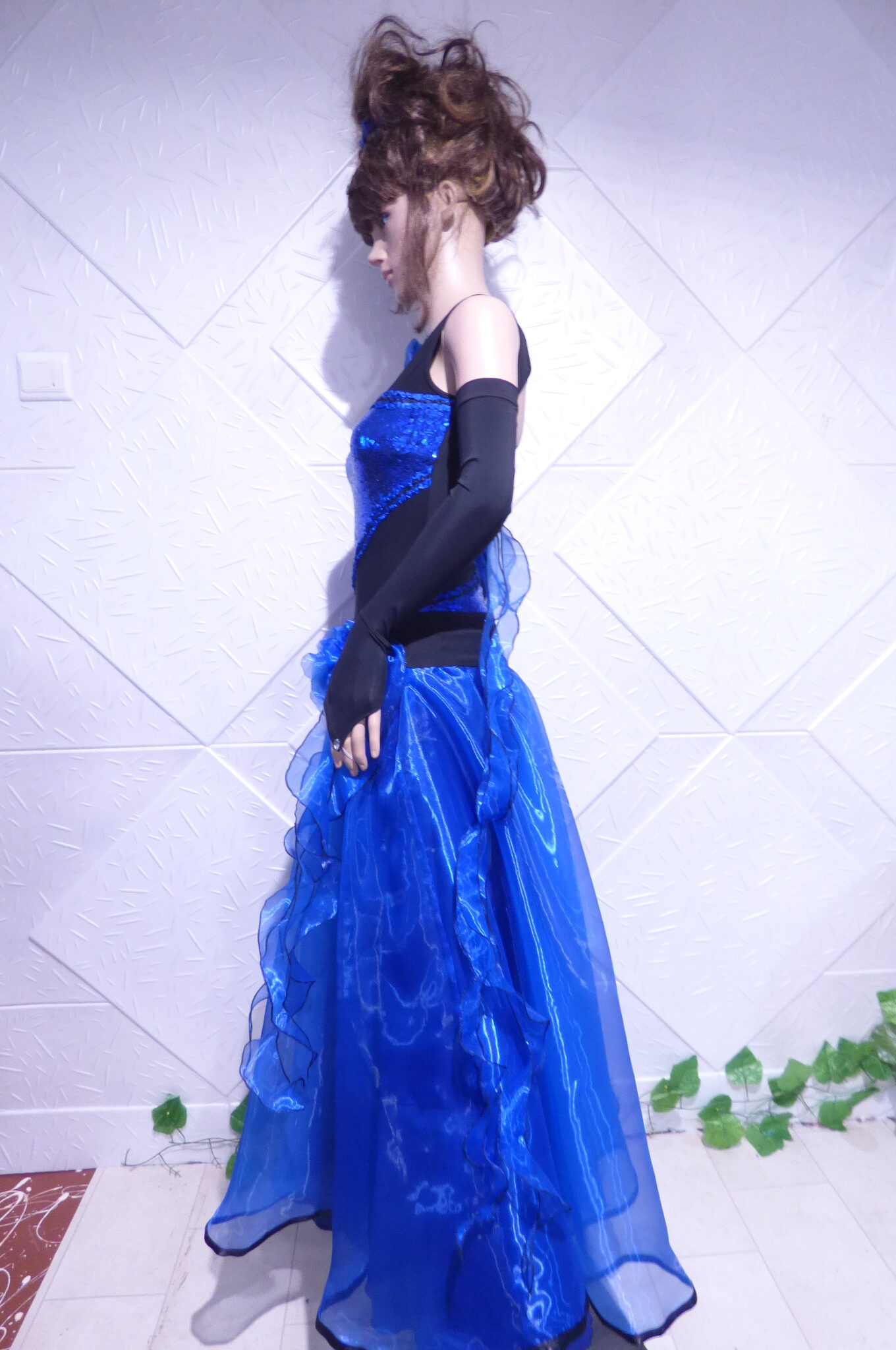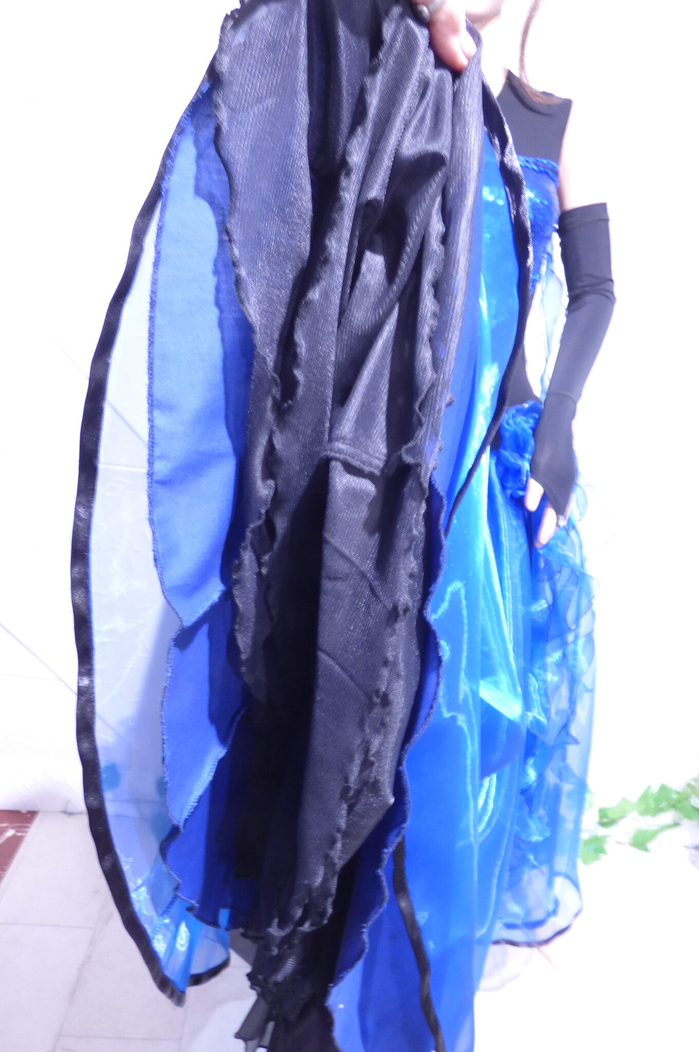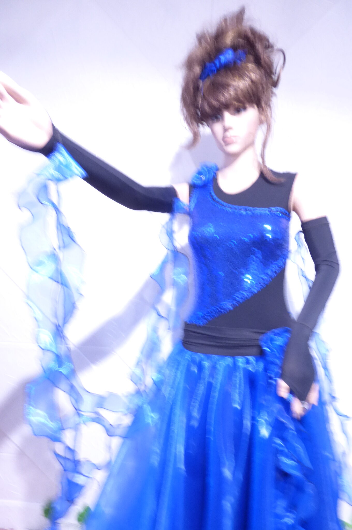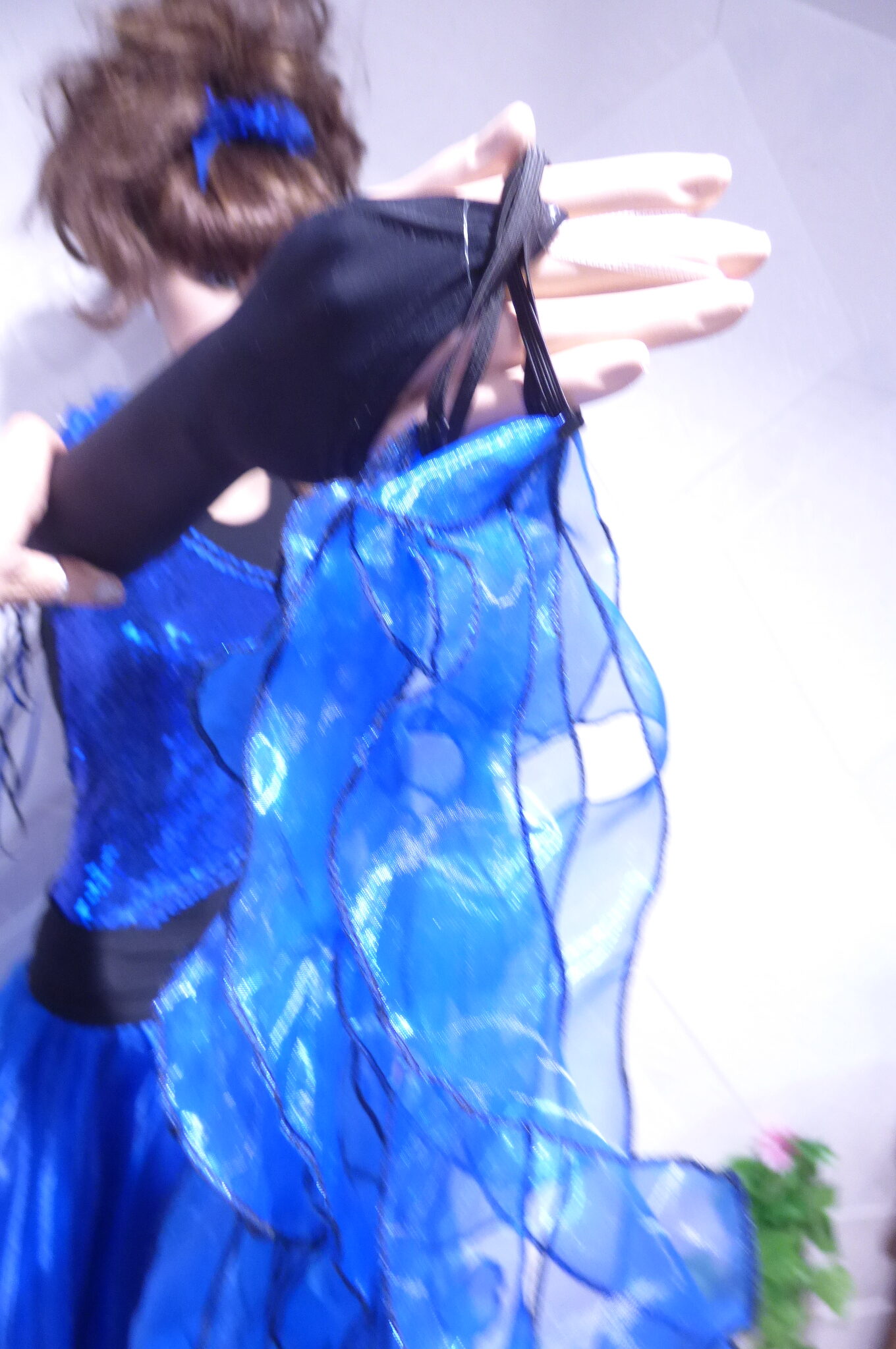 Боди с две поли -стандарт и латина,изработена от ликра ,органза, текстил с паети , сатенени панделки.