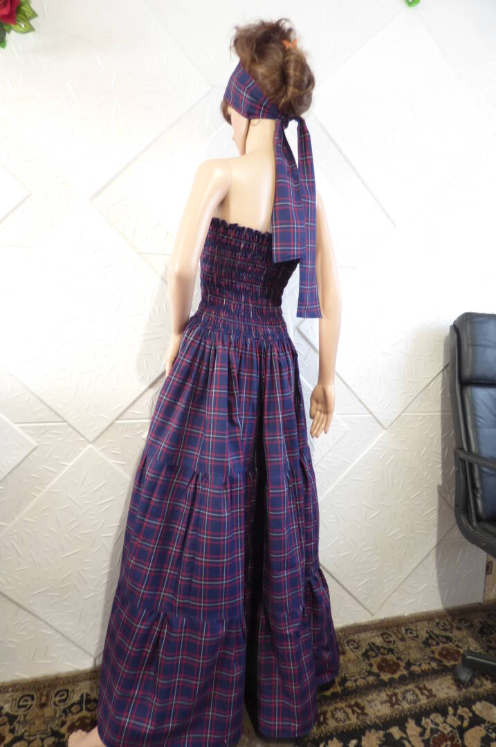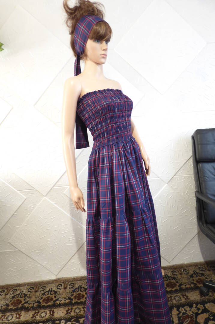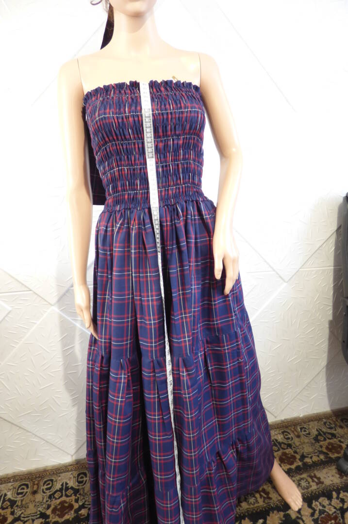 стилна дълга рокля на волани , изработена от 100% памук и ластици .