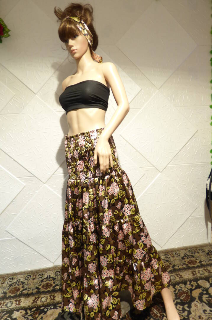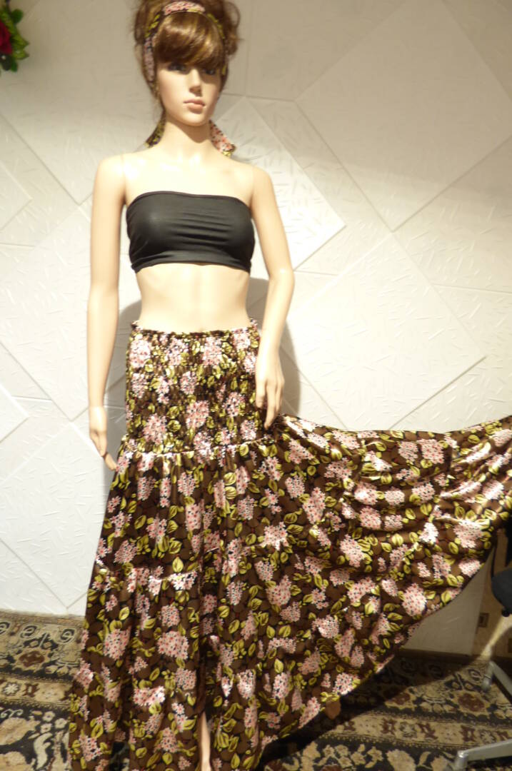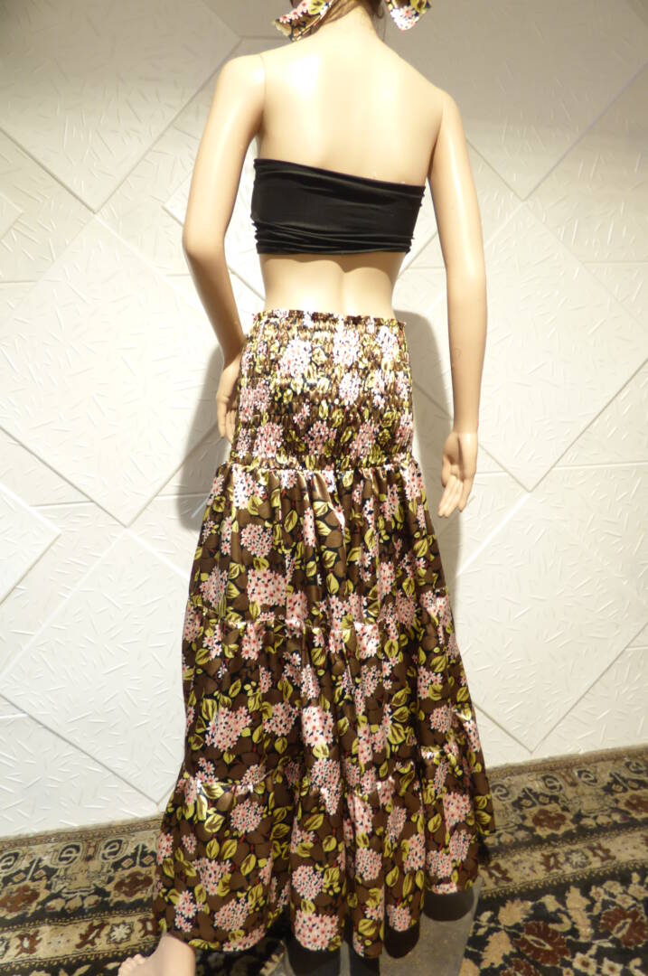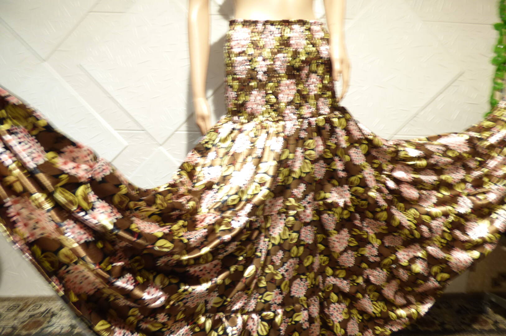 Елегантна дълга пола или рокля на волани и ластици , изработена от сатениран памук и ластик.