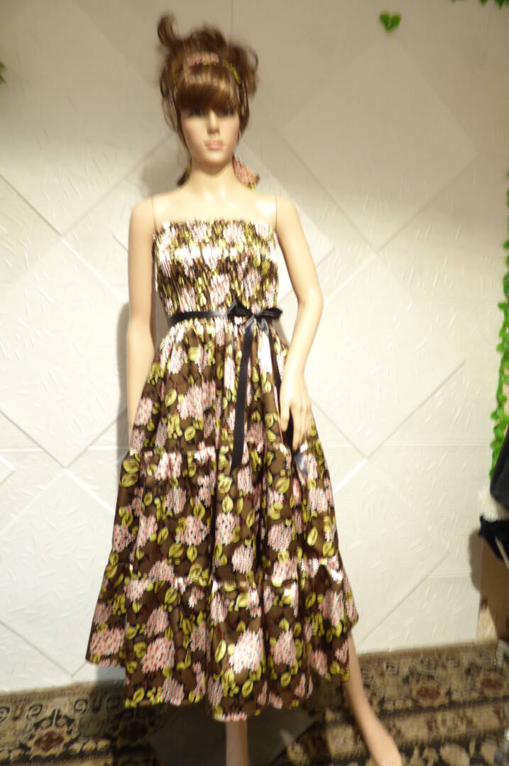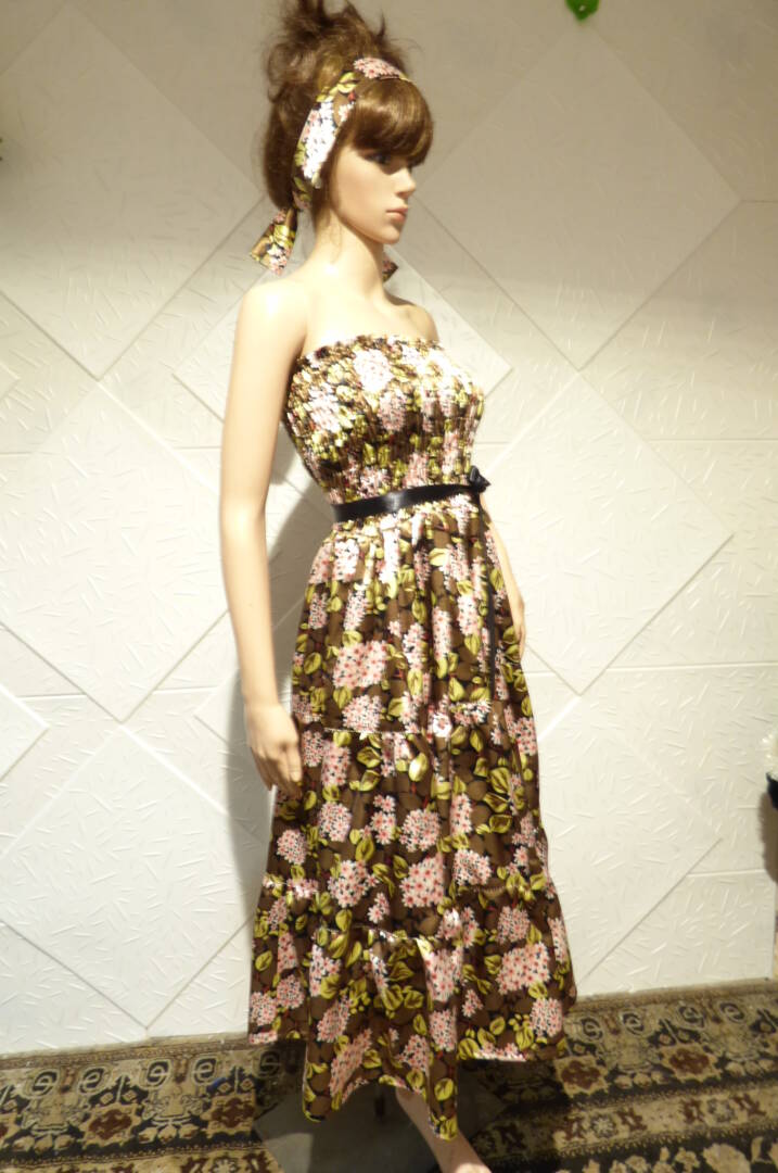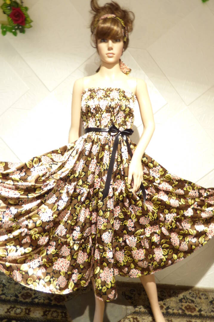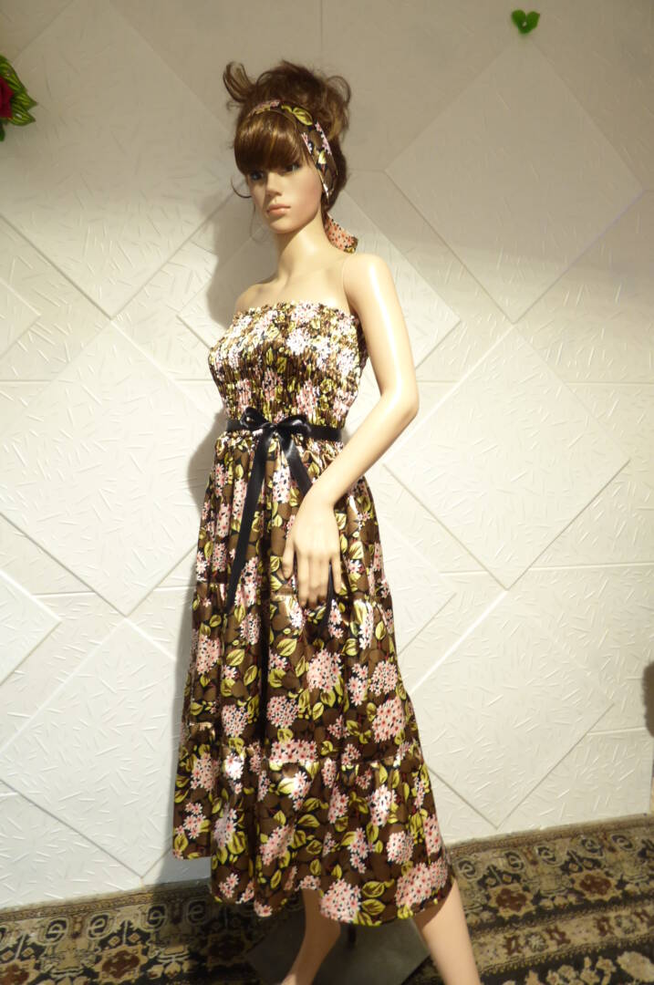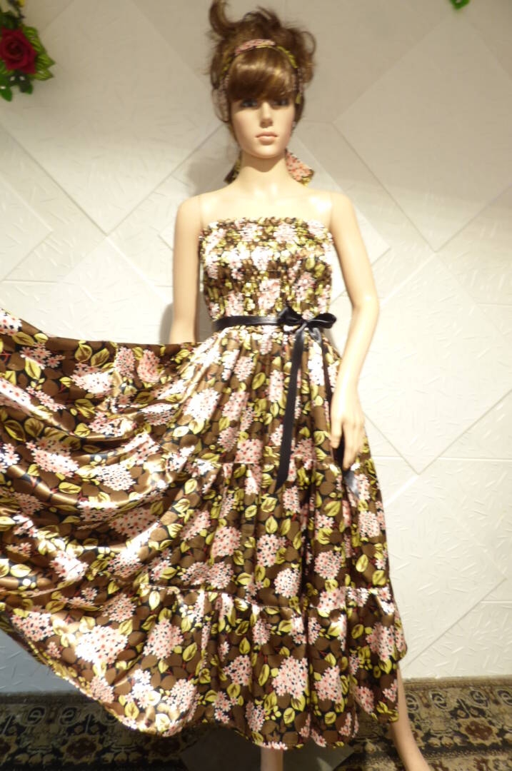 Елегантна дълга пола или рокля на волани и ластици , изработена от сатениран памук и ластик.