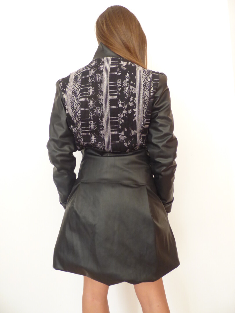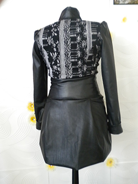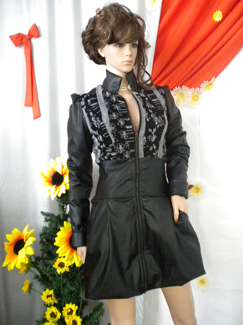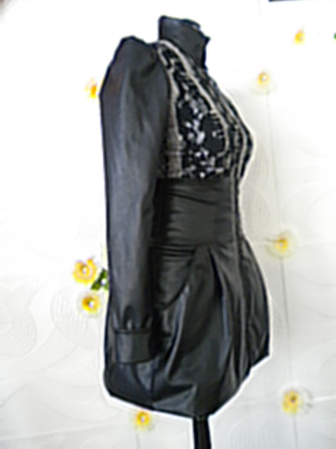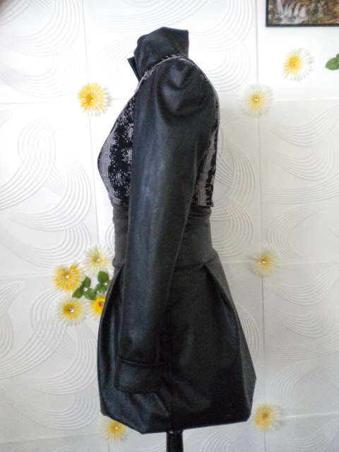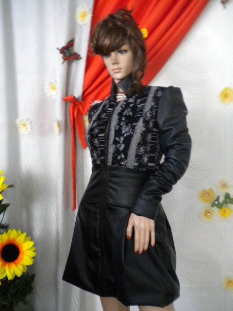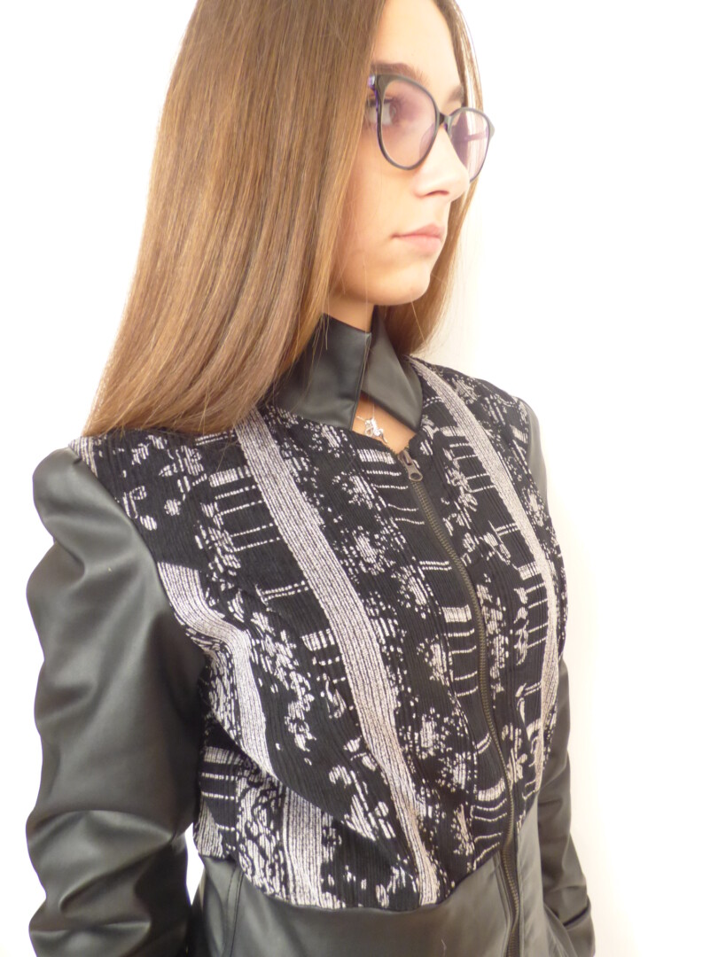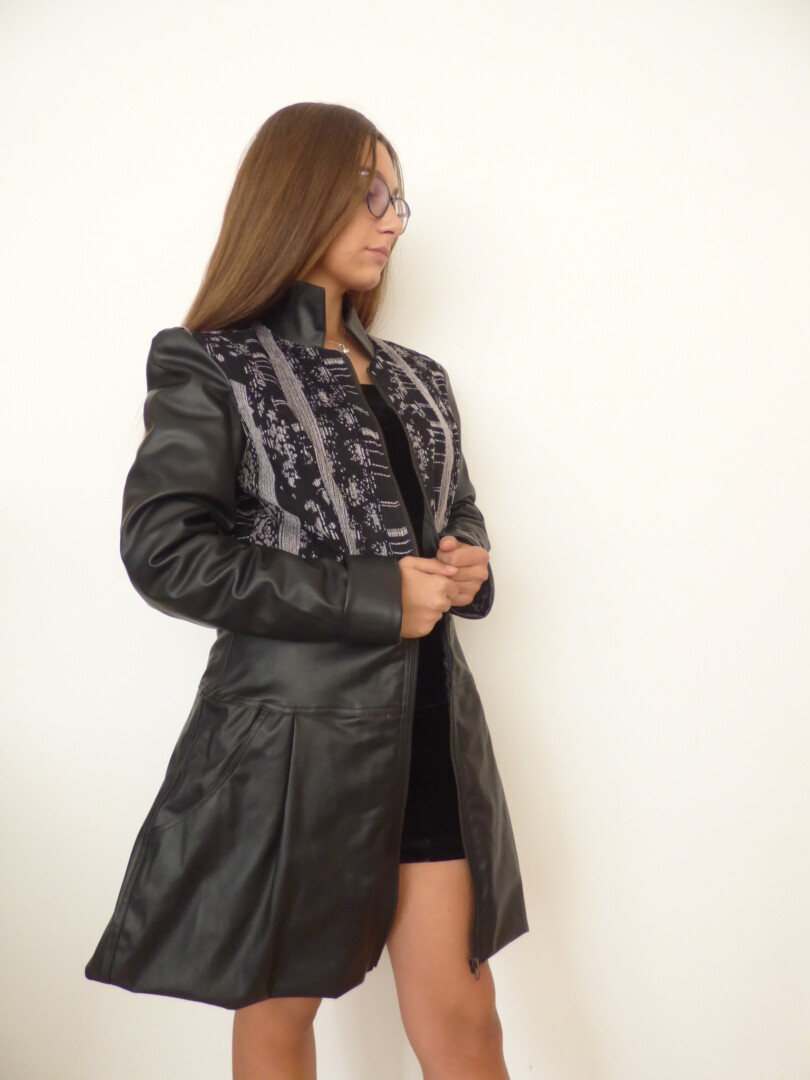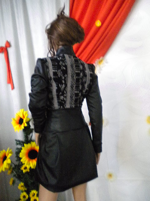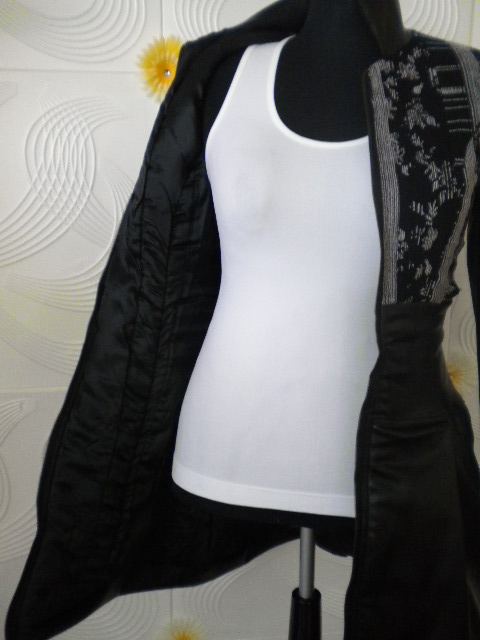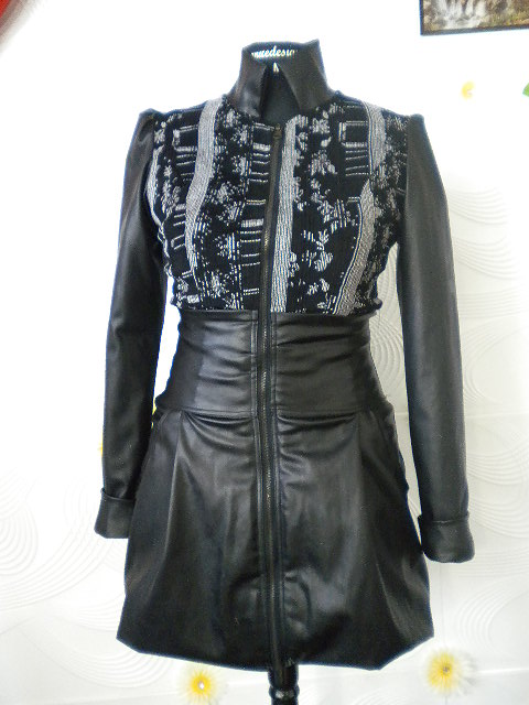 Дълго дамско палто от еко кожа и кадифе,метален цип,хастар с вата.