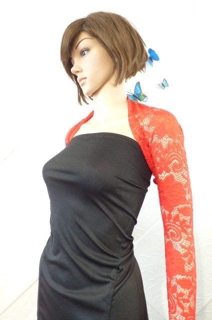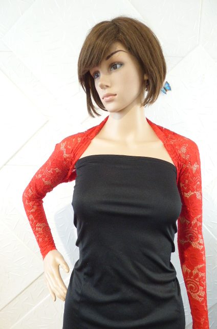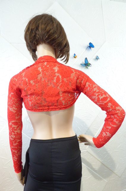 Дамско червено дантелено болеро,изработено от дантела с еластан.