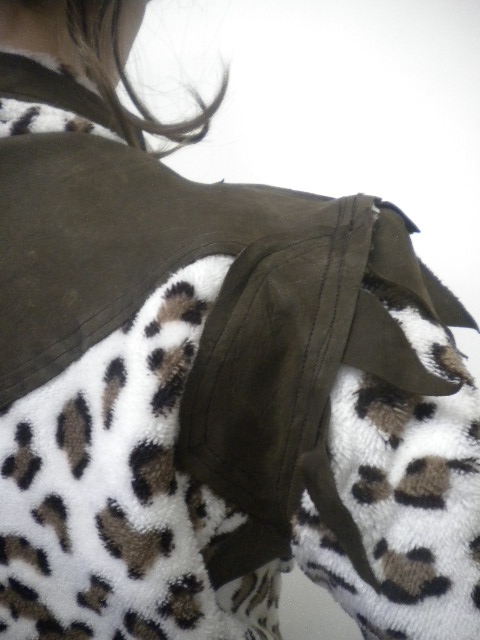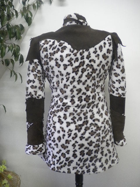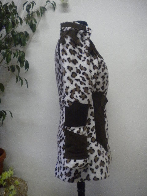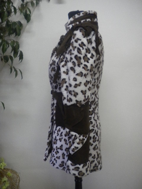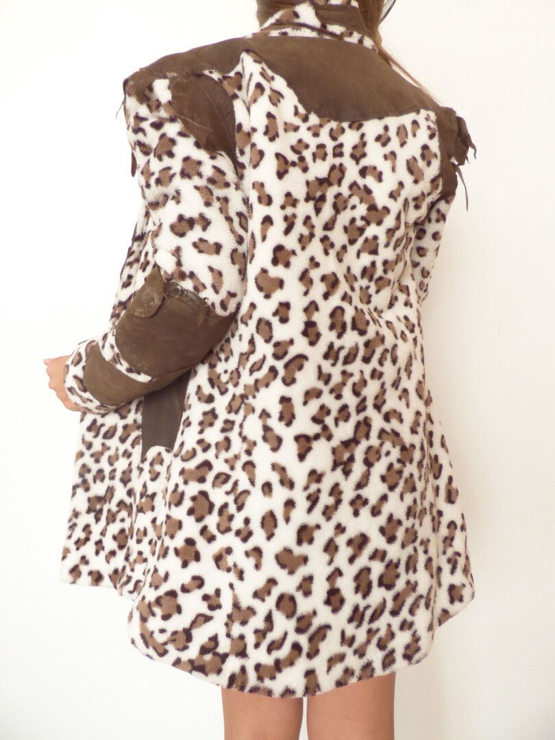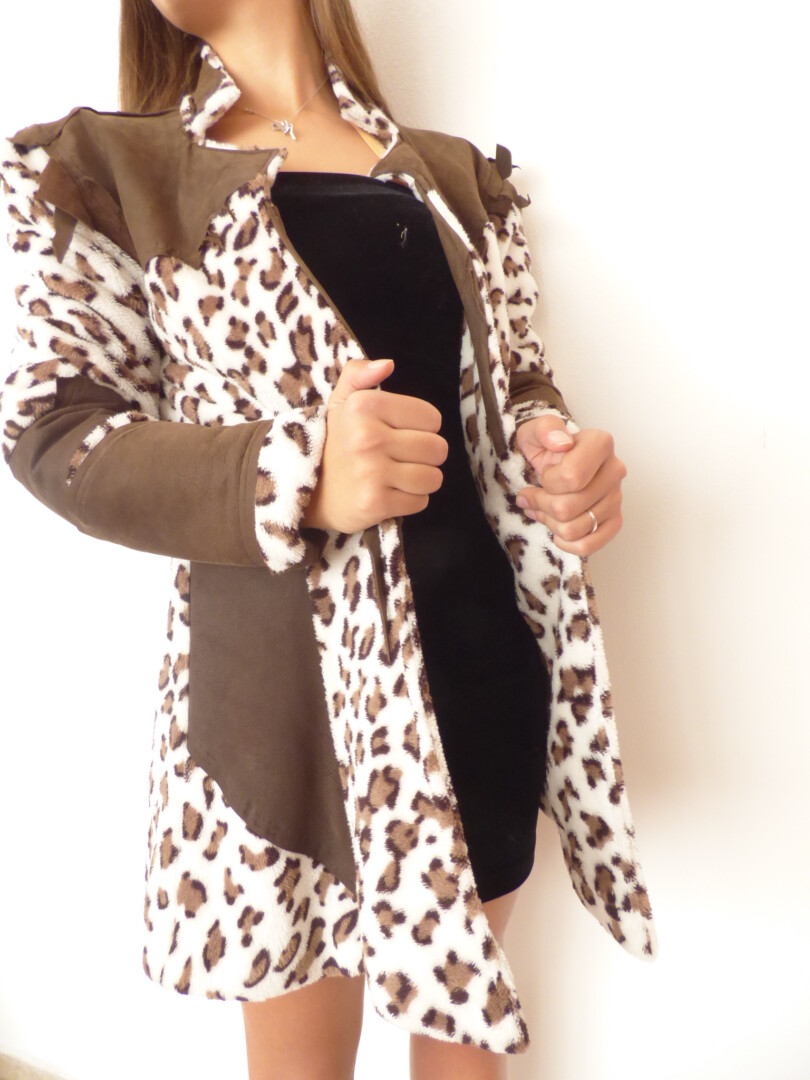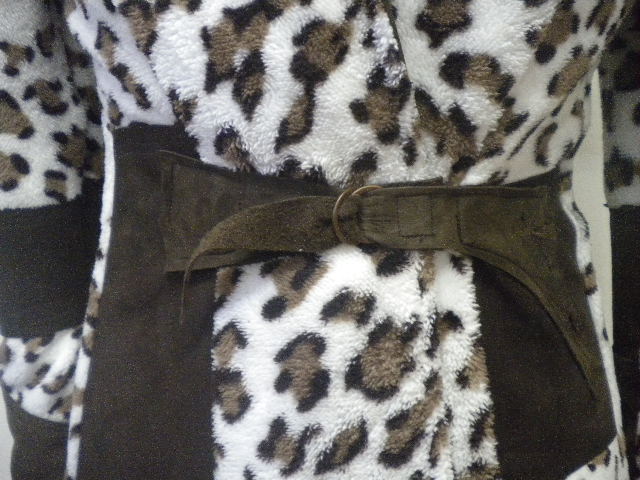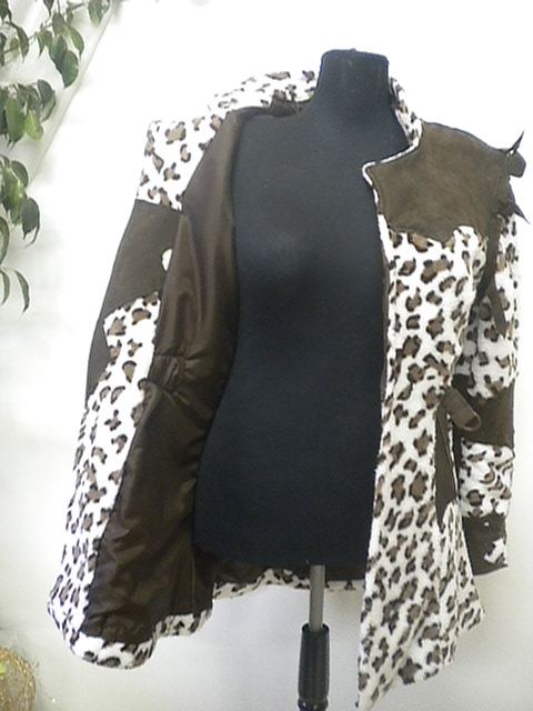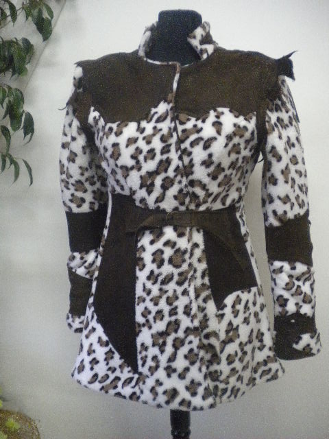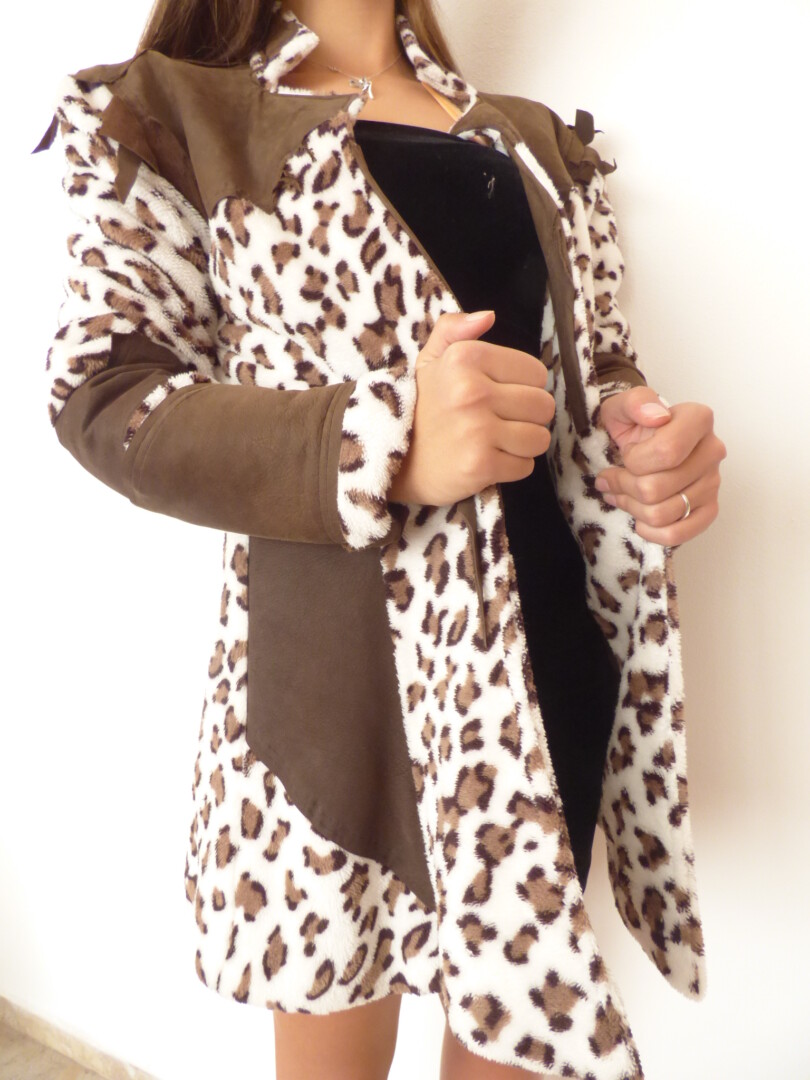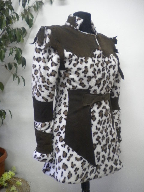 Нестандартно дамско палто стил Флинстоун, изработено от полар , естестврни кожени изрезки и хастар.