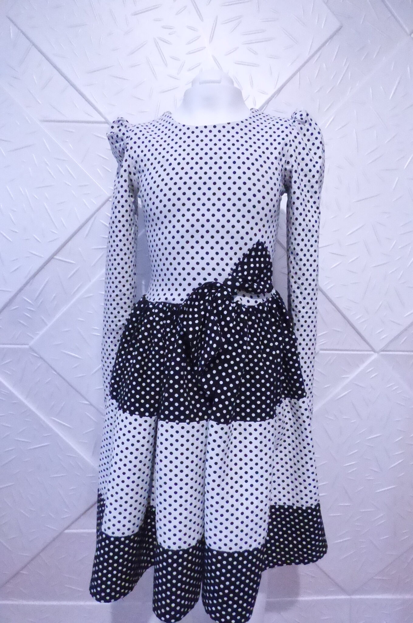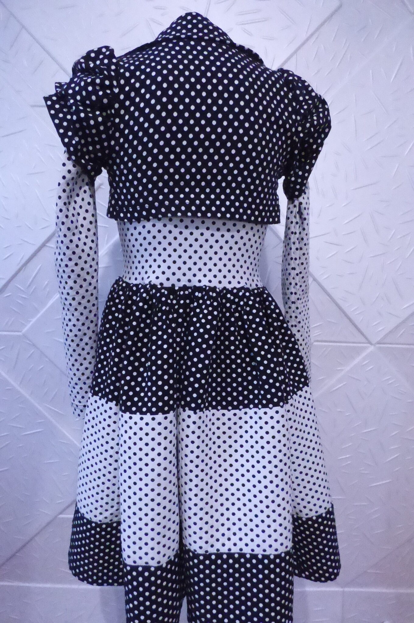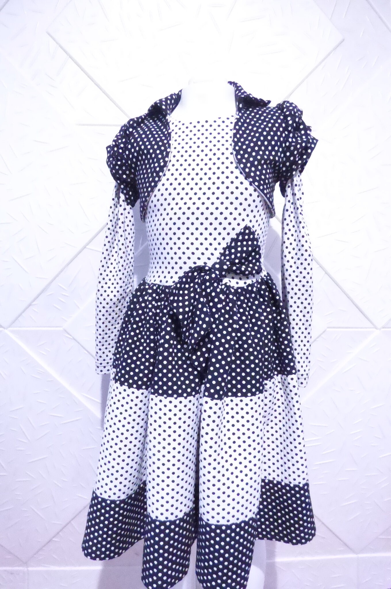 Детска рокля на черно бели точки с допълнително болеро, материята е мека и приятна с голям % еластан .