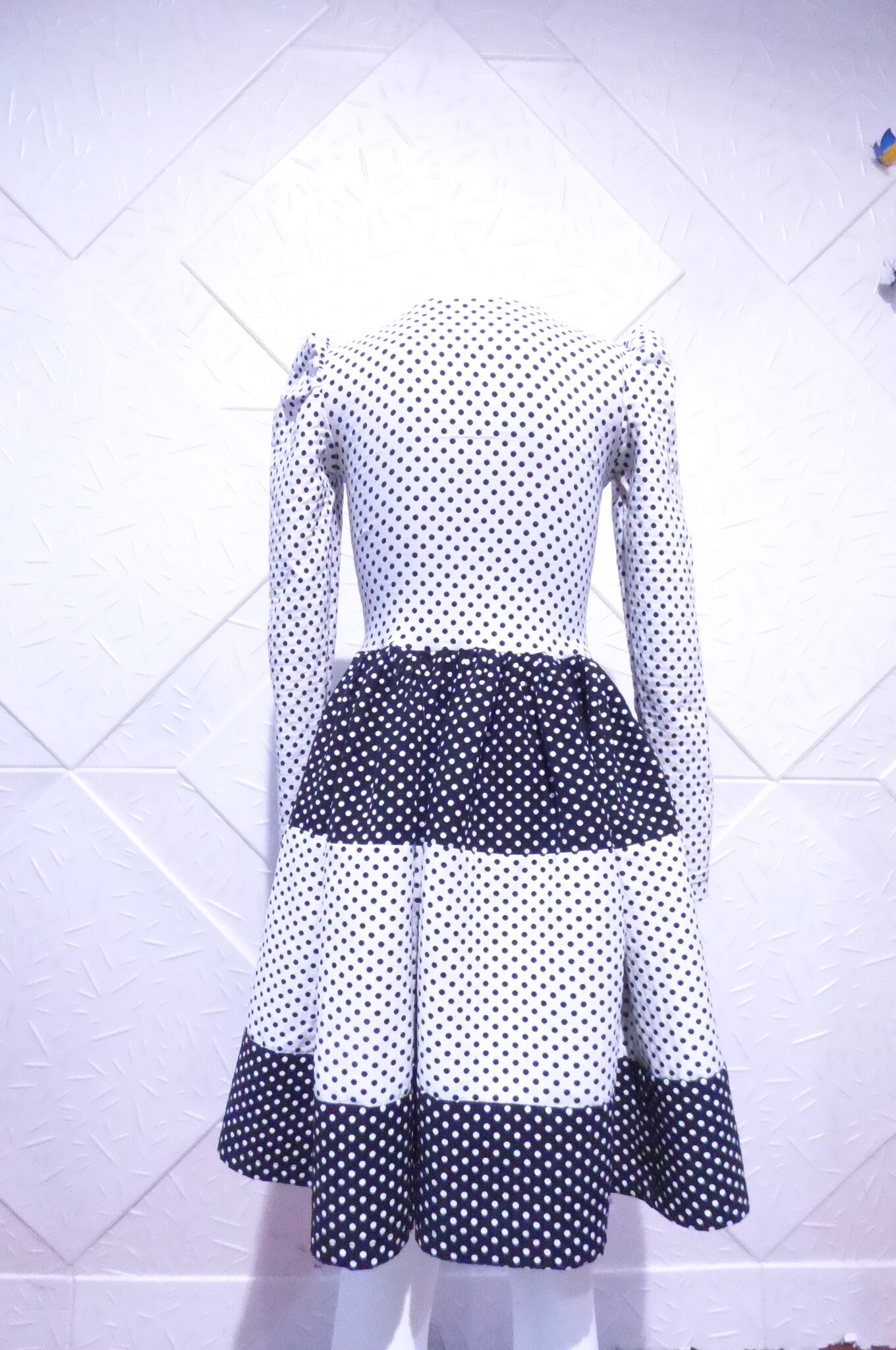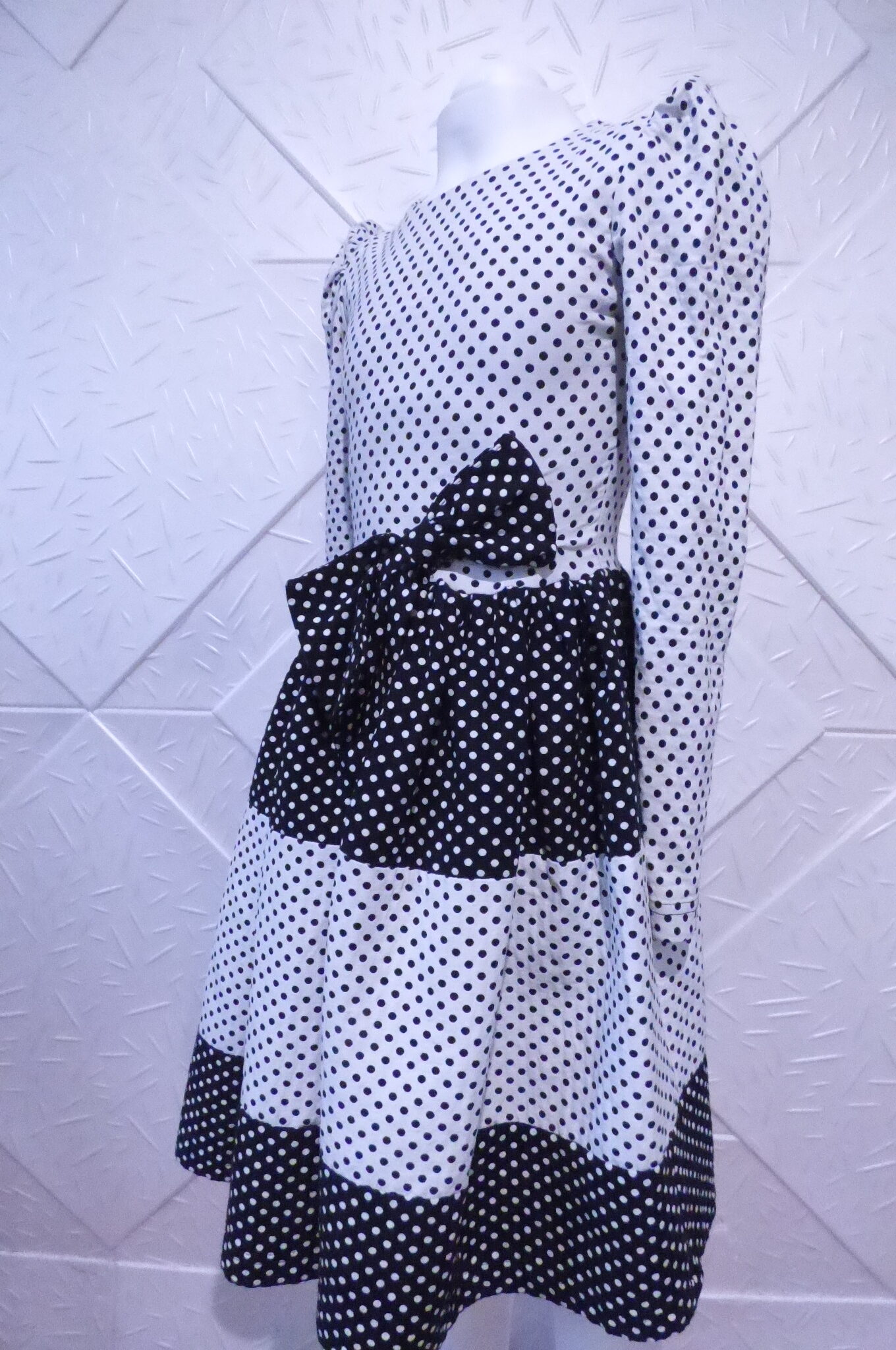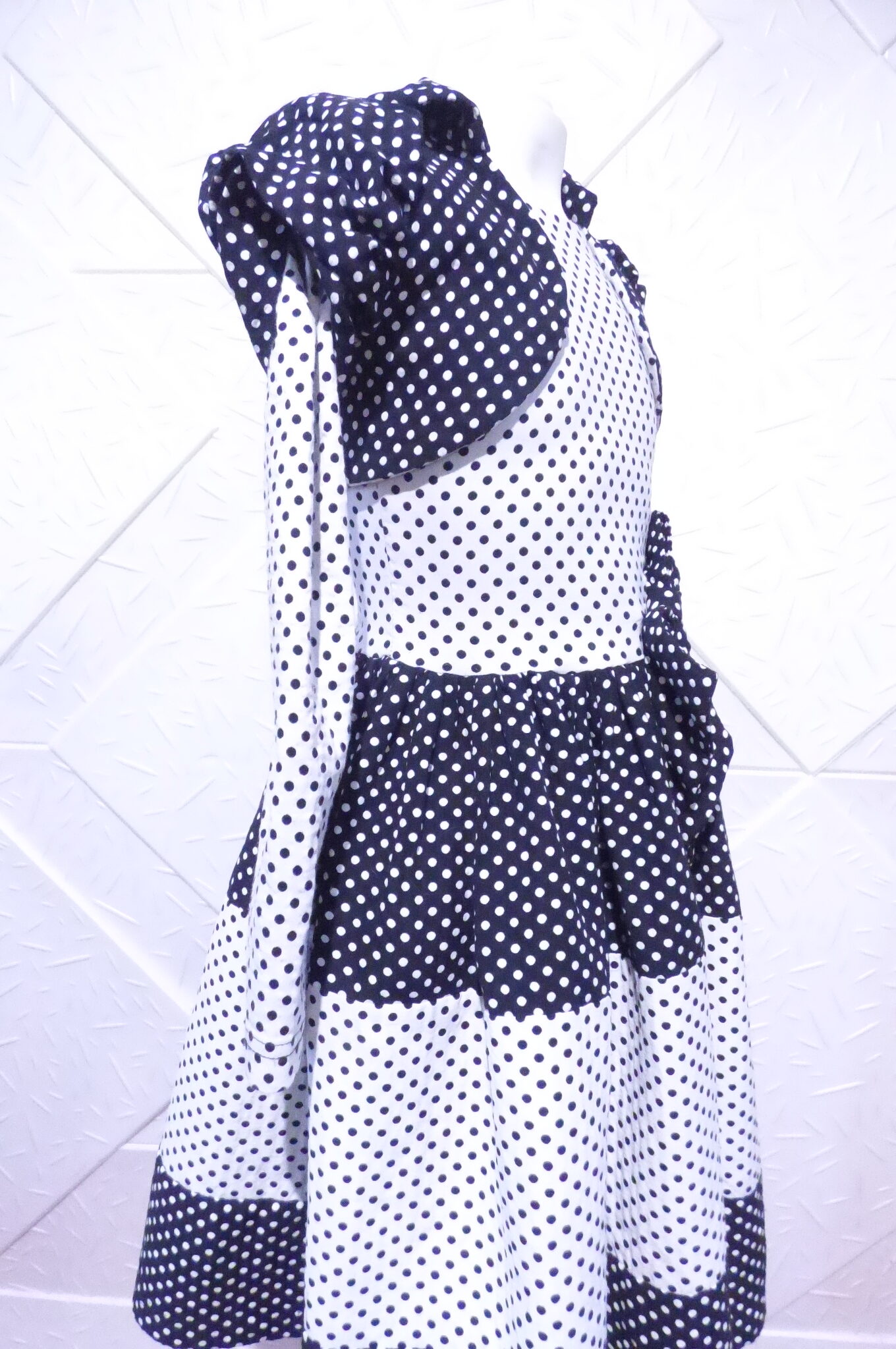 Детска рокля на черно бели точки с допълнително болеро, материята е мека и приятна с голям % еластан .