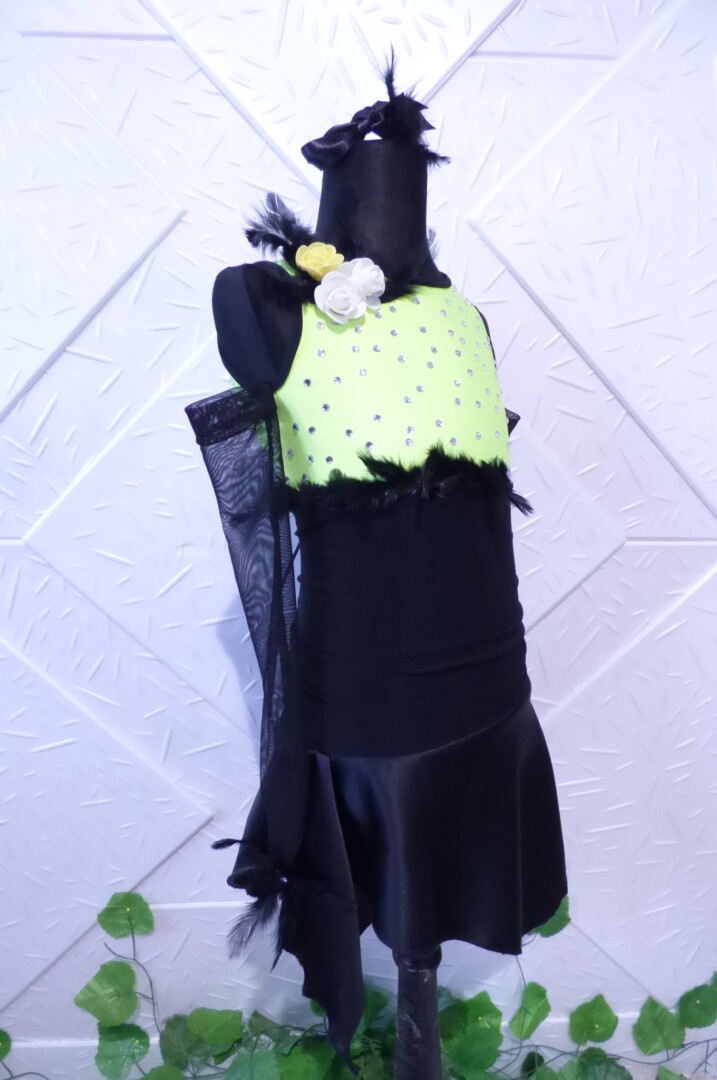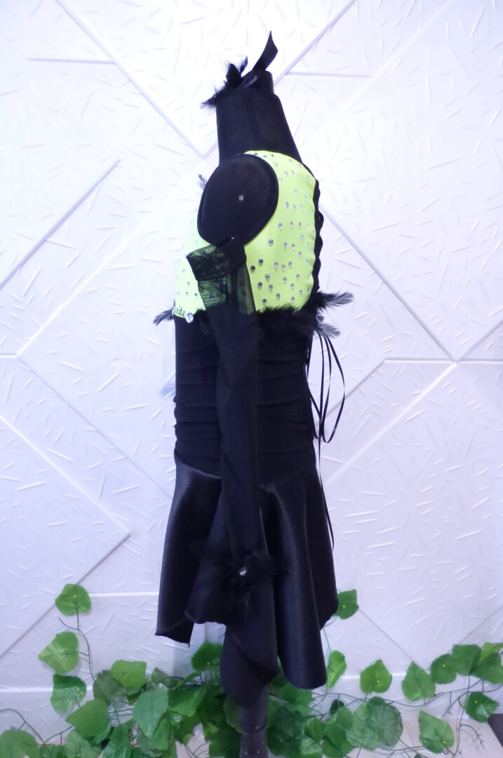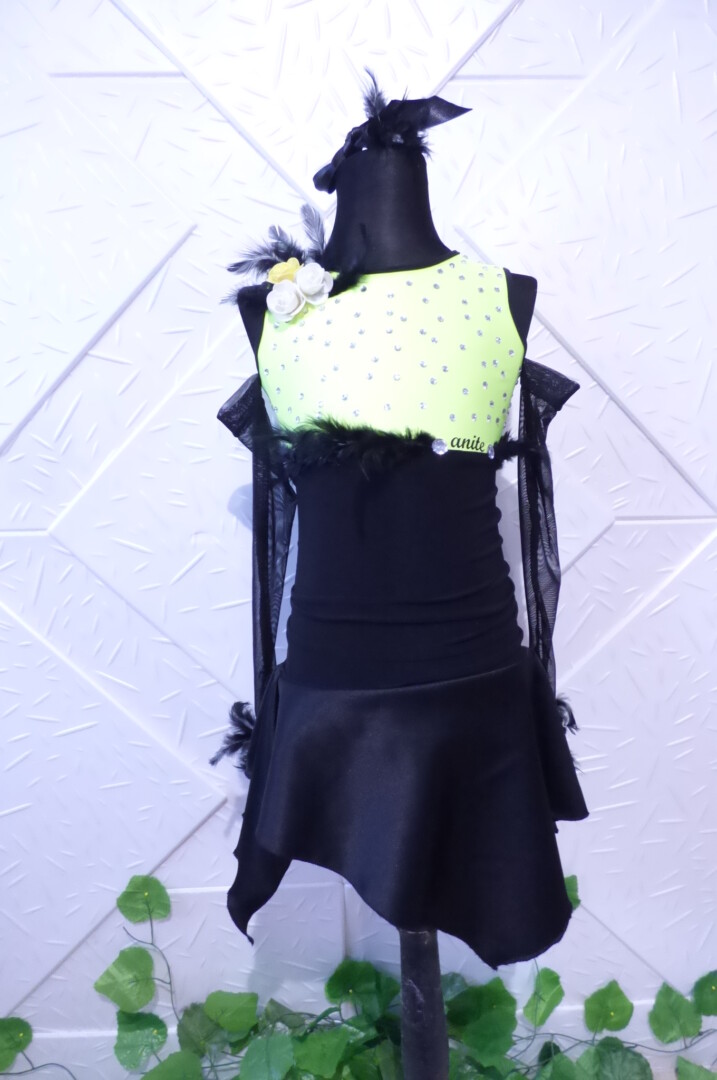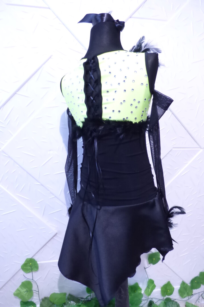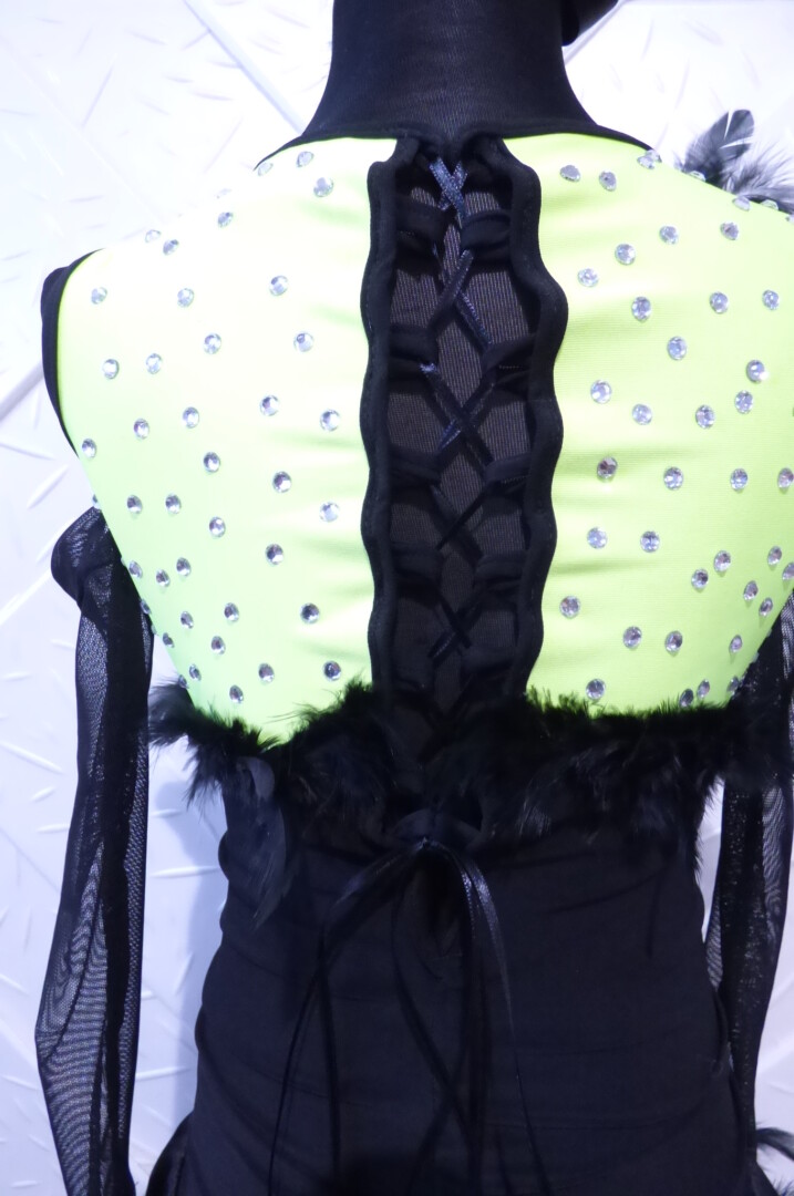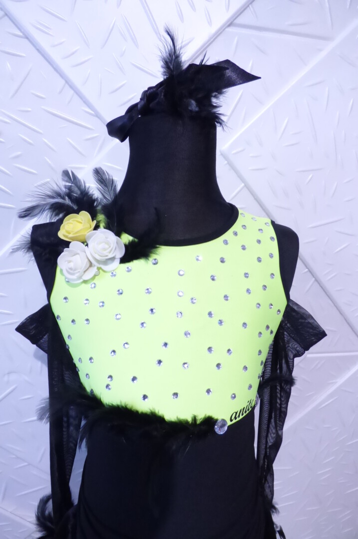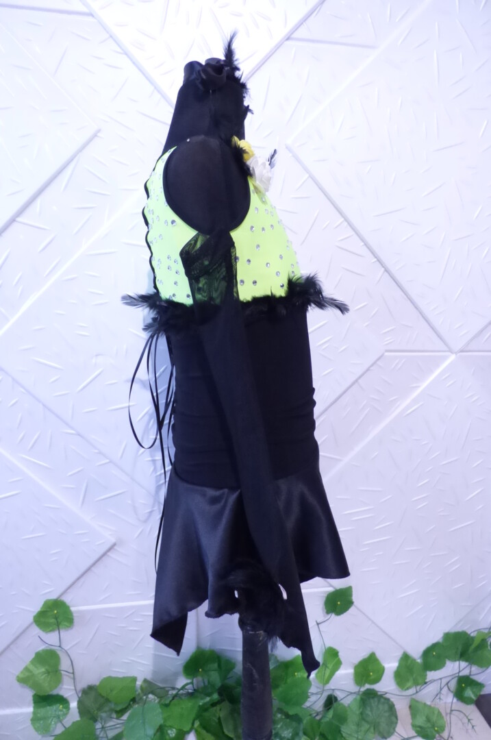 изработена от ликра ,сатен ,сатенени панделки ,пера ,кристали.