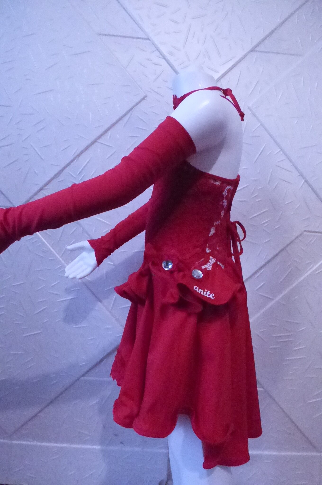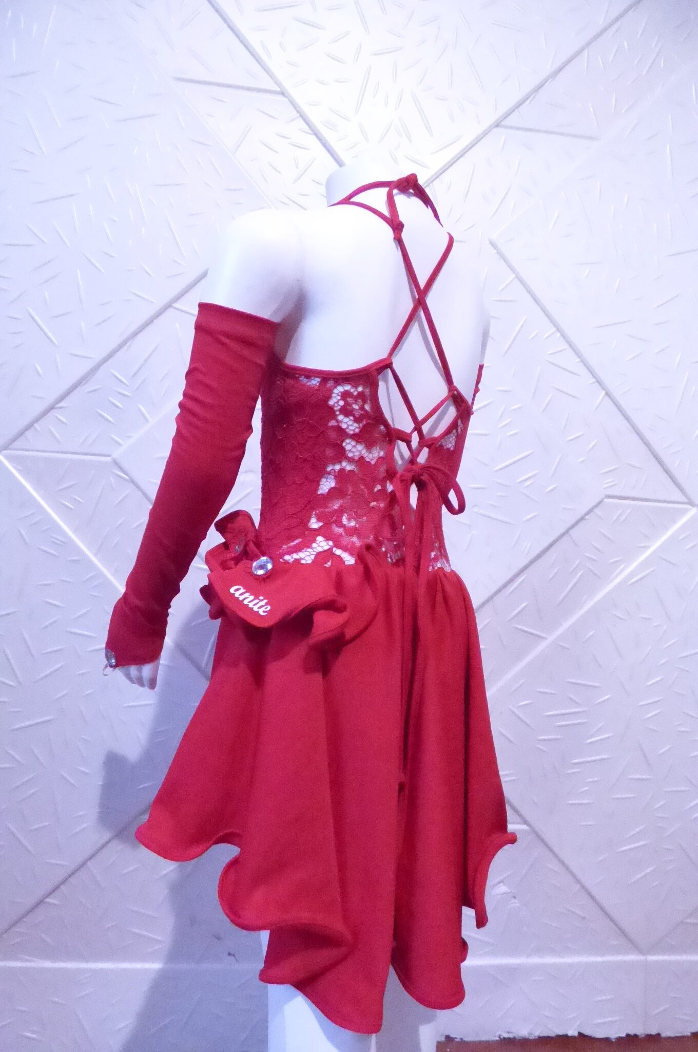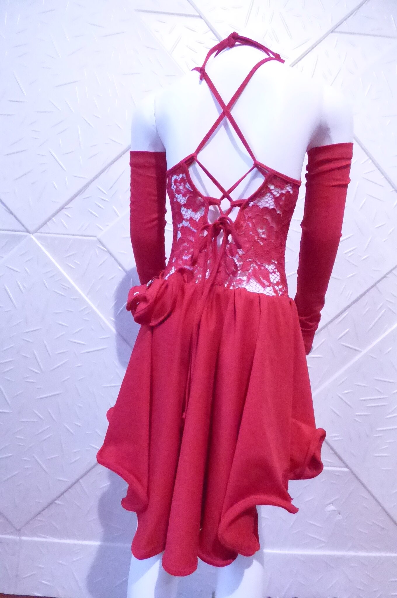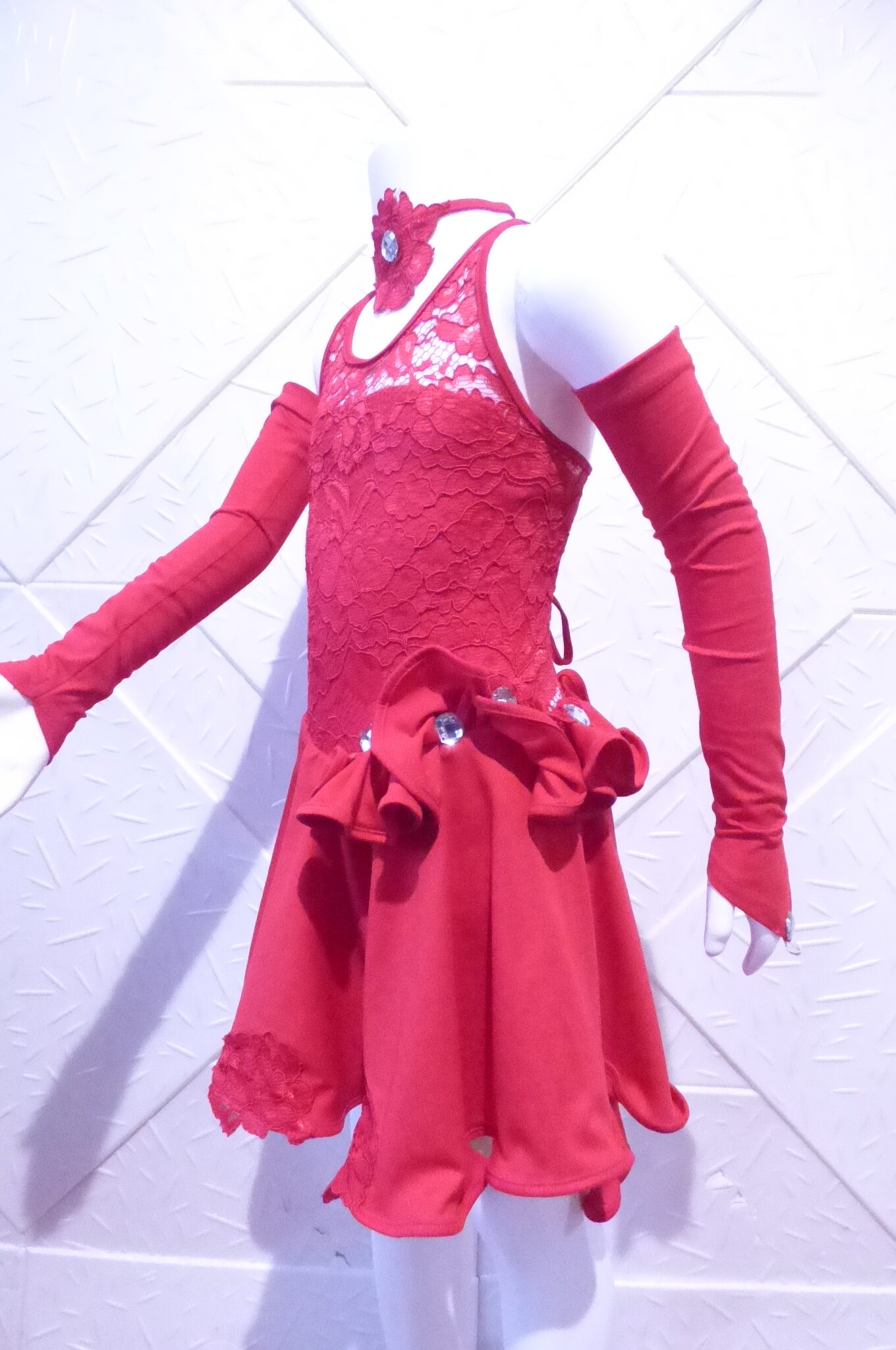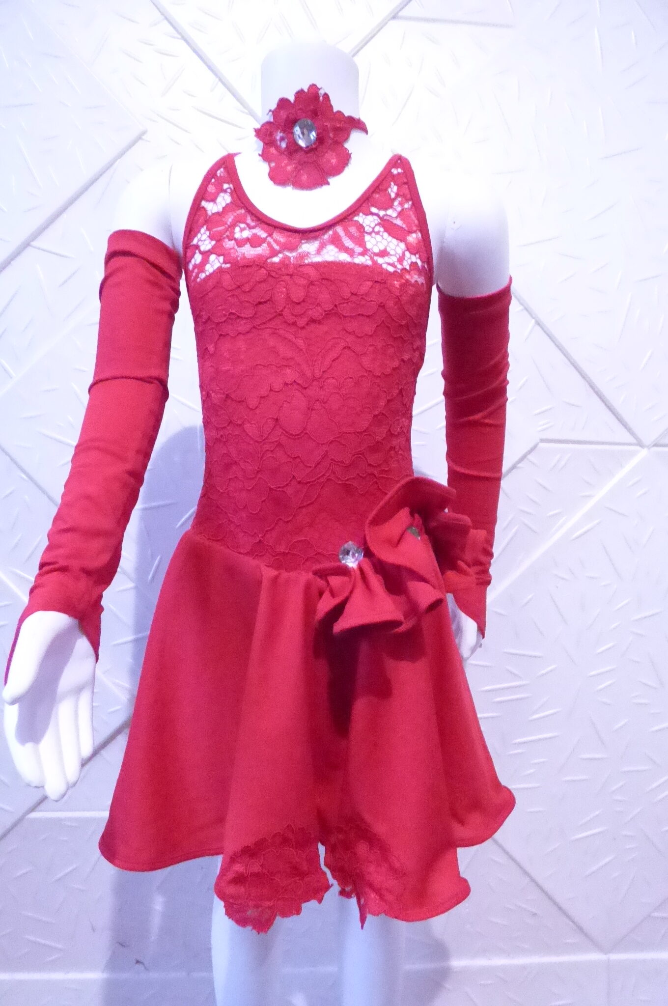 Детска рокля за спортни танци в червен цвят и гол гръб, изработена от памук с еластан, дантела.