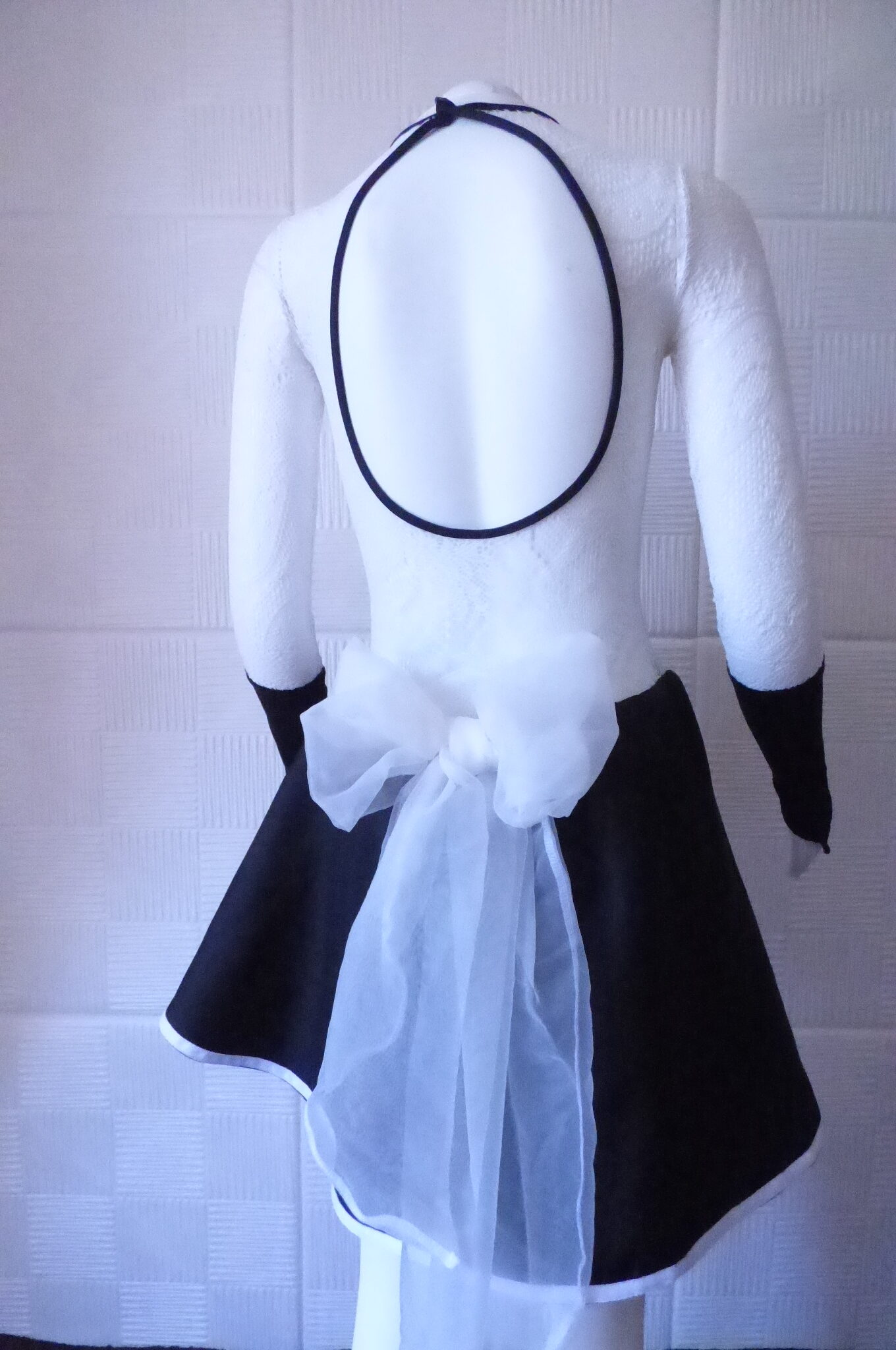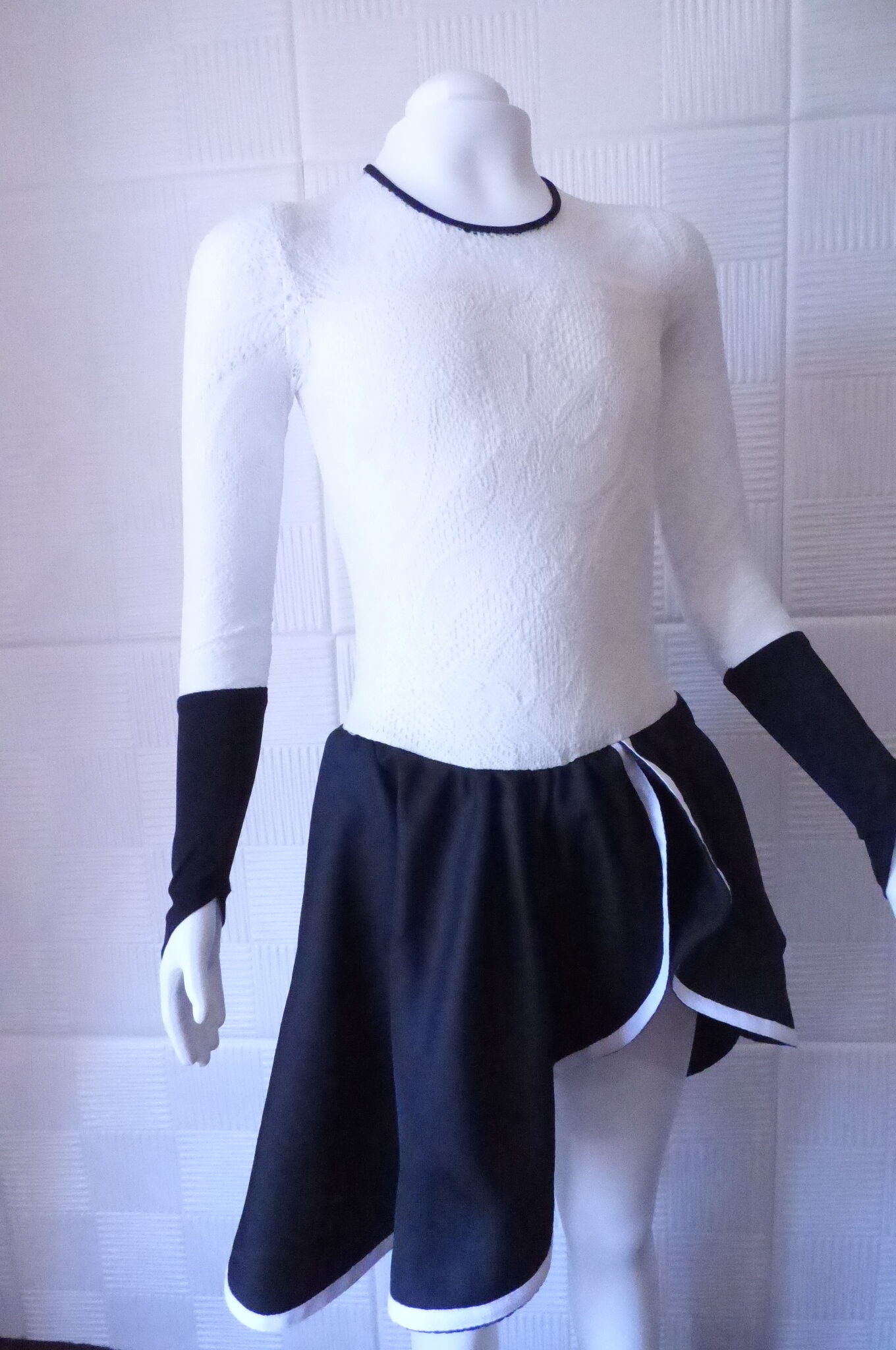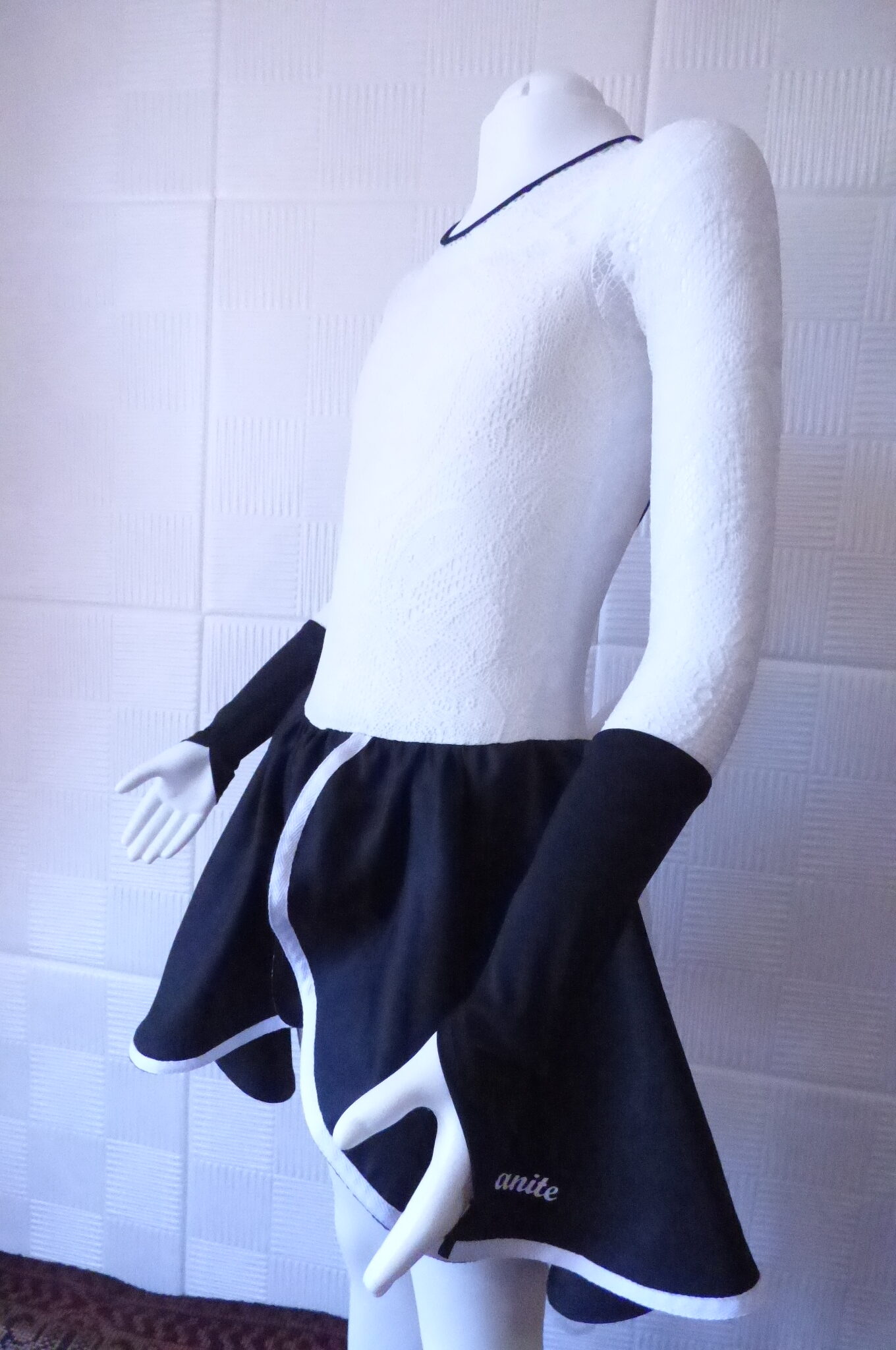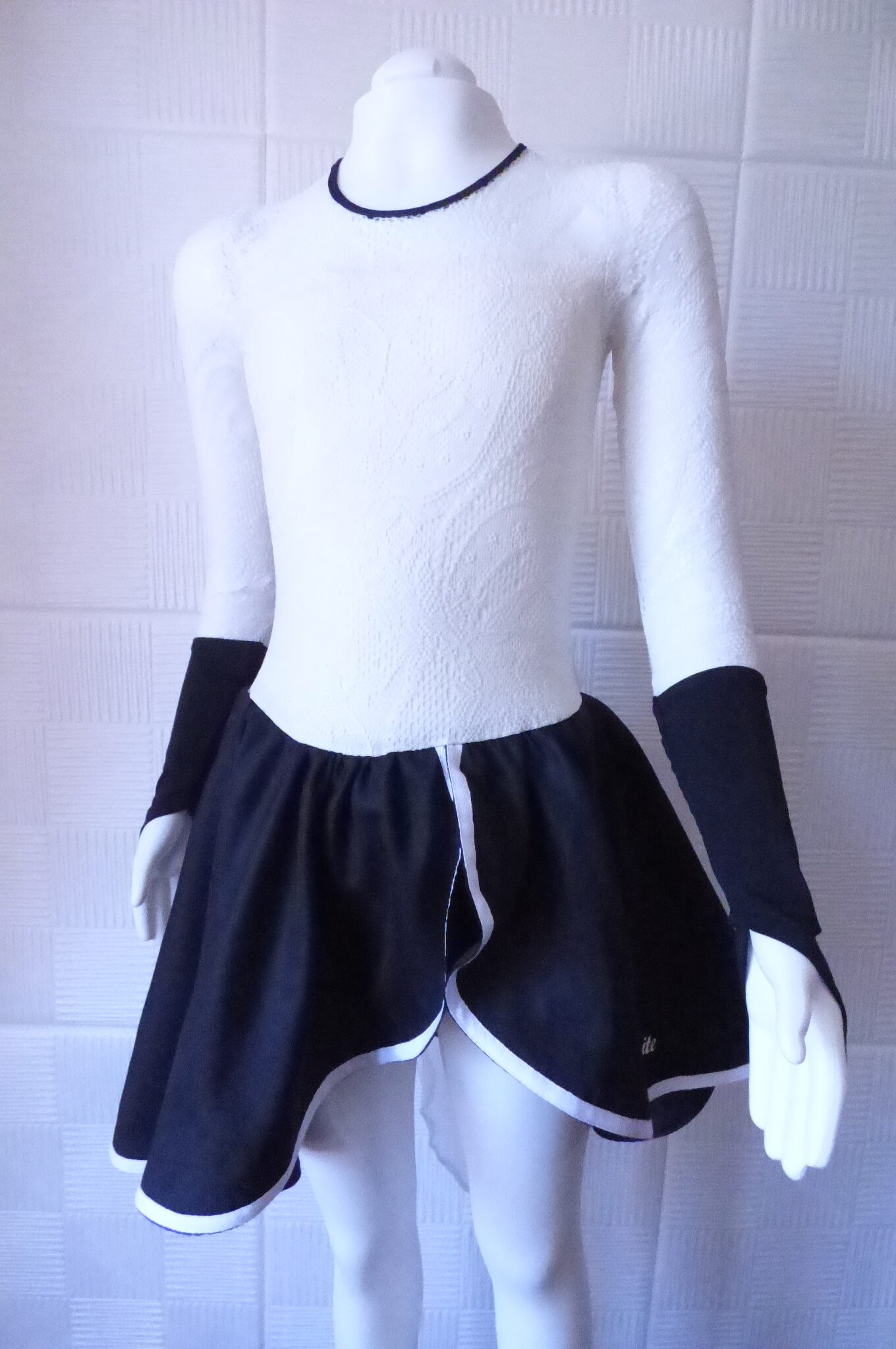 Детска рокля за спортни танци комбинация между бяло и черно ,изработена от памук, дантела , текстил .