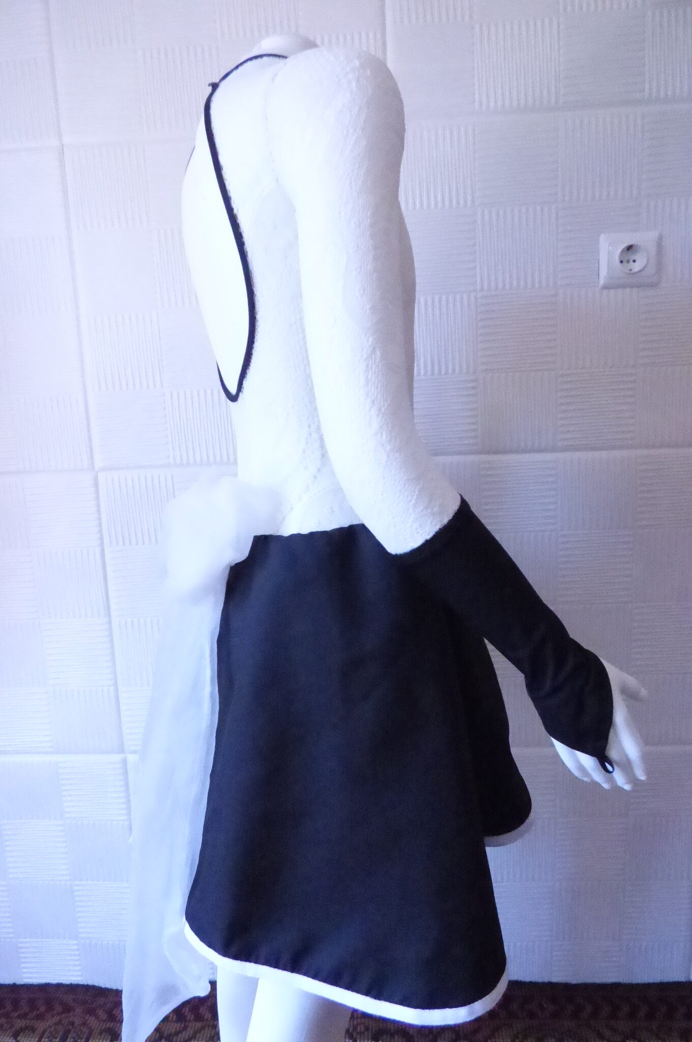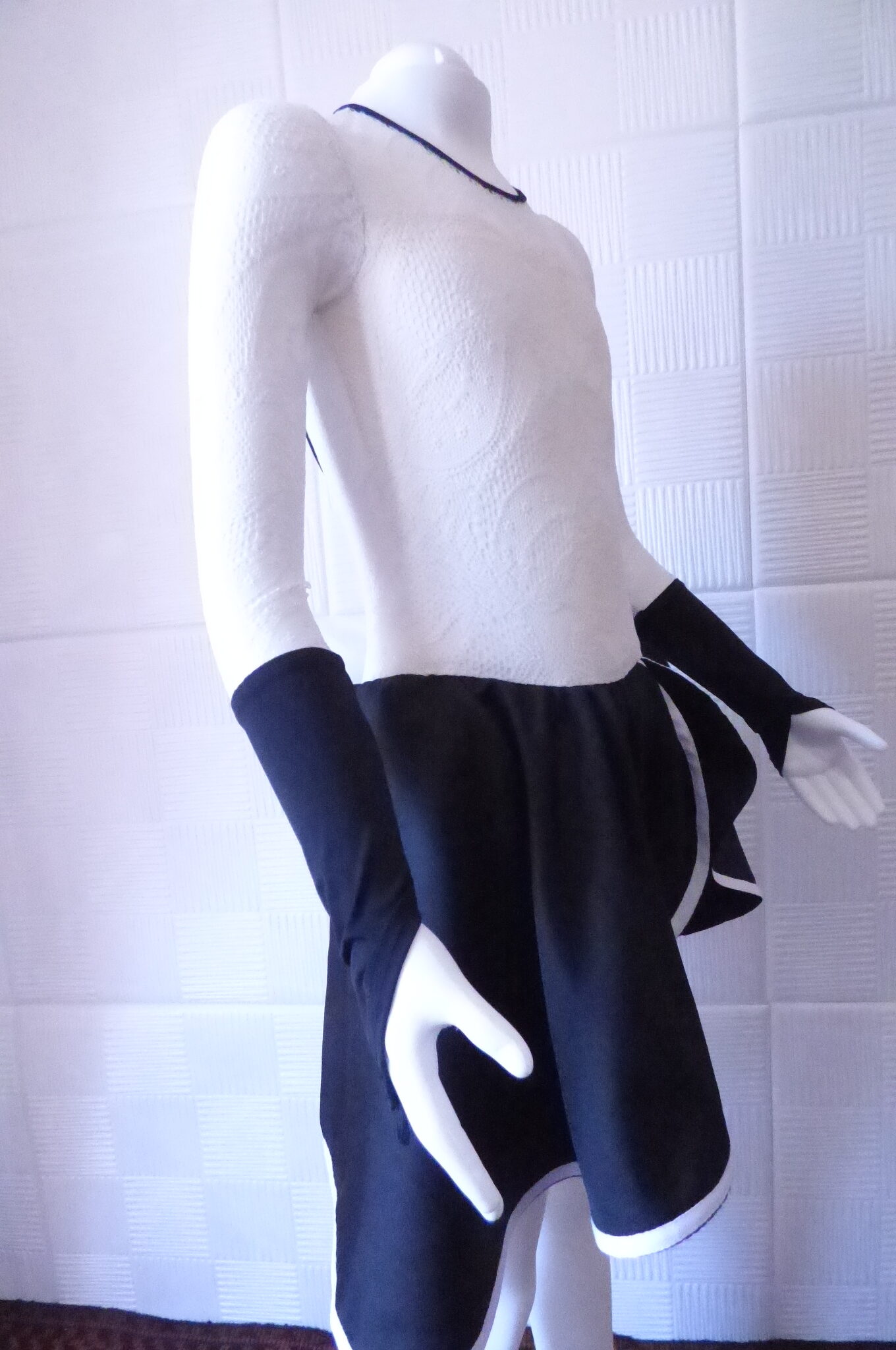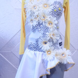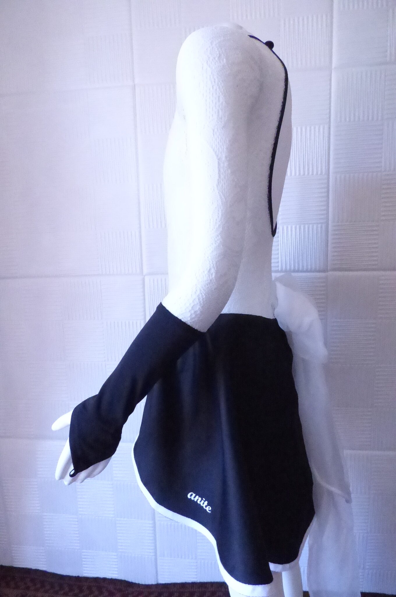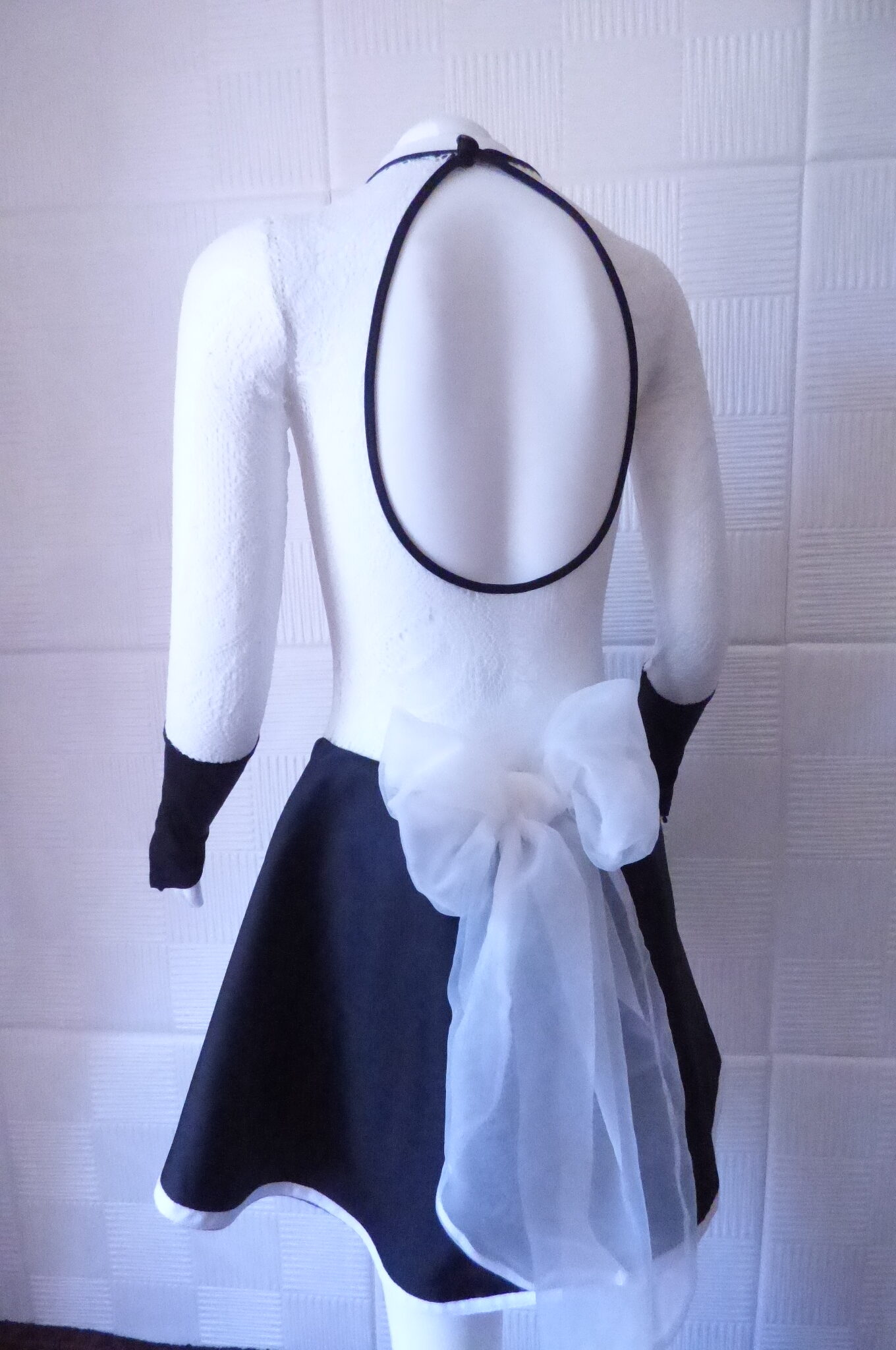 Детска рокля за спортни танци комбинация между бяло и черно ,изработена от памук, дантела , текстил .