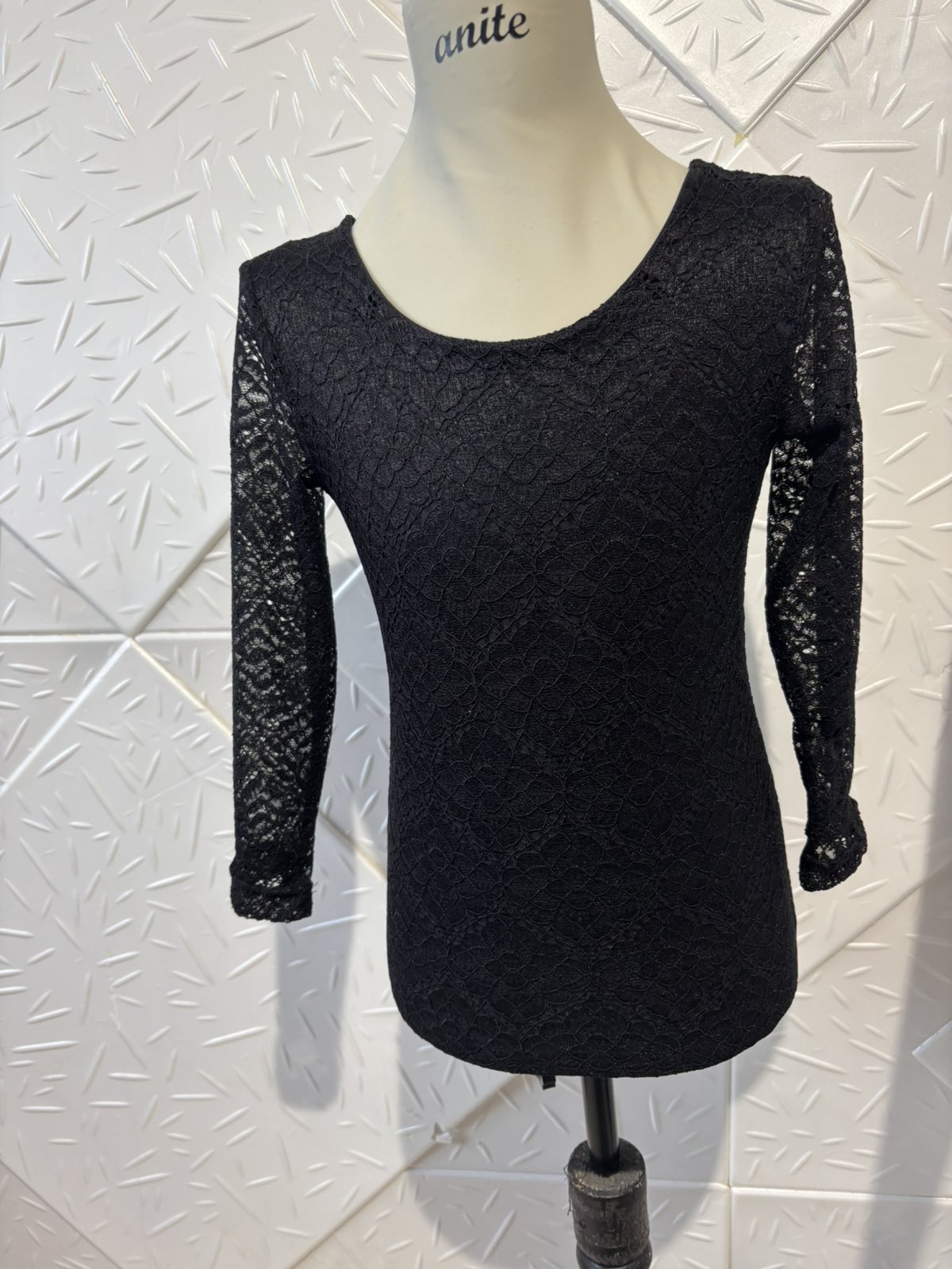 Детско боди за спортни танци с дантела , бодито може да е с закопчаване отдолу ако детето го дразни може и без , ръкавчетата също може да бъдат – дълги, три четвърти и къси.