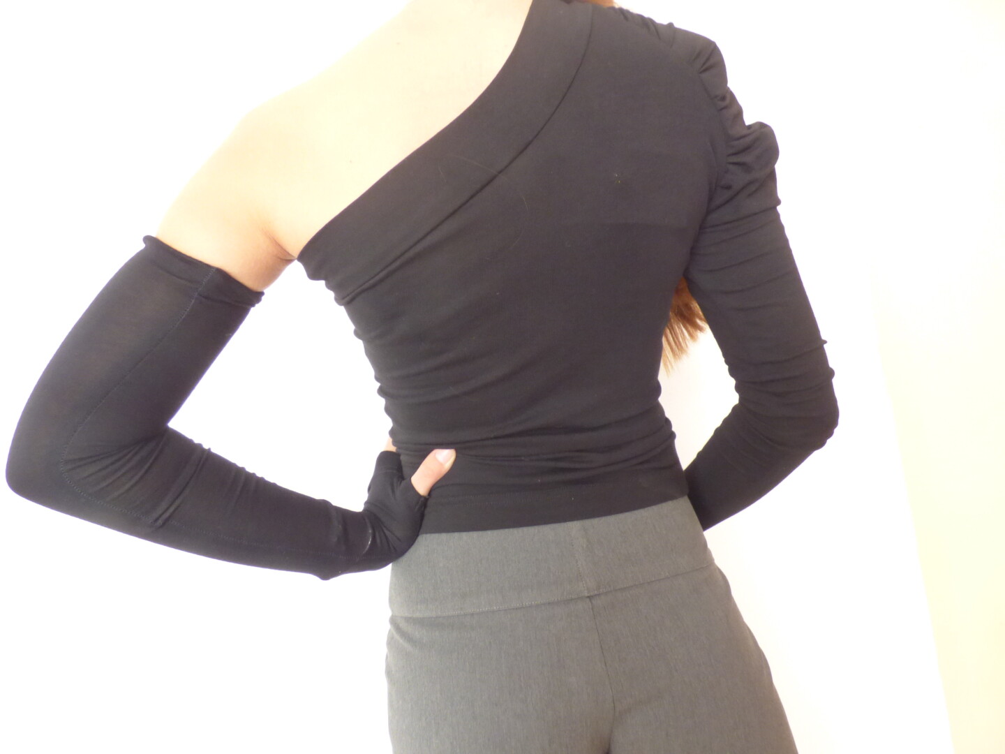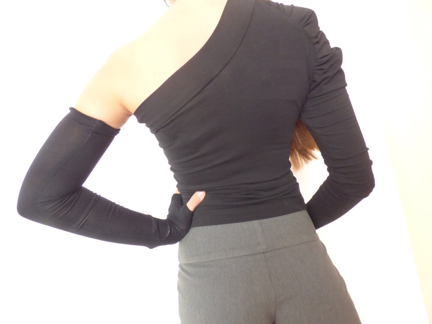Елегантна и нестандартна дамска блуза с едно рамо и ръкавел ,