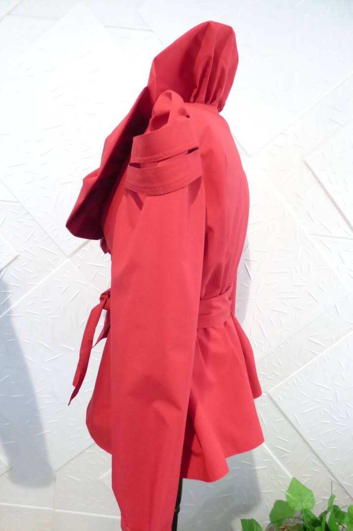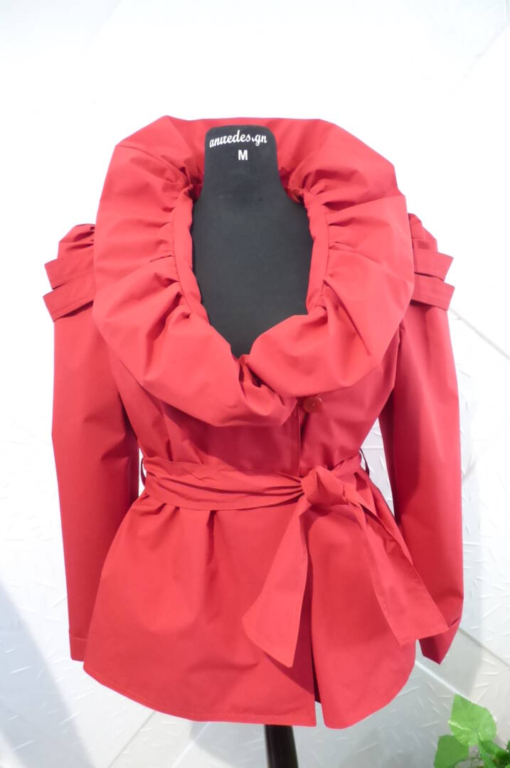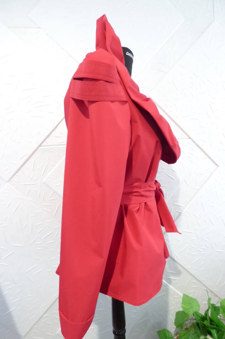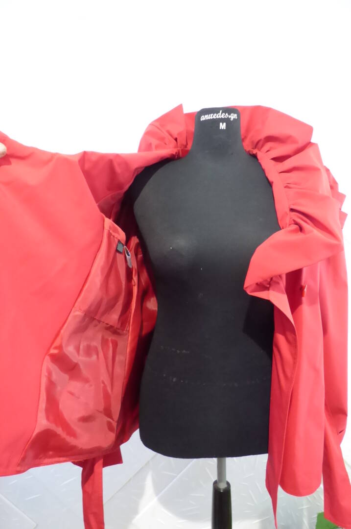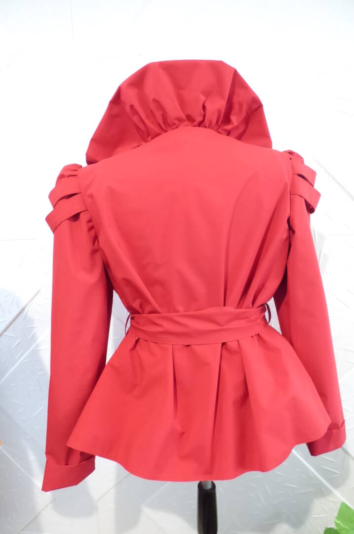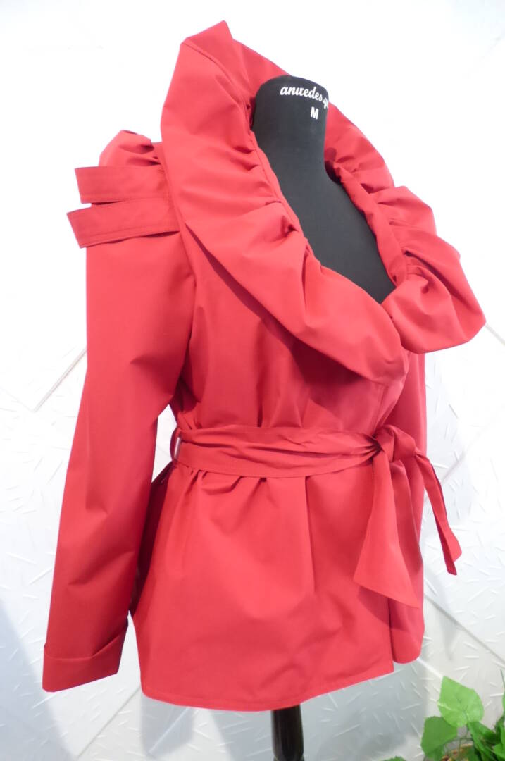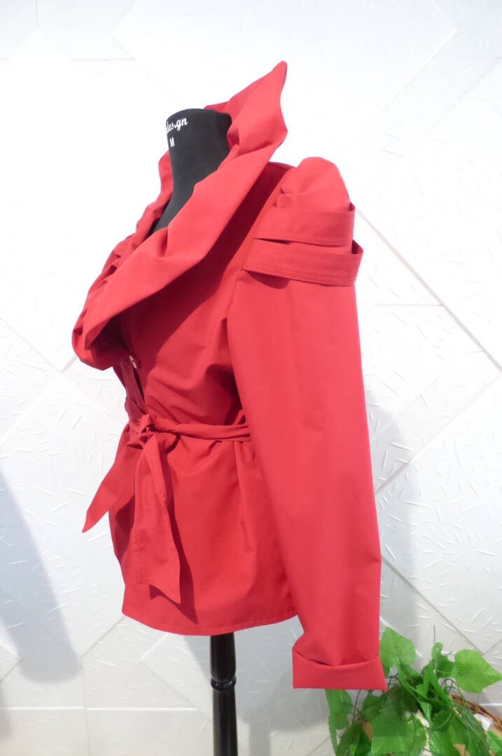 Елегантно червено сако с шал яка -къдри ,колан с панделка . хастар.