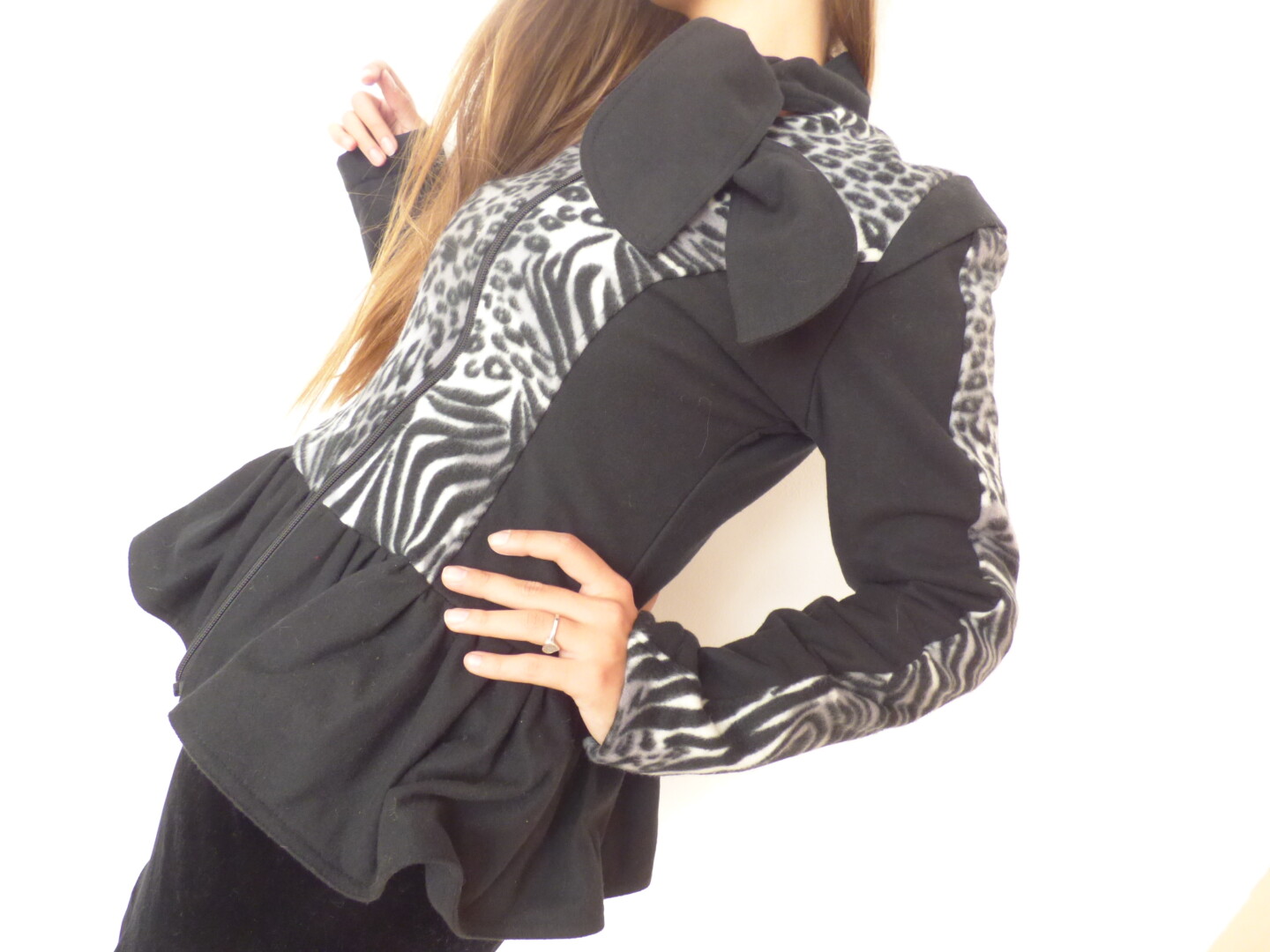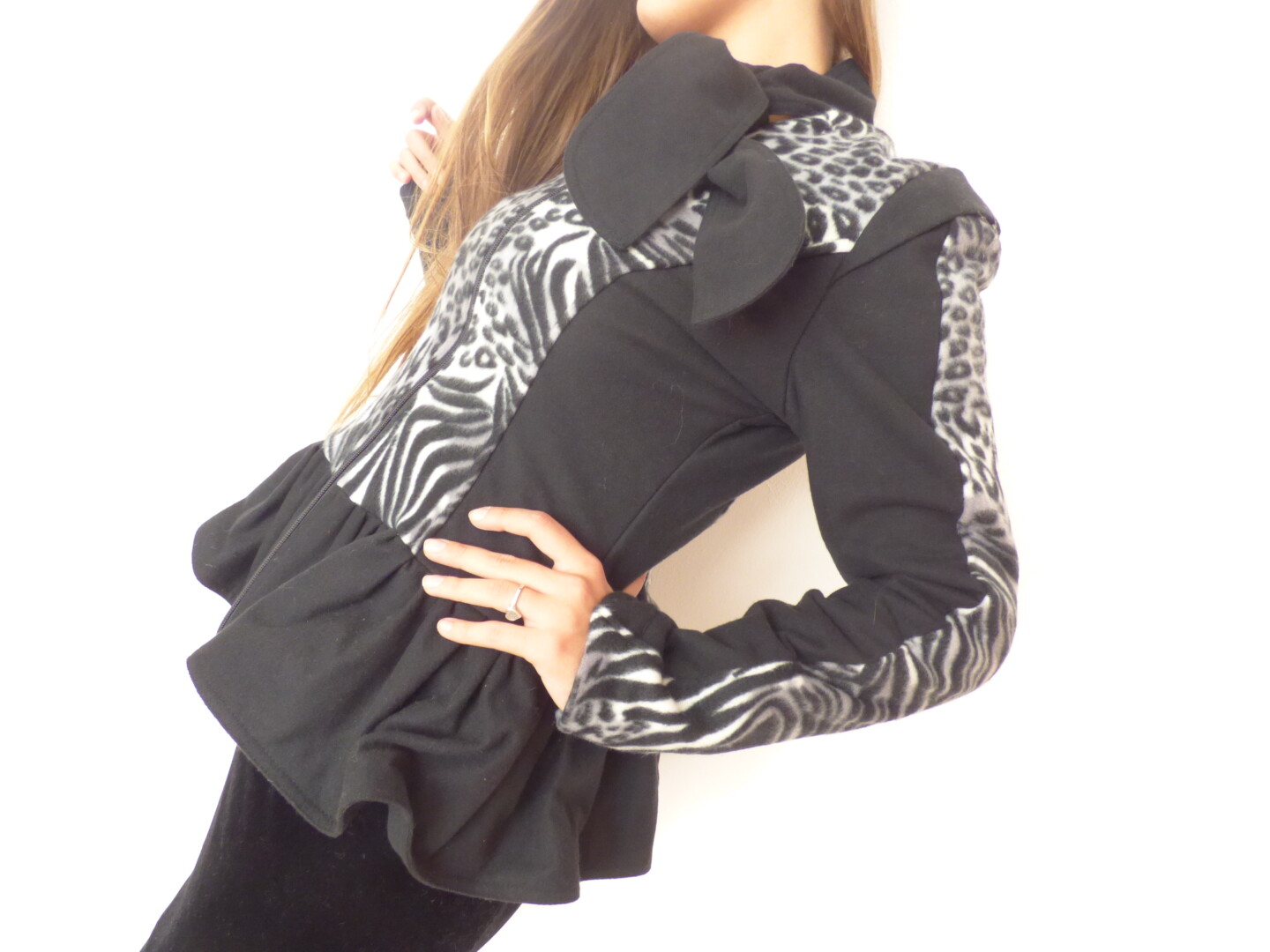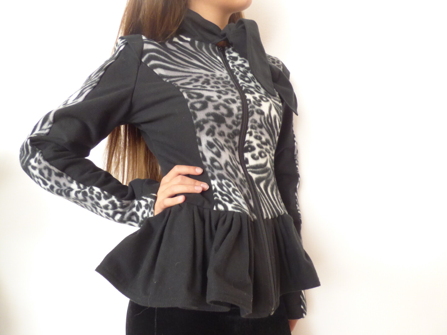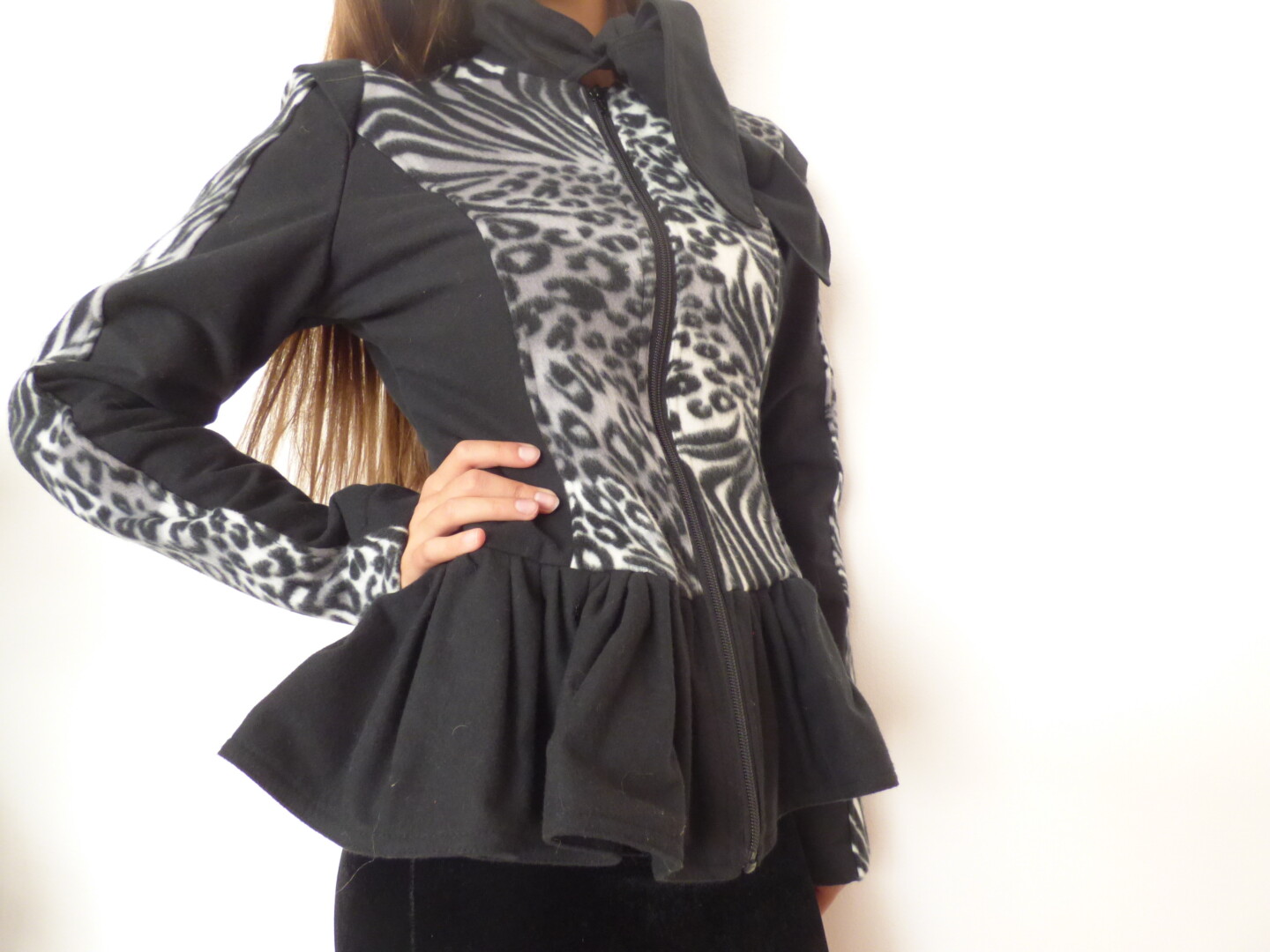 Елегантно дамско сако в черно бяло ,