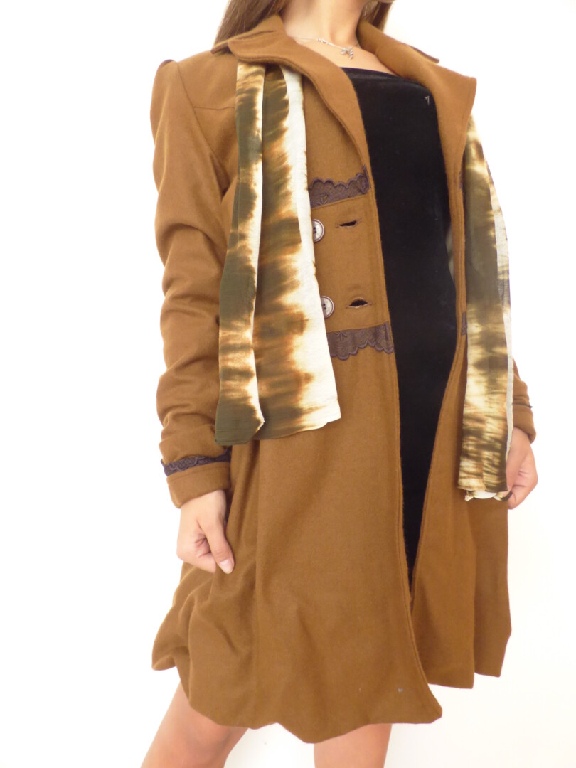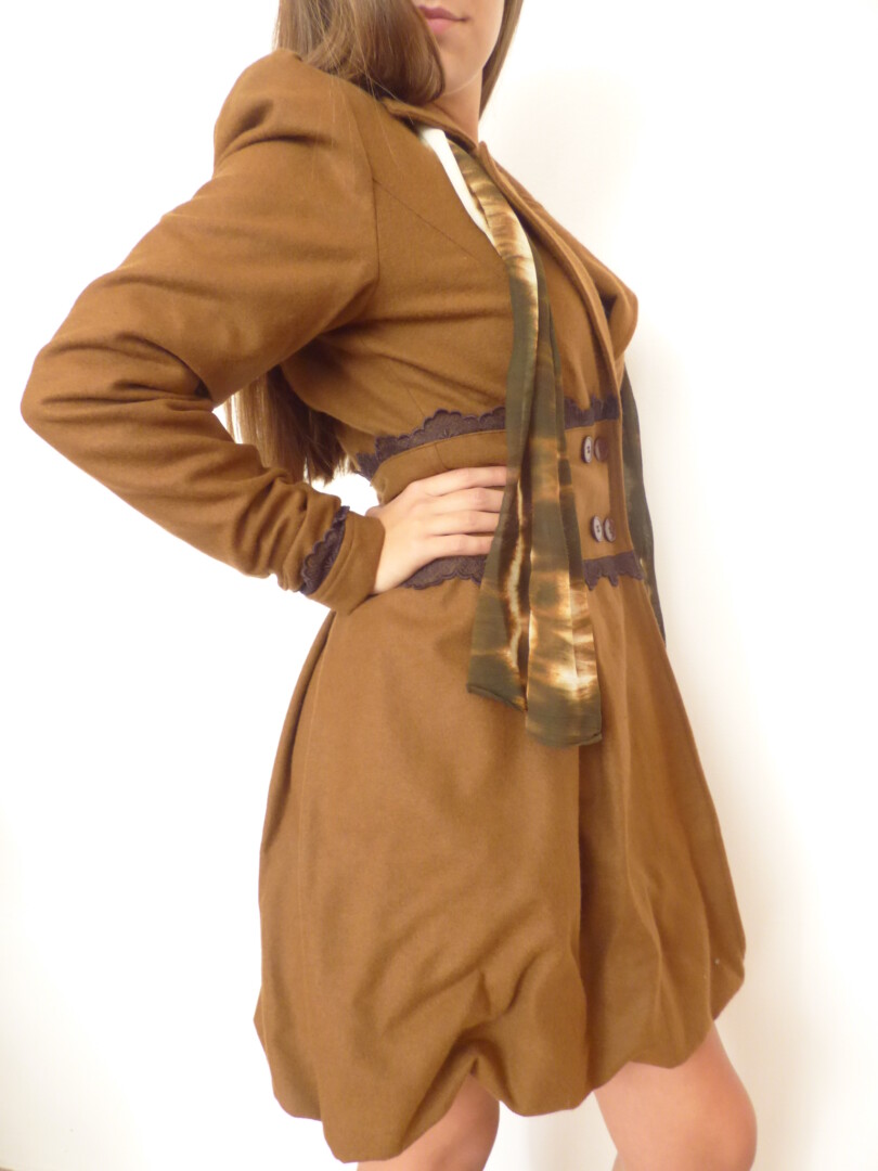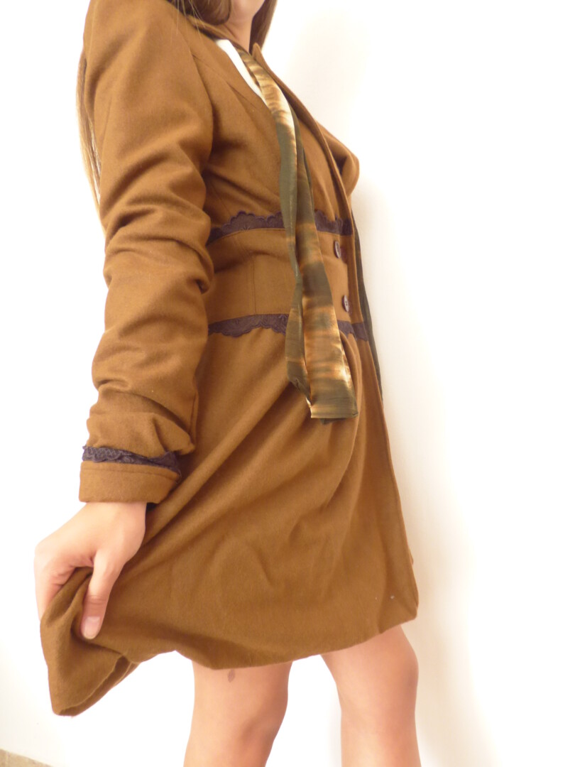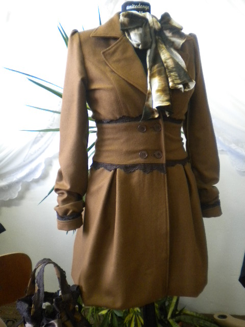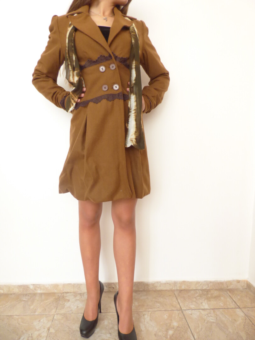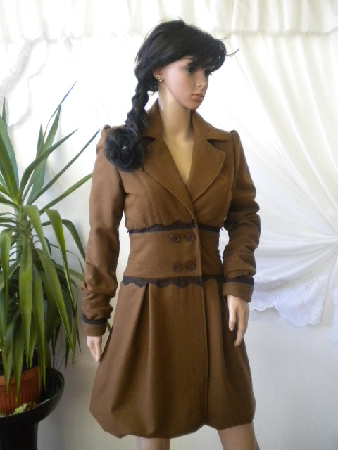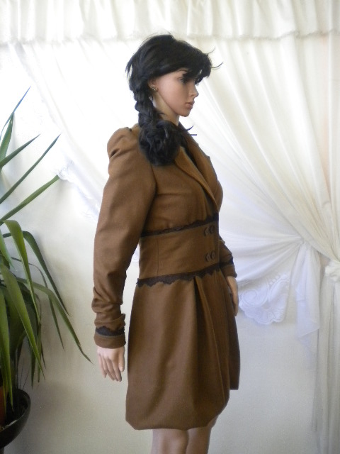 Стилно и елагантно дамско палто с дантела ,изработено от вълнен текстил, дантела и хастар.