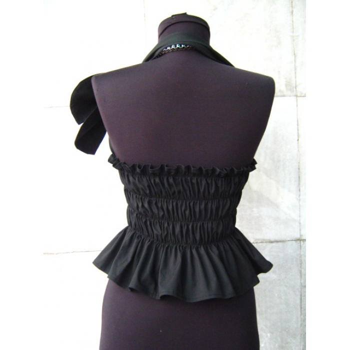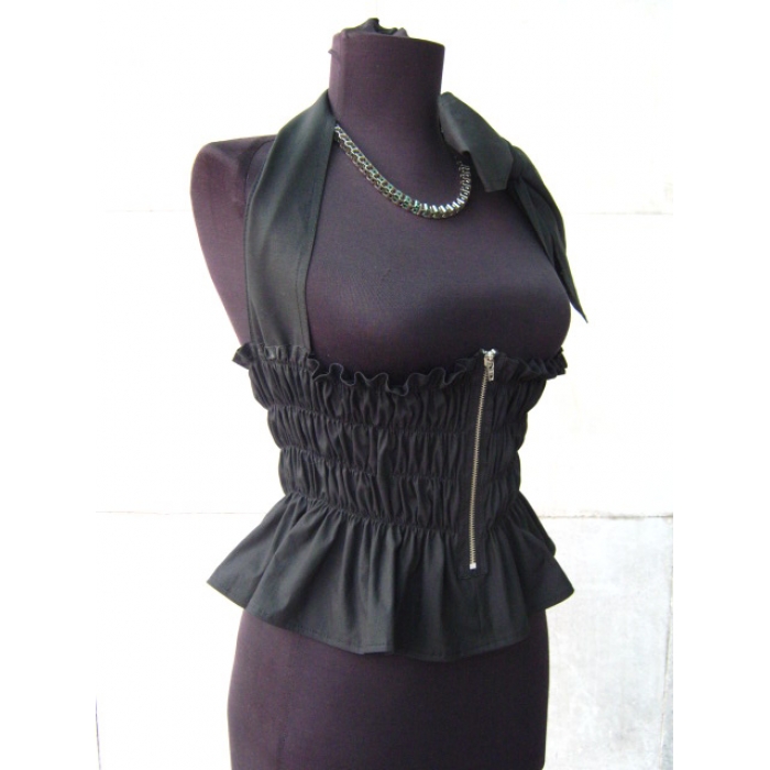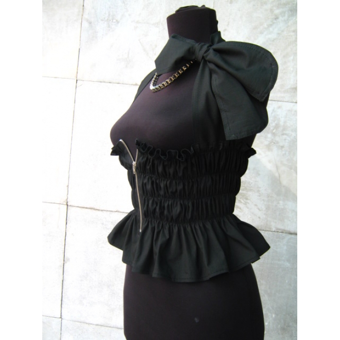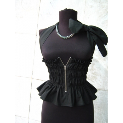 Черен корсен с ластик , цип и панделка , изработен от 100% памук, ластик и метален цип.