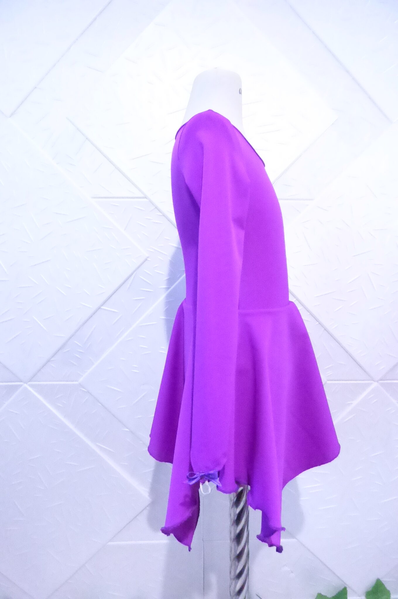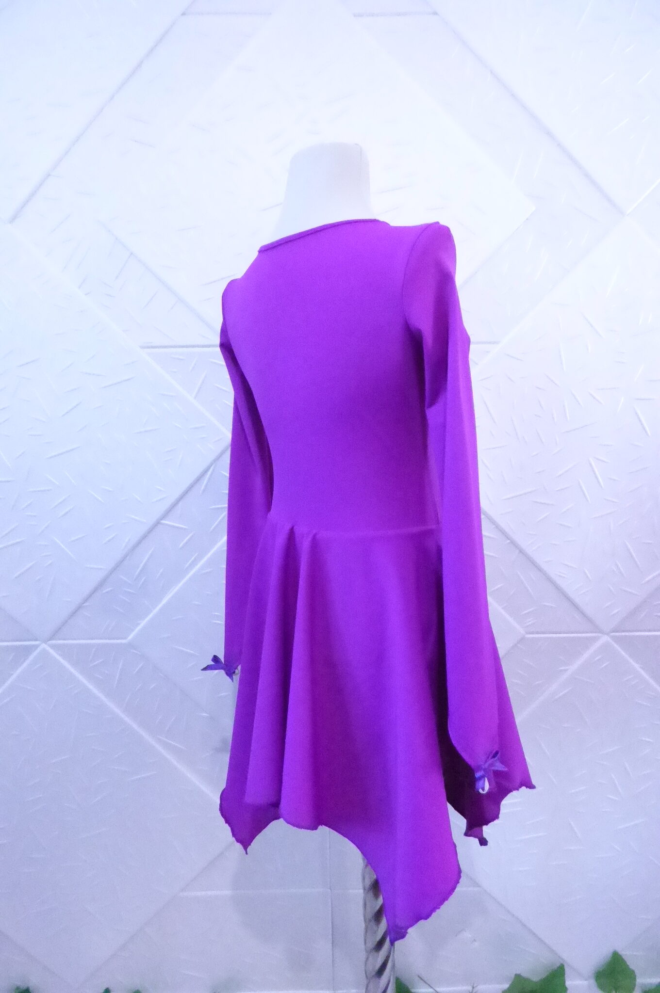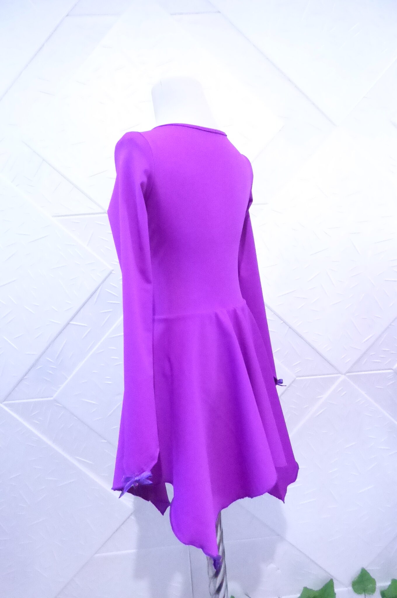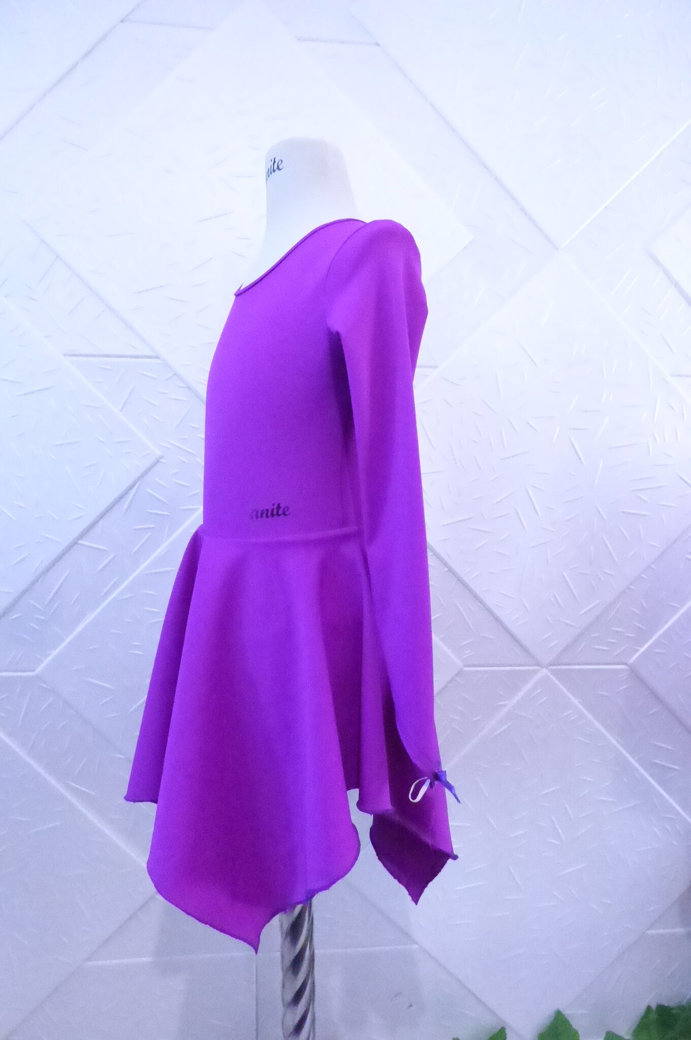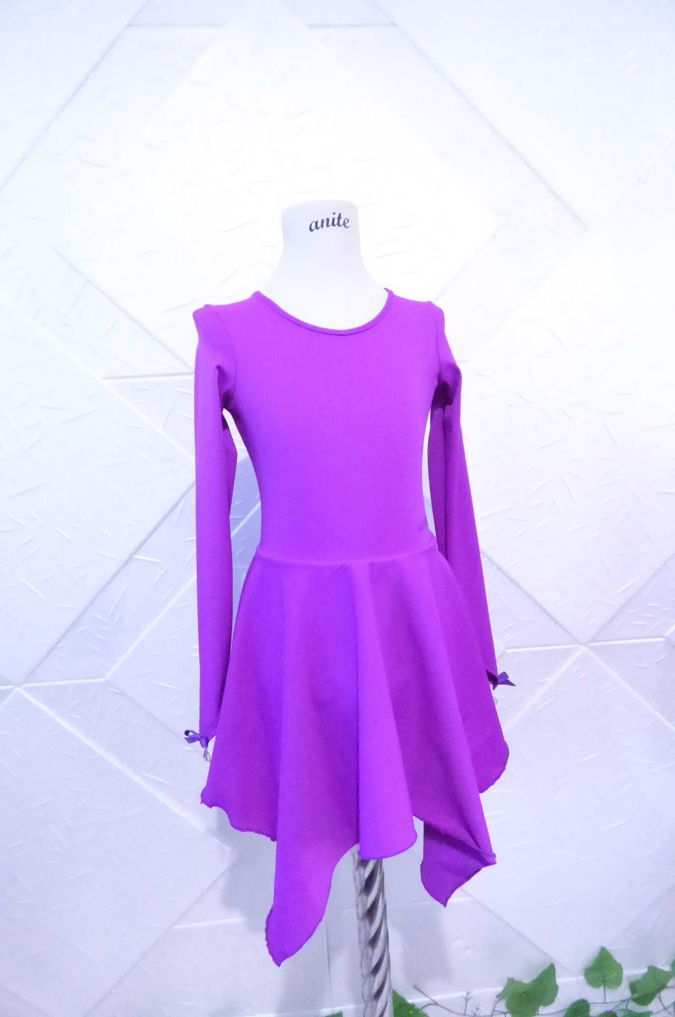 Лилава детска рокля за спортни танци, изработена от ликра.