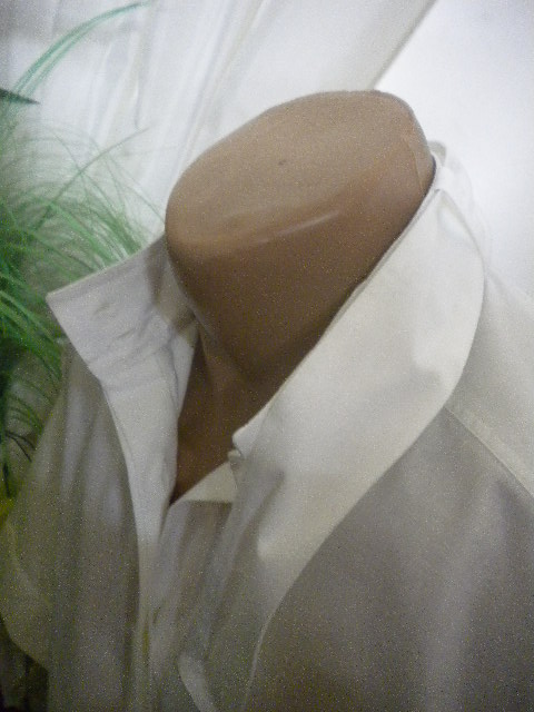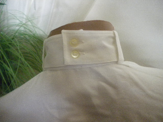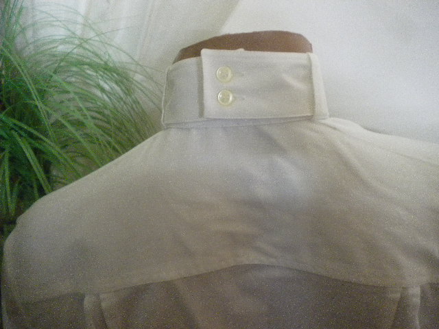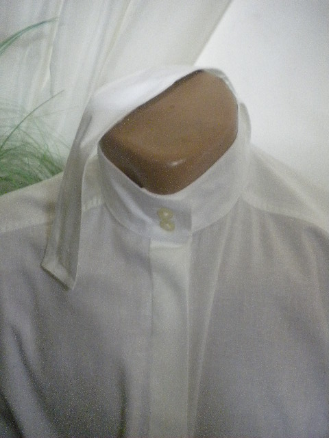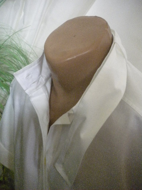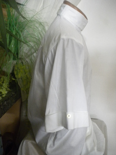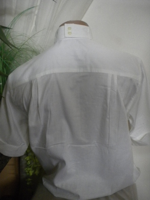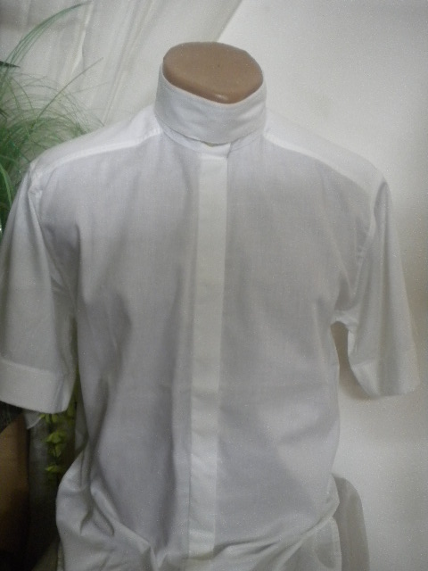 мъжка бяла риза с къс ръкав , столче яка , скрито закопчаване .