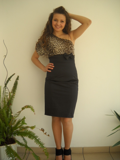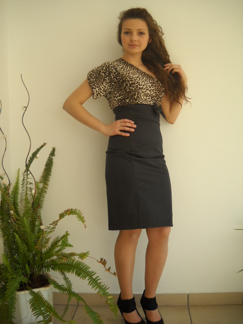 изработена от памук с еластан-трико в леопардов принт и тъмно кафяв памук с еластан .