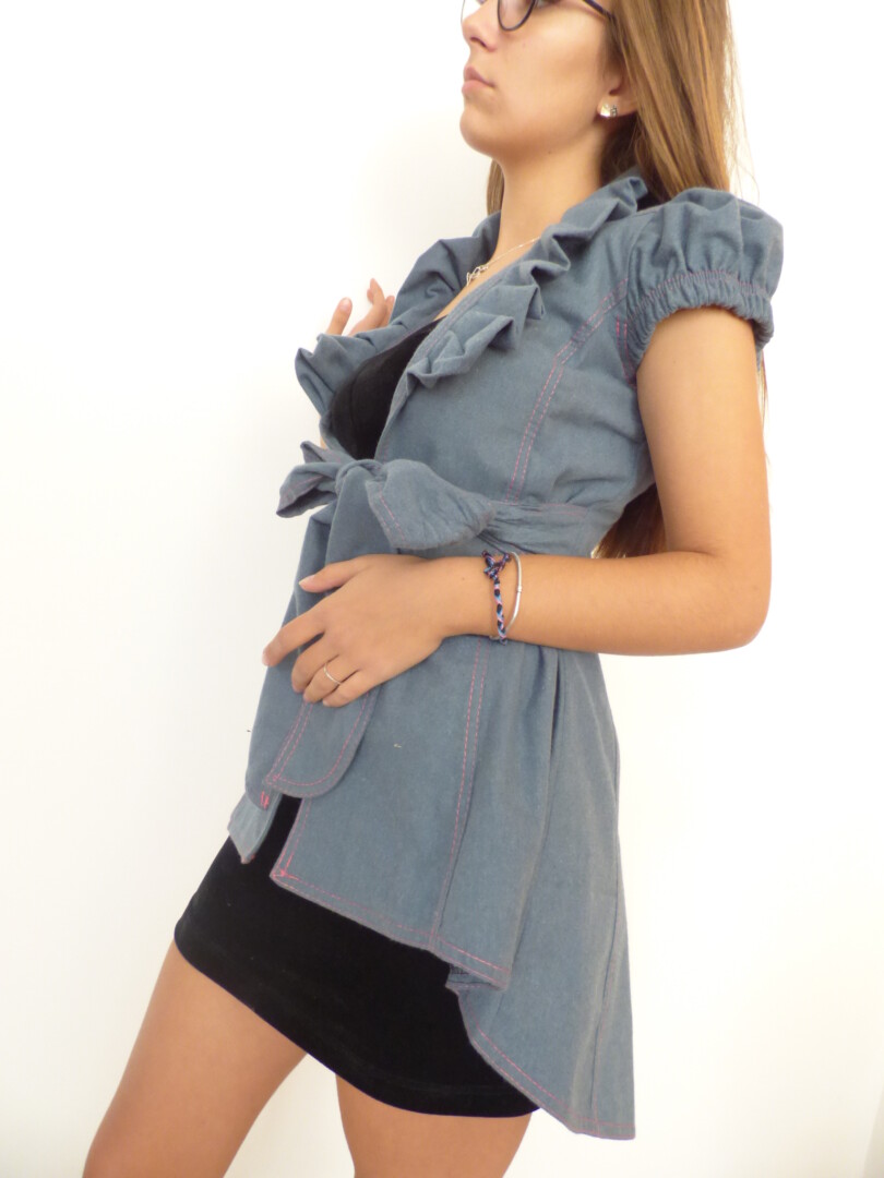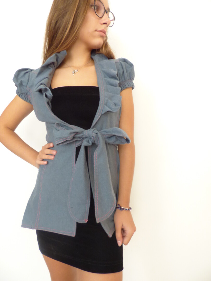 набрана шал яка и коланче с панделка , розови лицеви коци.