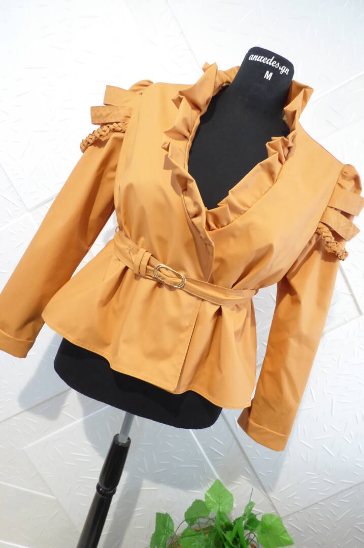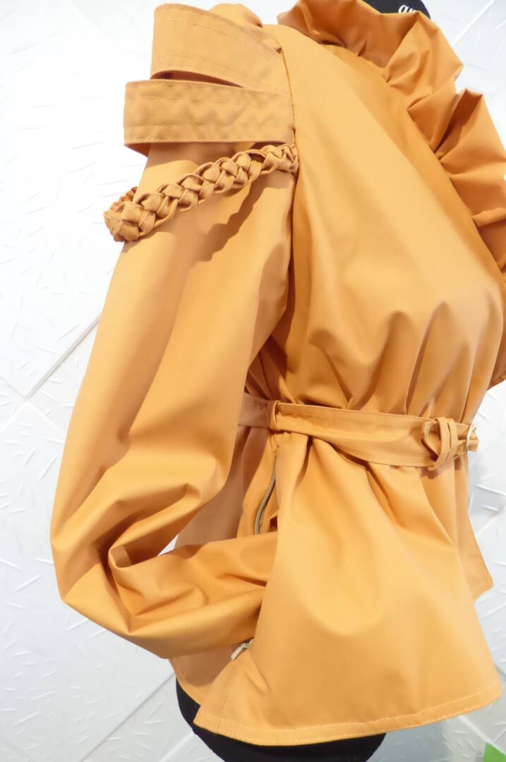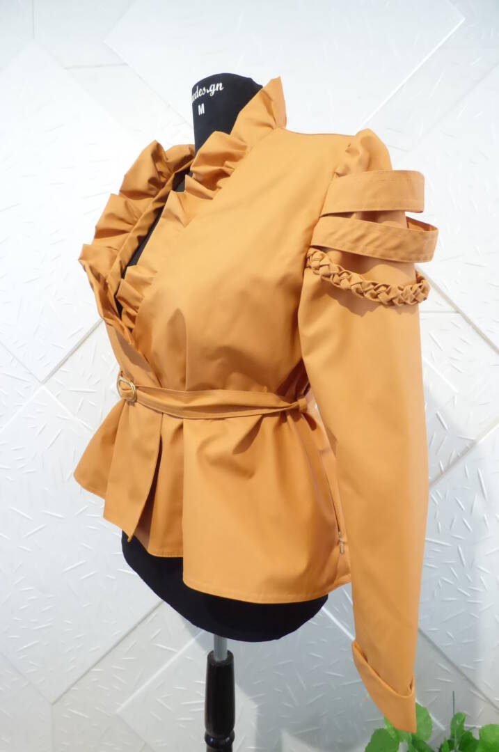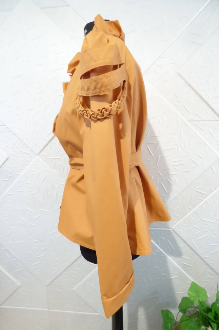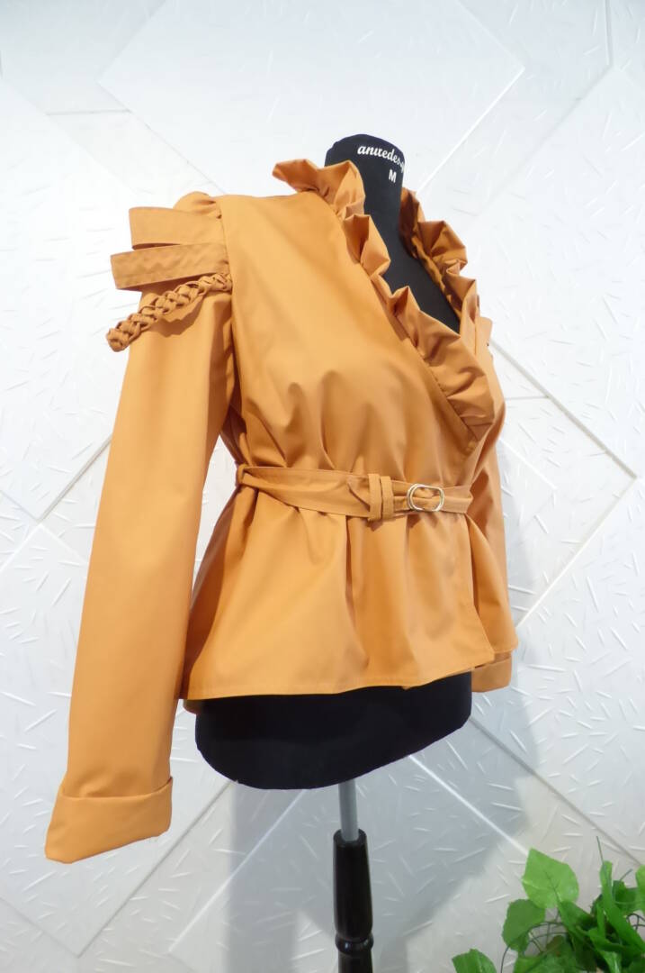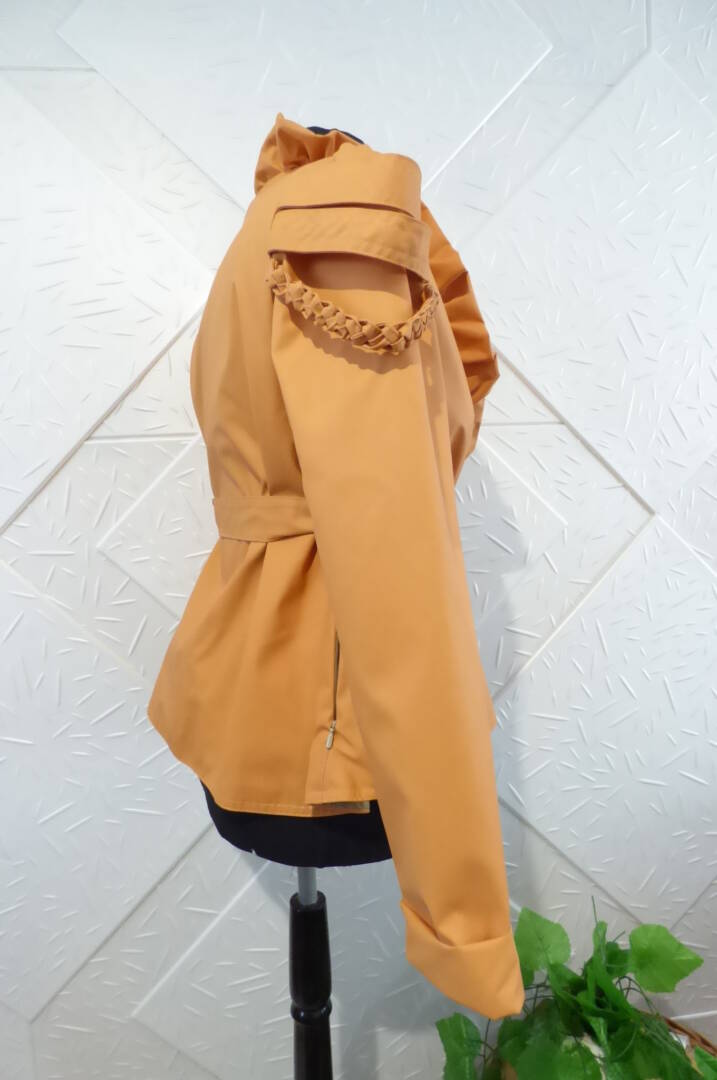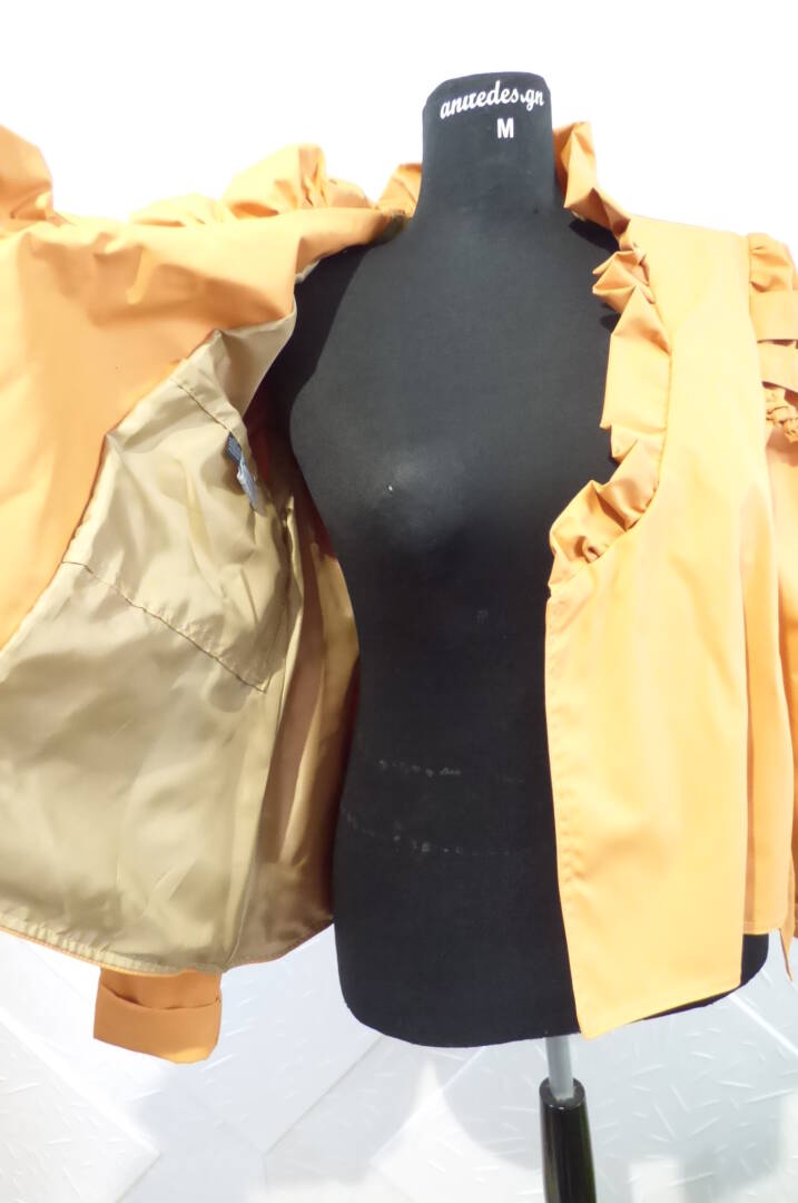 Стилно оранжево сако ,изработено от текстил-еко кожа. Модела е подходящ за размер- M-L