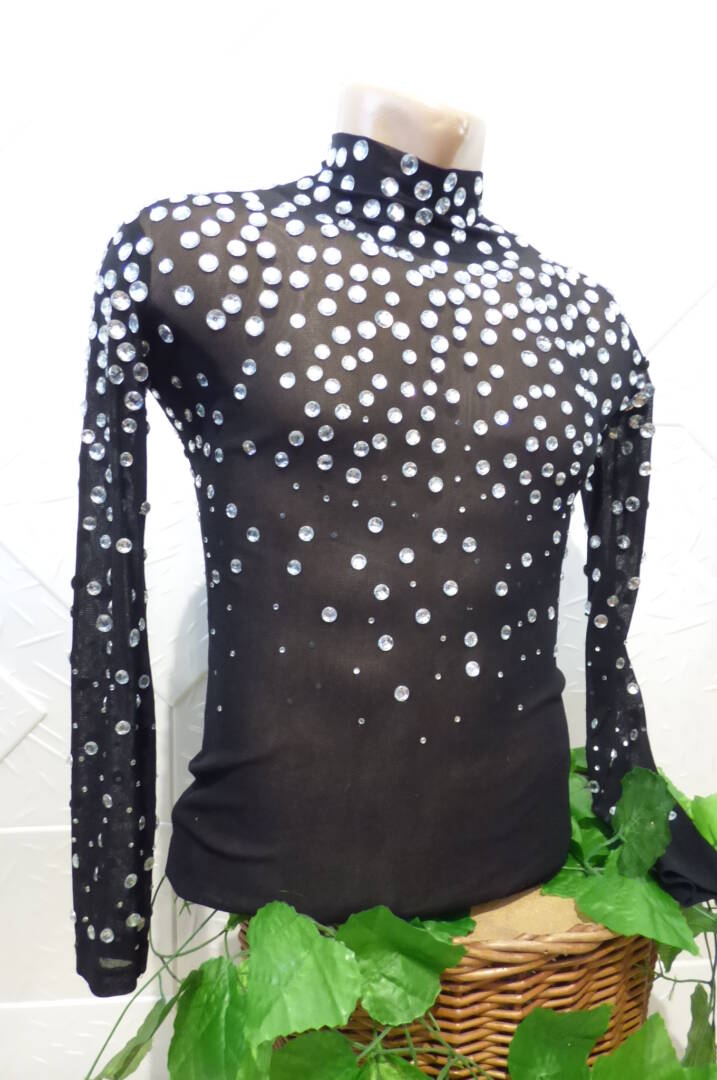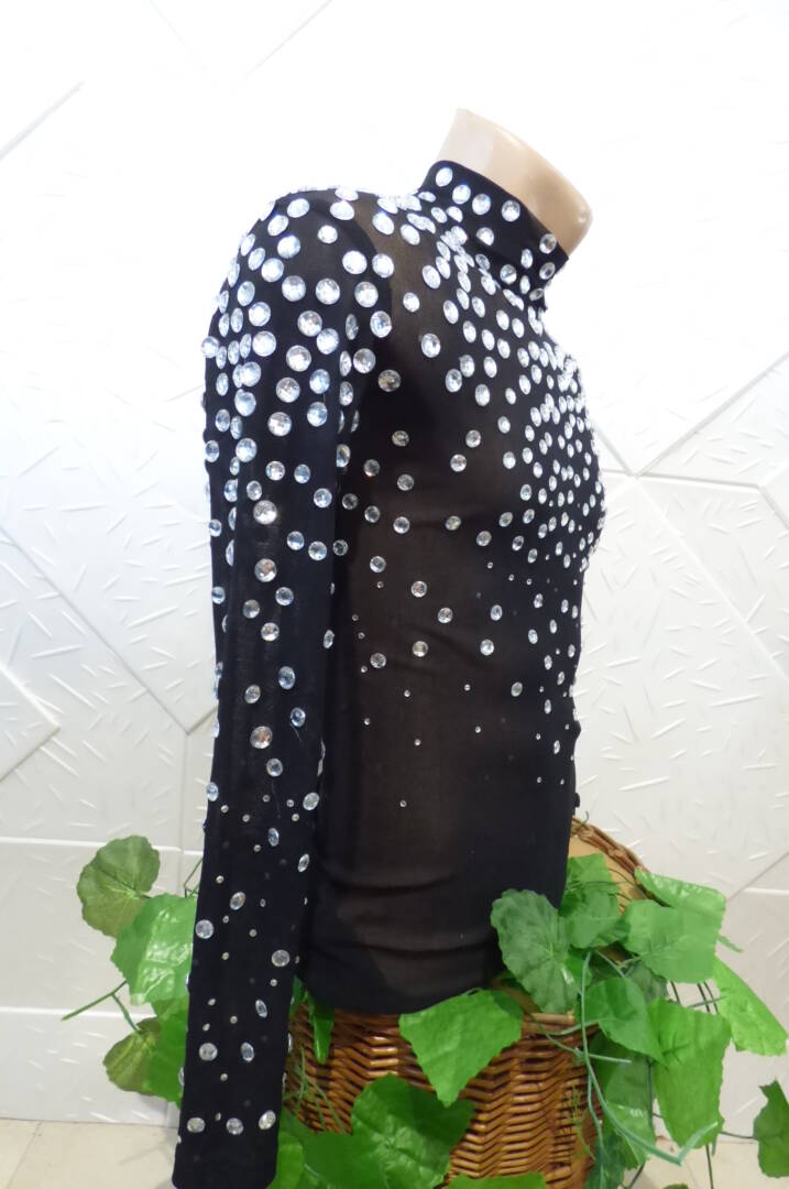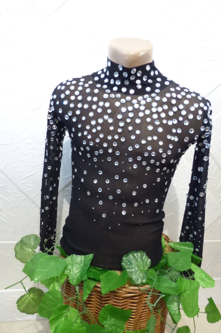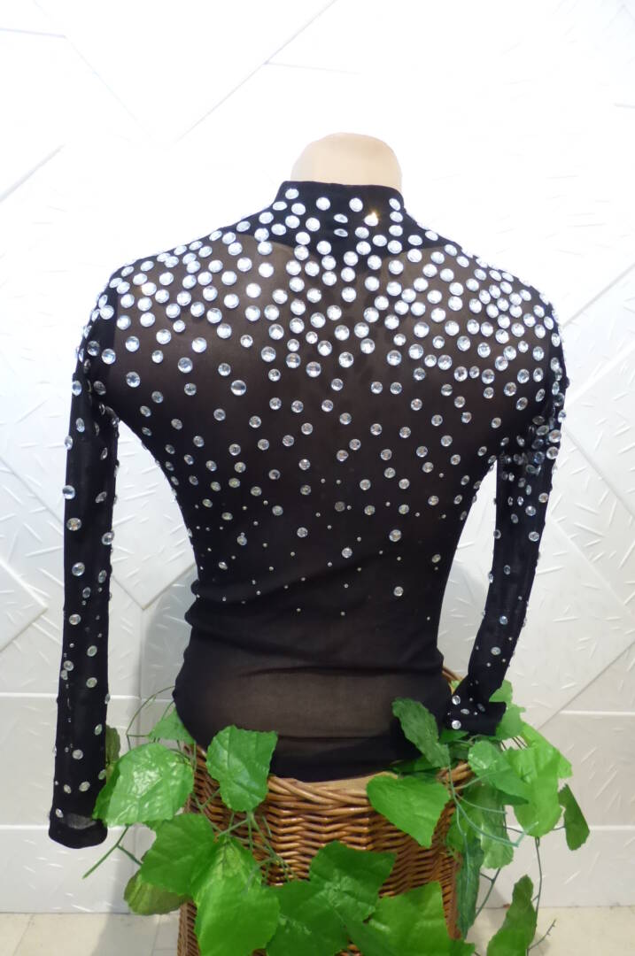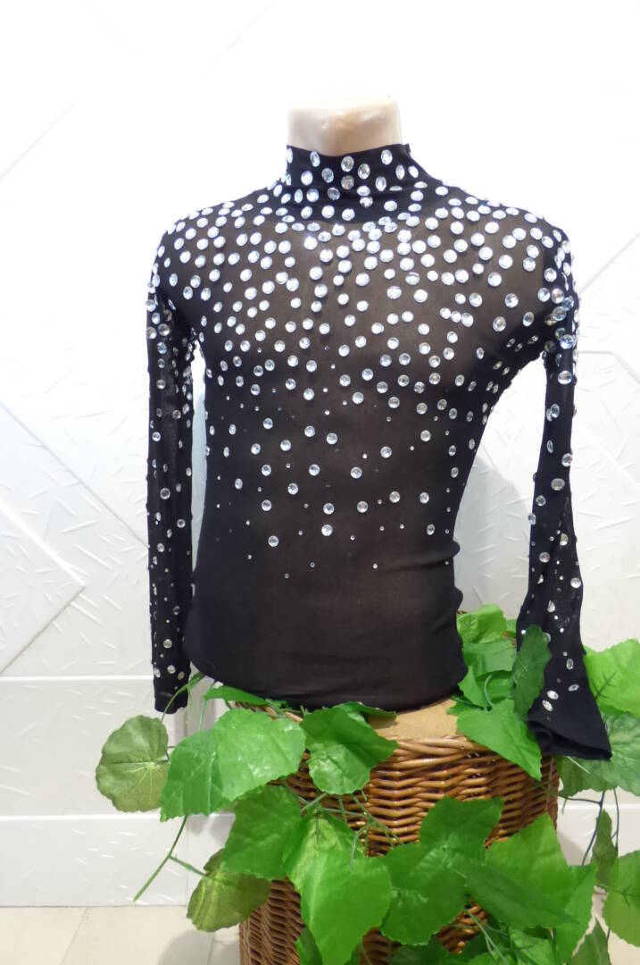 поло за спортни танци или друго мероприятие , изработено от мек тюл- мрежа и различни по големина кристали .