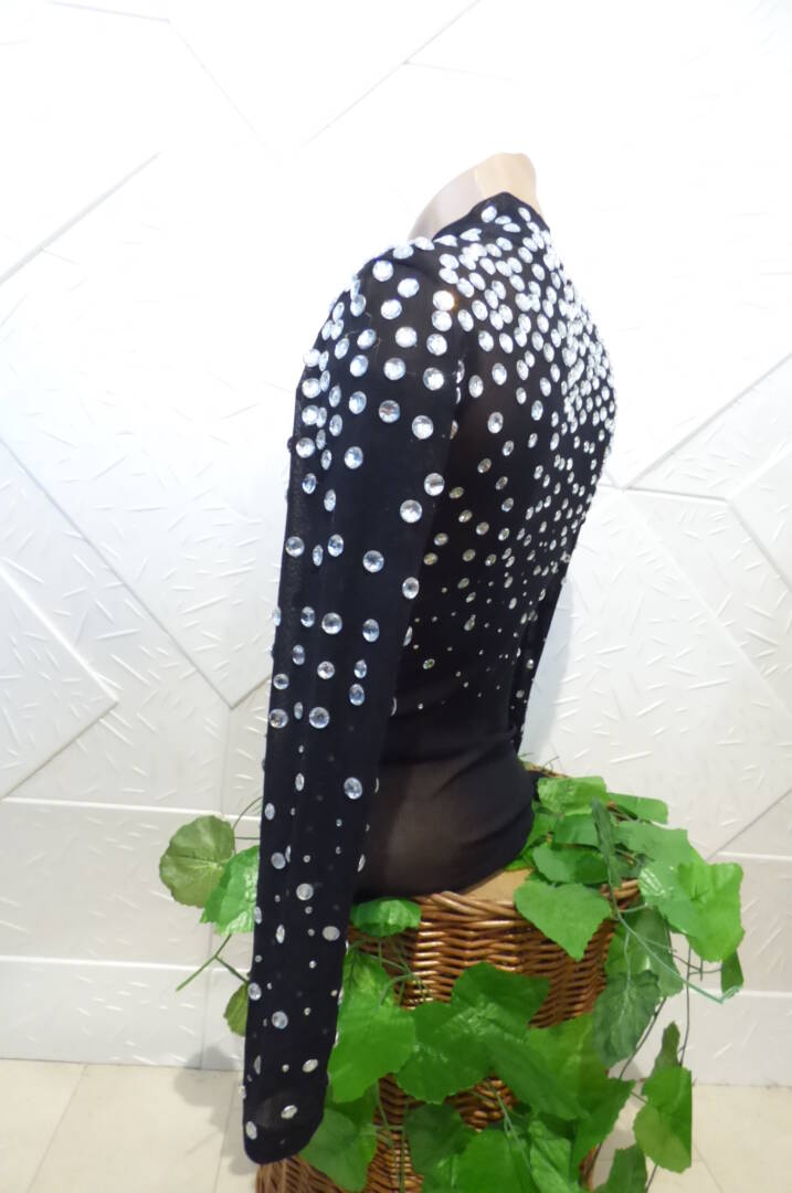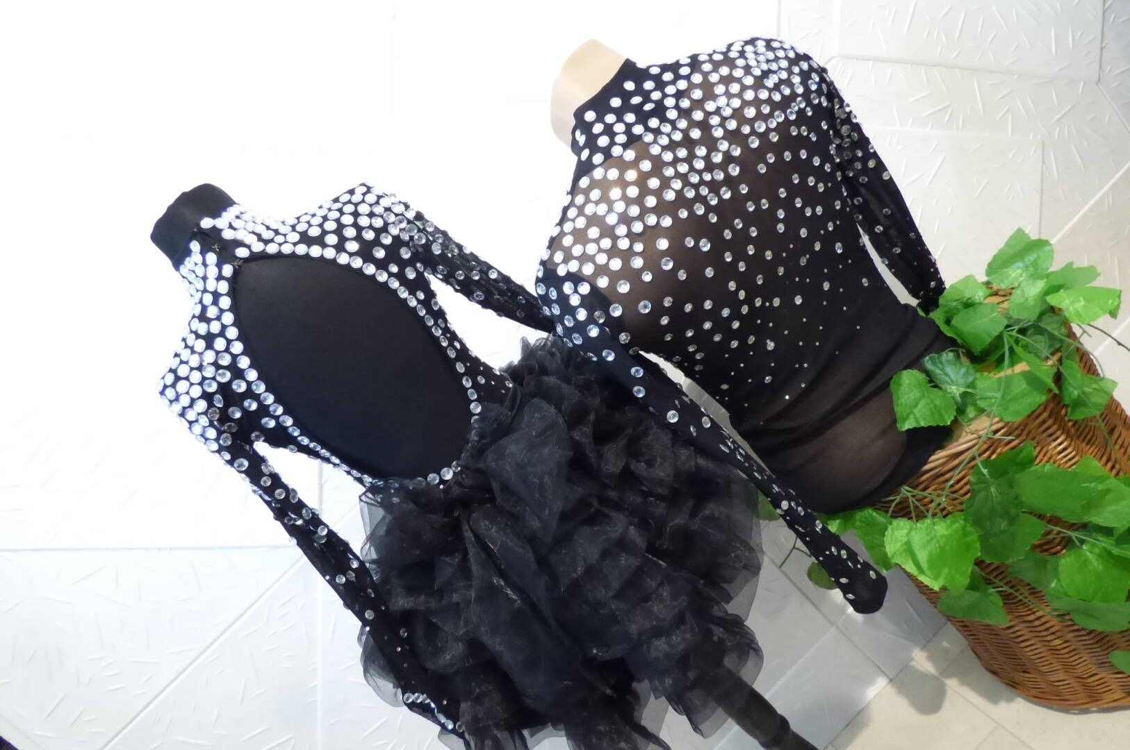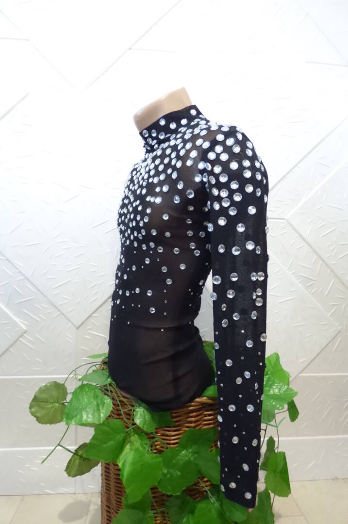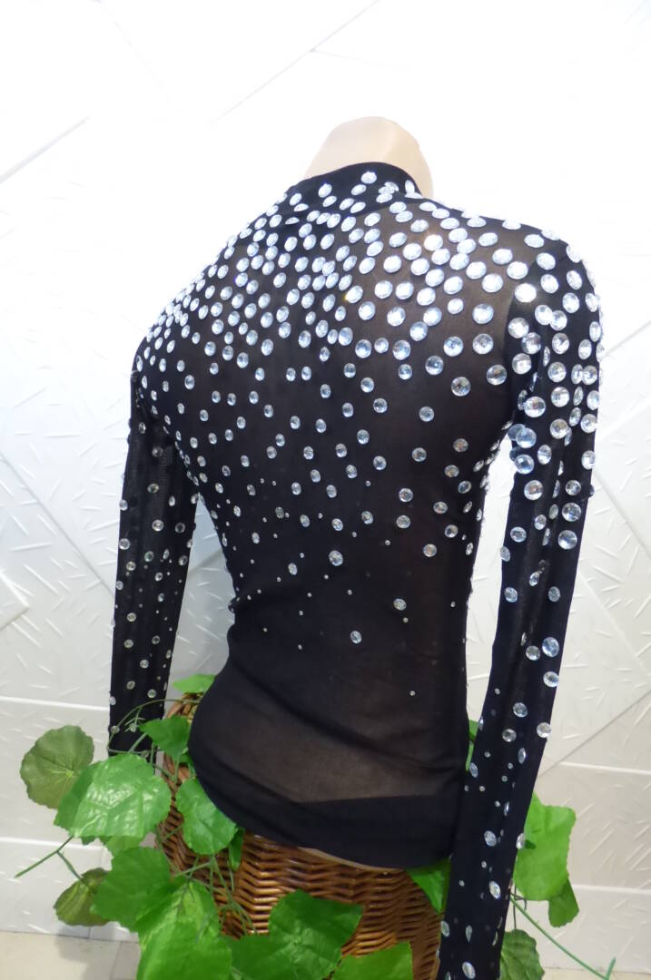 поло за спортни танци или друго мероприятие , изработено от мек тюл- мрежа и различни по големина кристали .