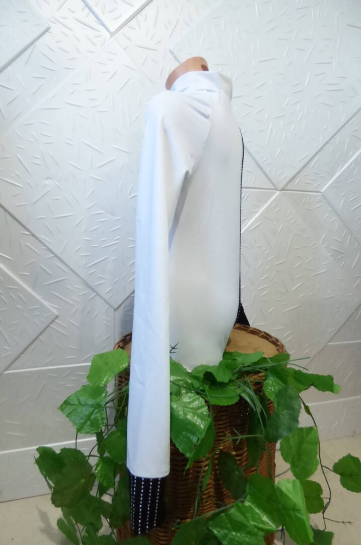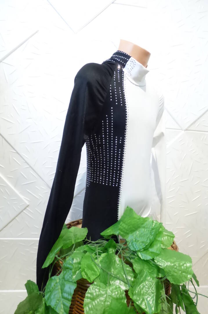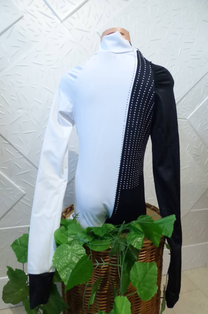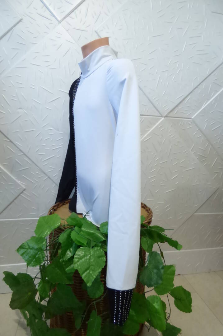 Детско поло за спортни танци – черно и бяло , изработено от полиамид с еластан .