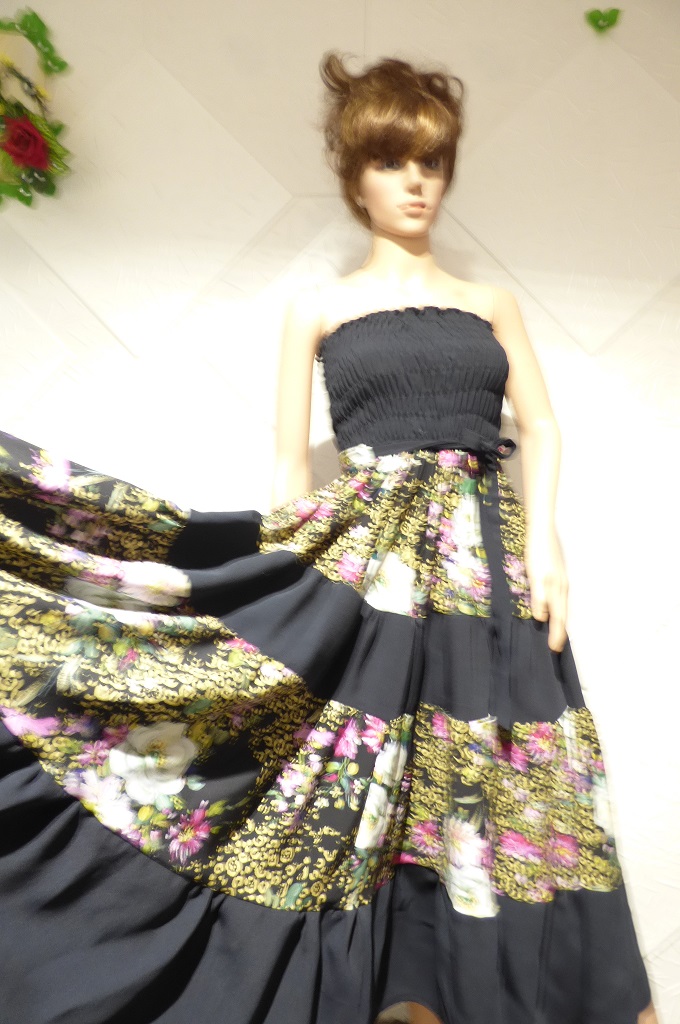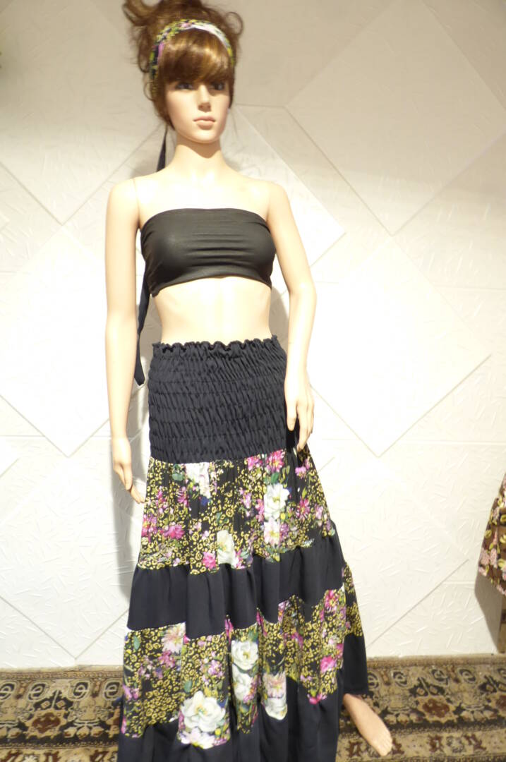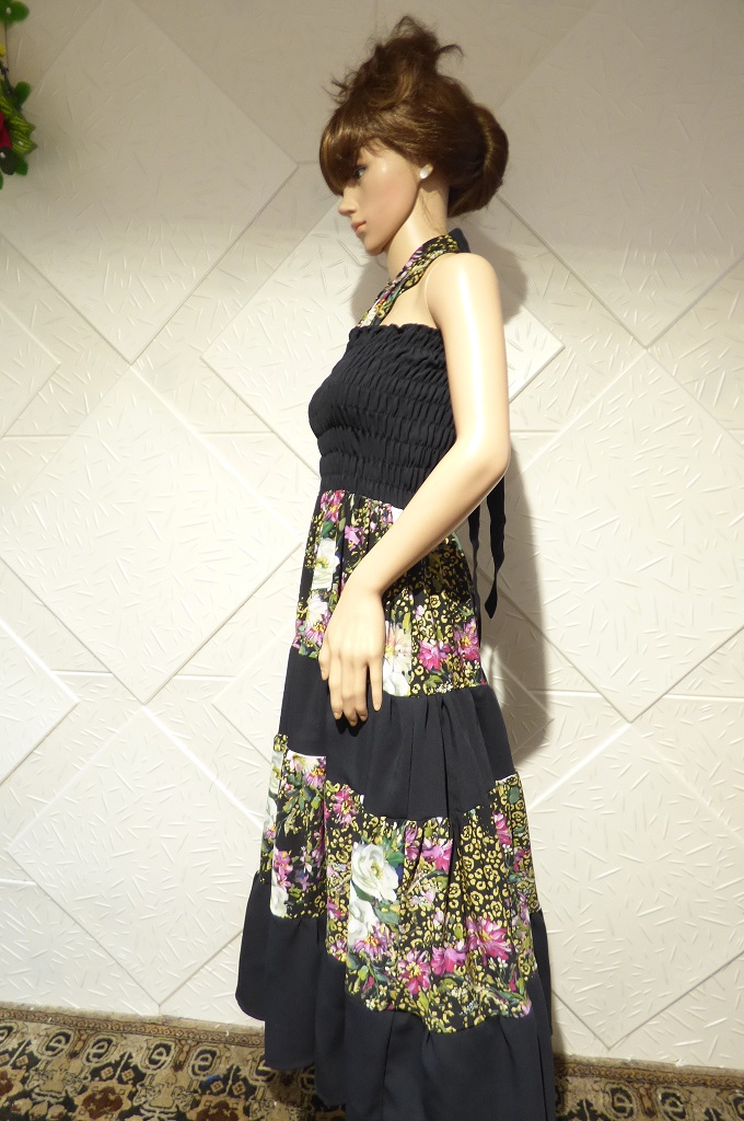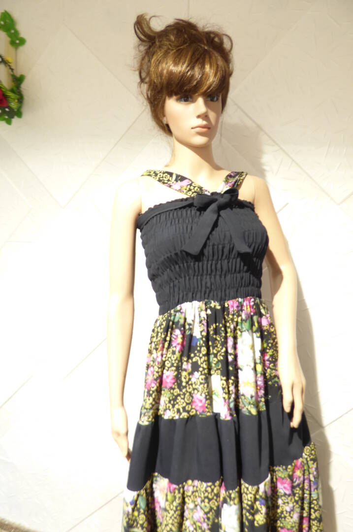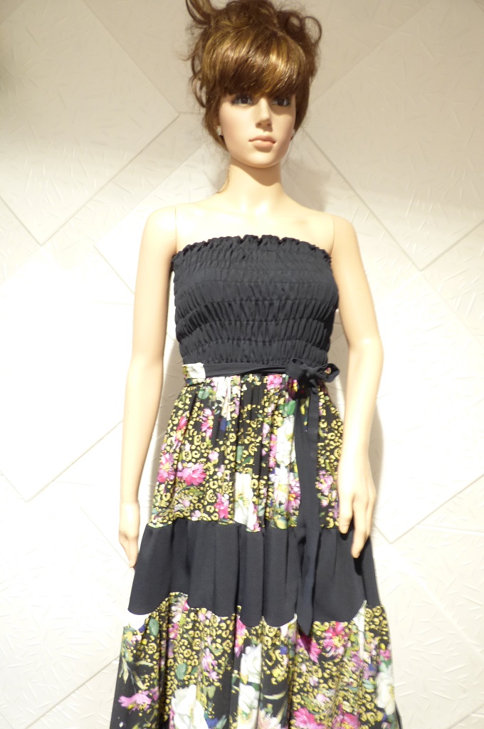 Елегантна пола или рокля на болани и ластици , изработена от сатениран памук и тъмно син текстил.