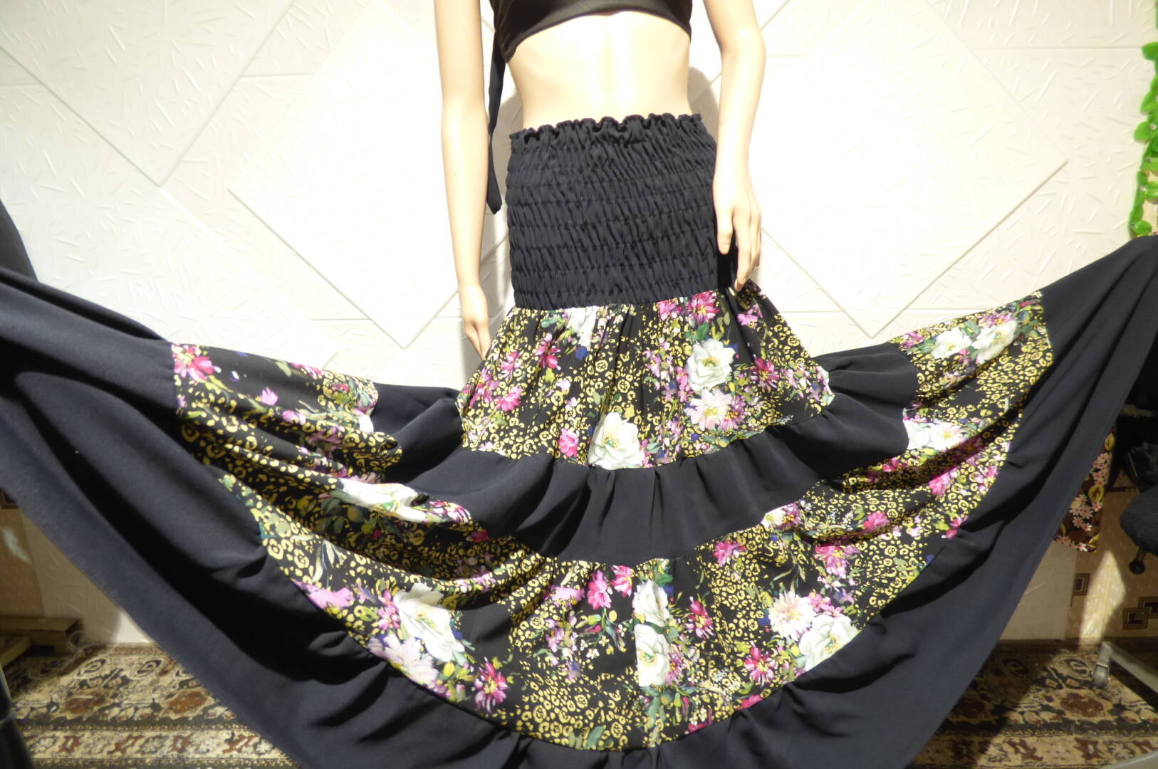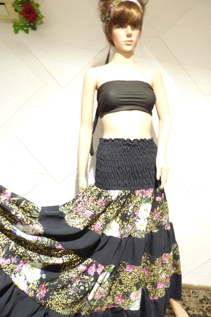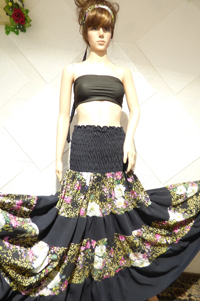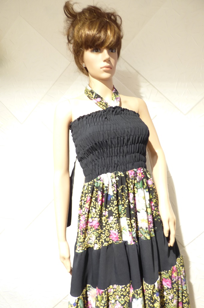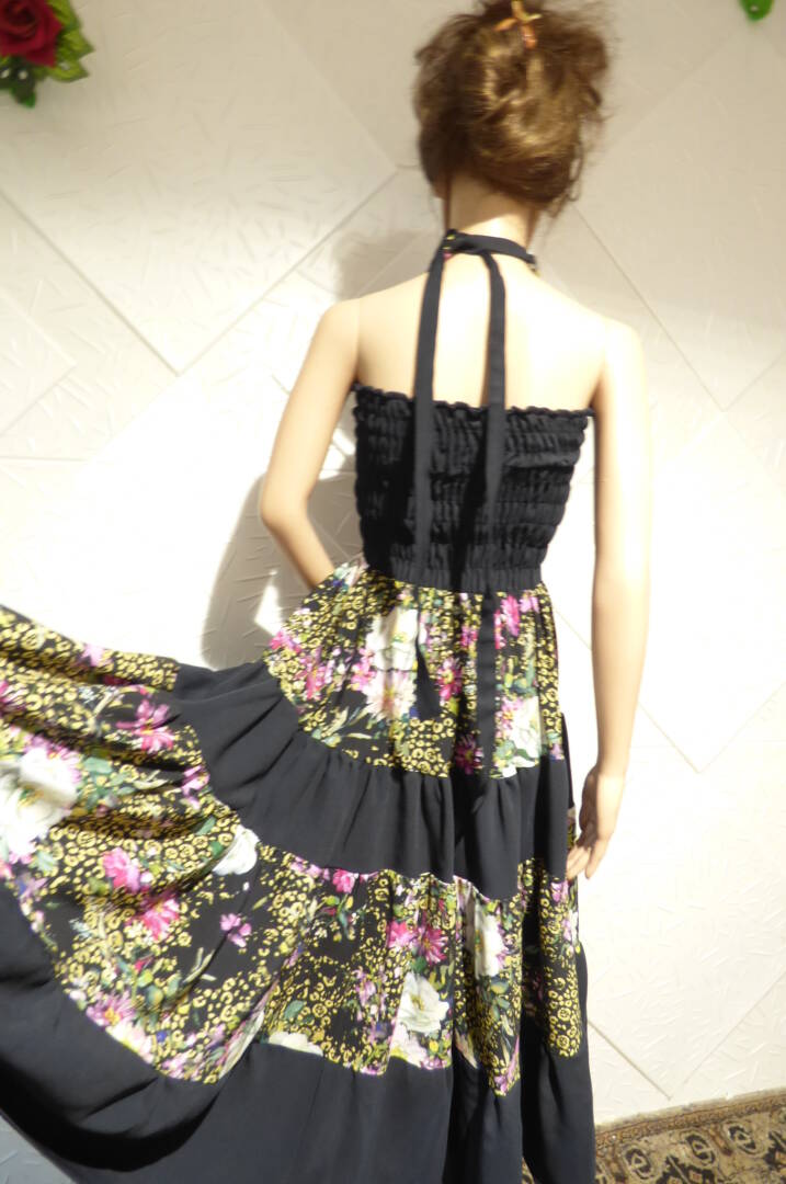 Елегантна пола или рокля на болани и ластици , изработена от сатениран памук и тъмно син текстил.
