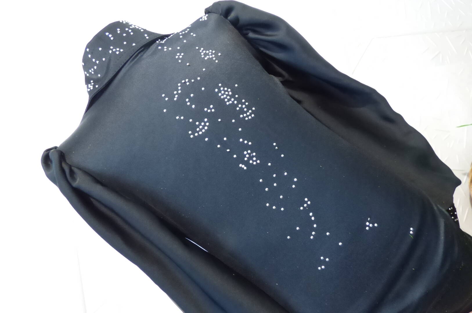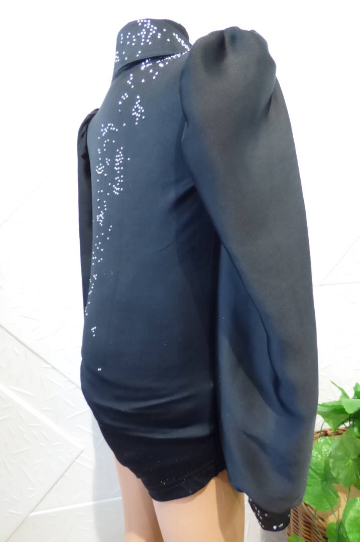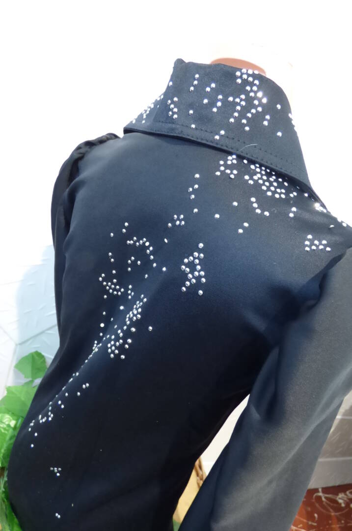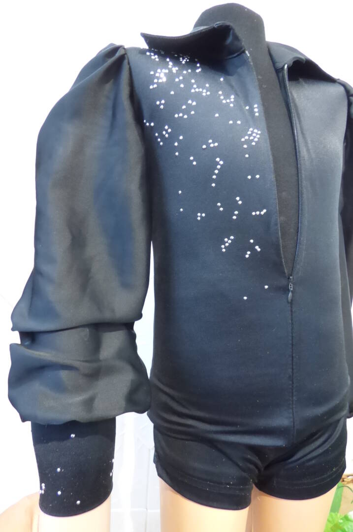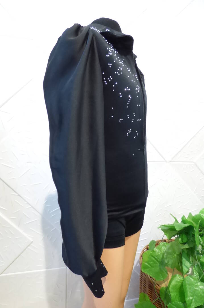 Детска риза за спортни танци с широки ръкави , изработена от полиамид – ликра , коприна , кристали и скрит цип, ризата е с боксерки .