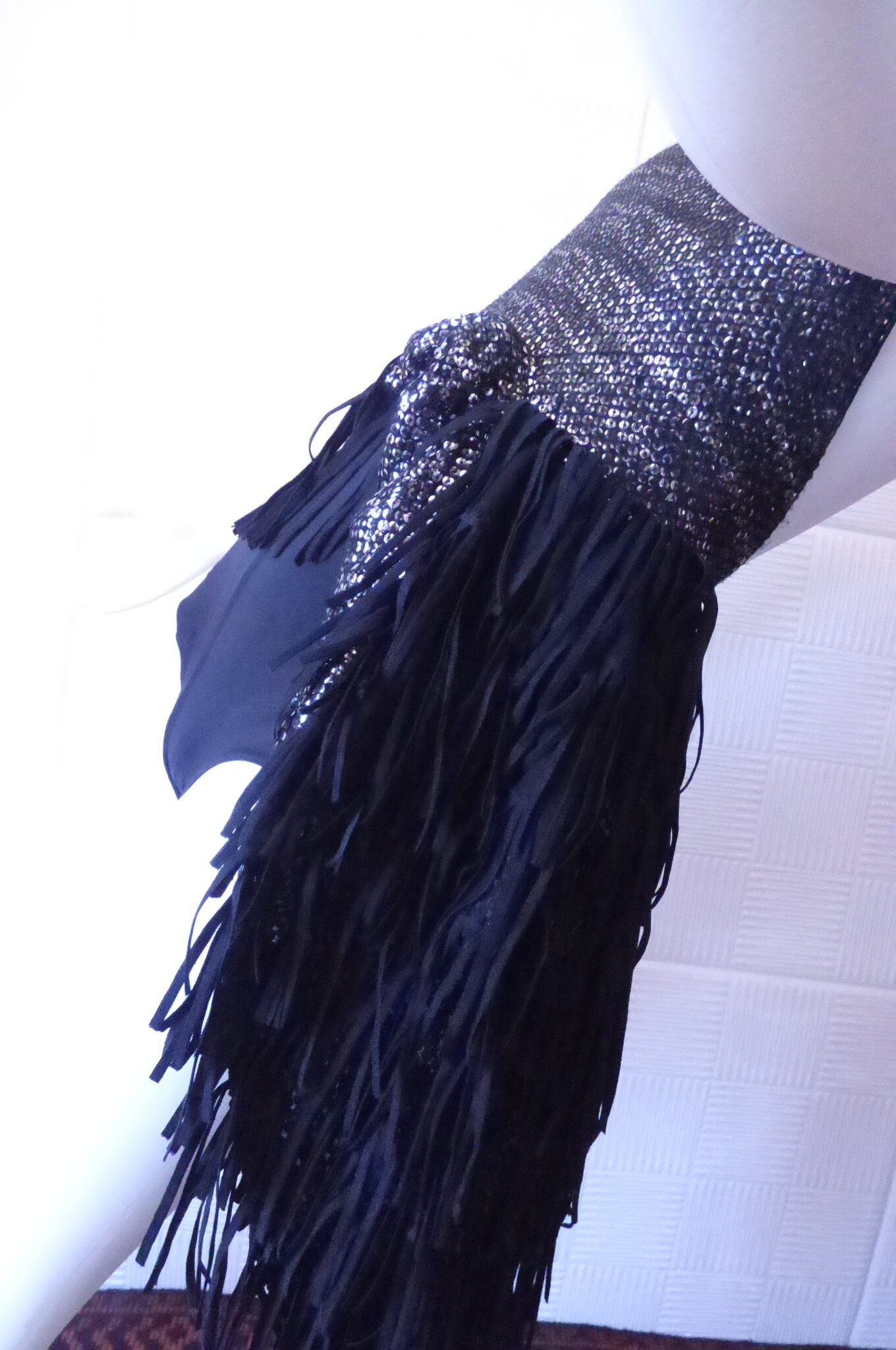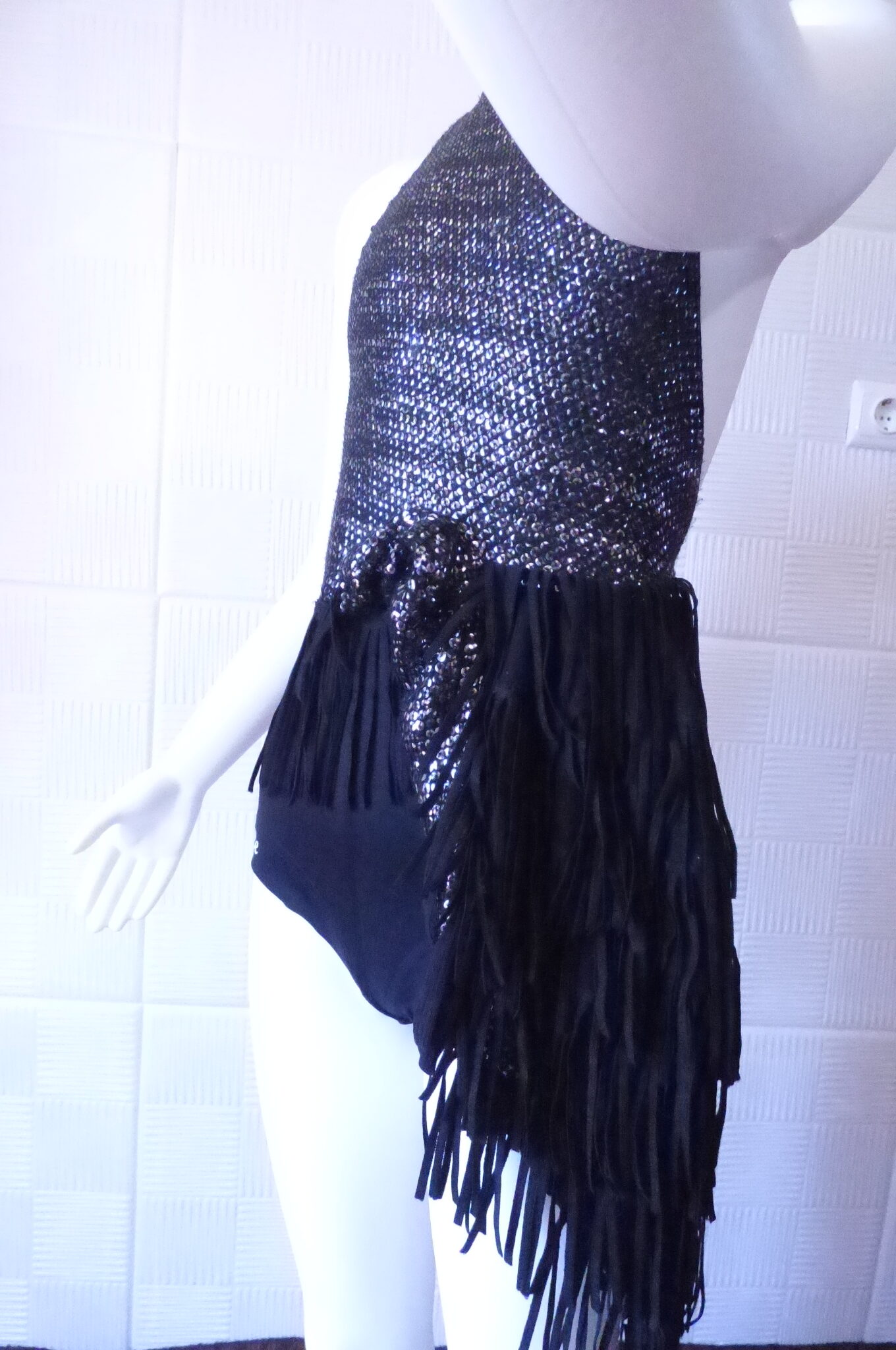 изработена от текстил с паети ,ликра ,лазарно нарязани ресни,