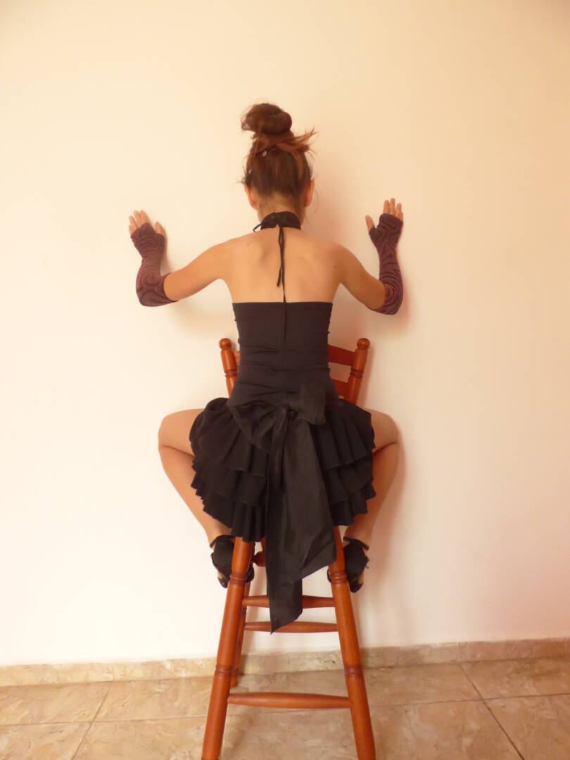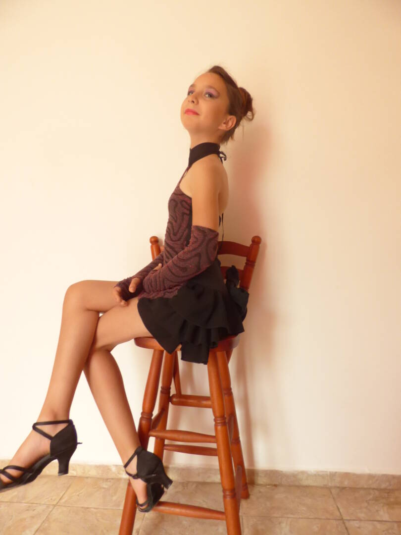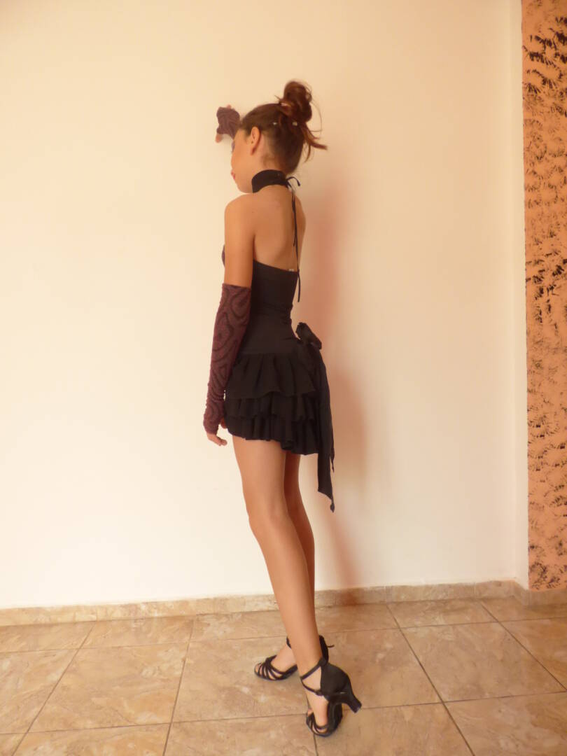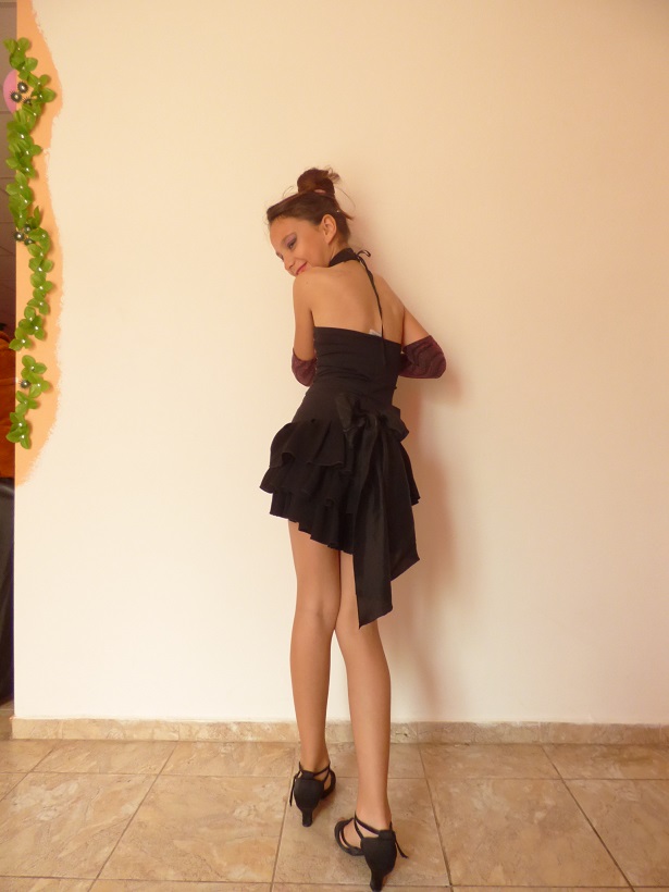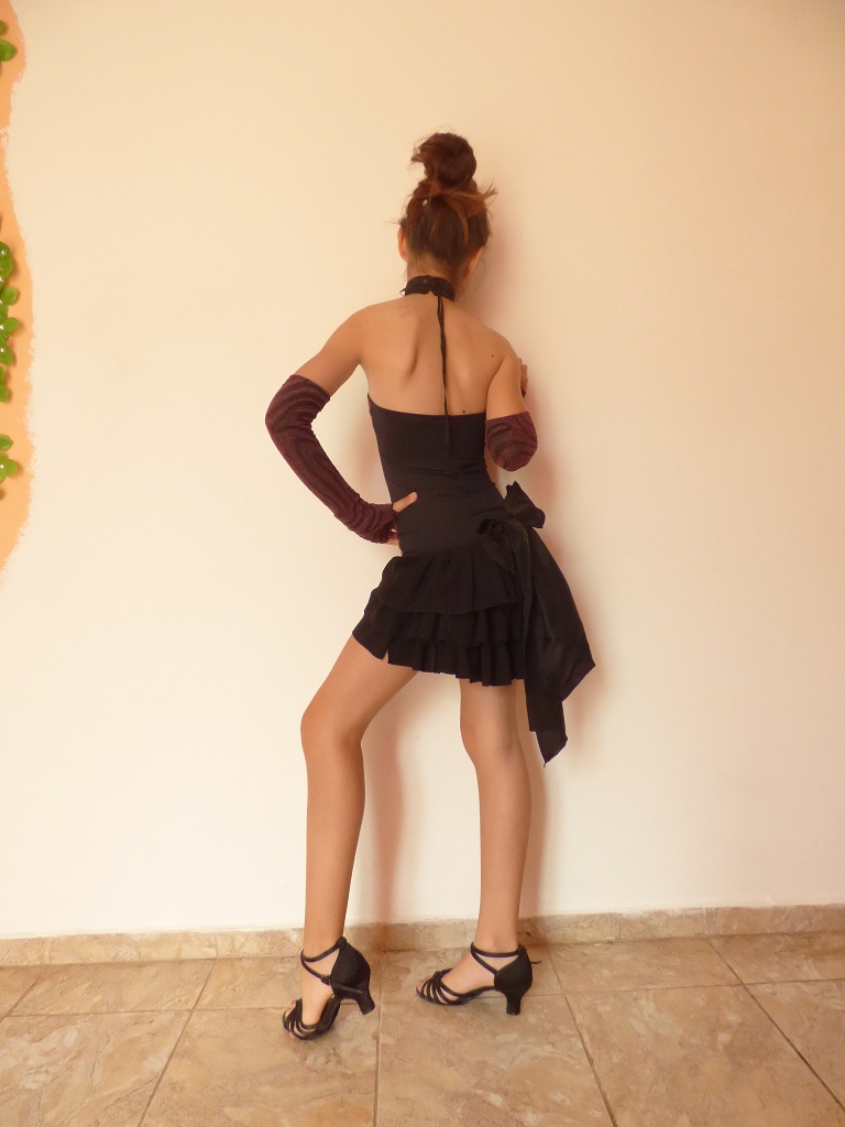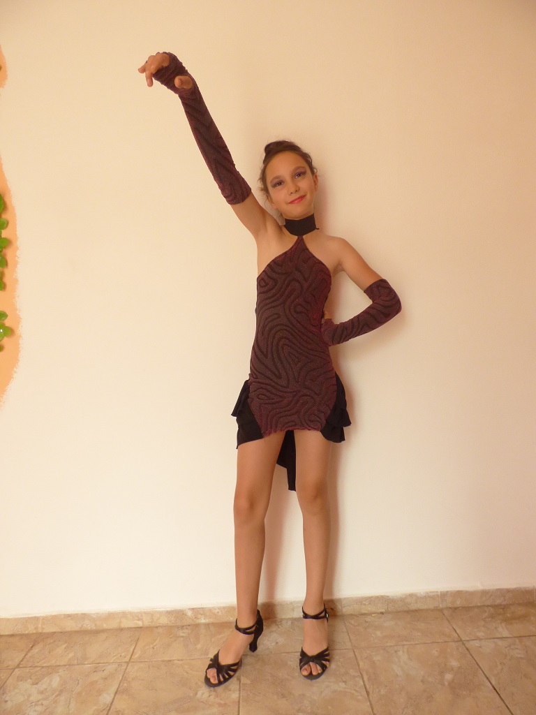 Рокля за спортни танци или фигурно пързаляне ,изработена от полиамид с еластан . Модела е походящ за дете с видочина от 128 см. до 146 см.