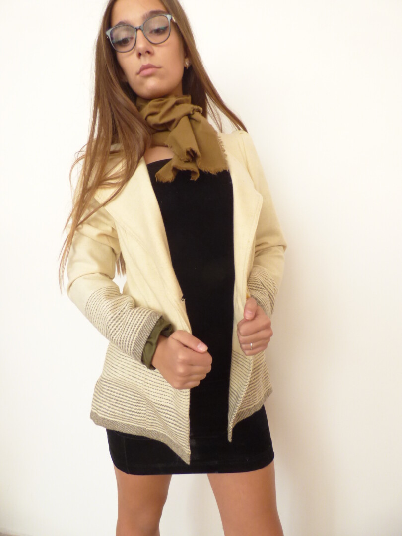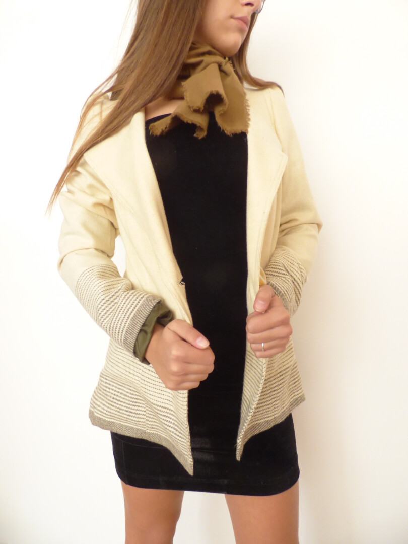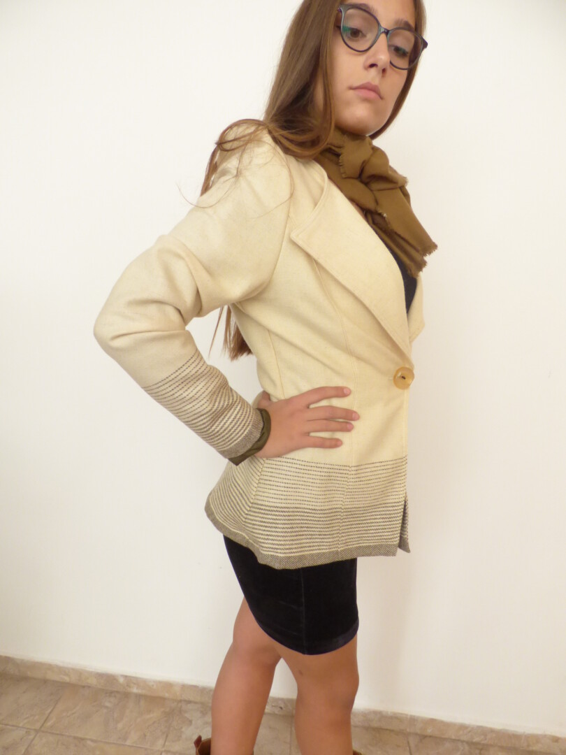 Елегантно дамско сако от вълнен текстил .