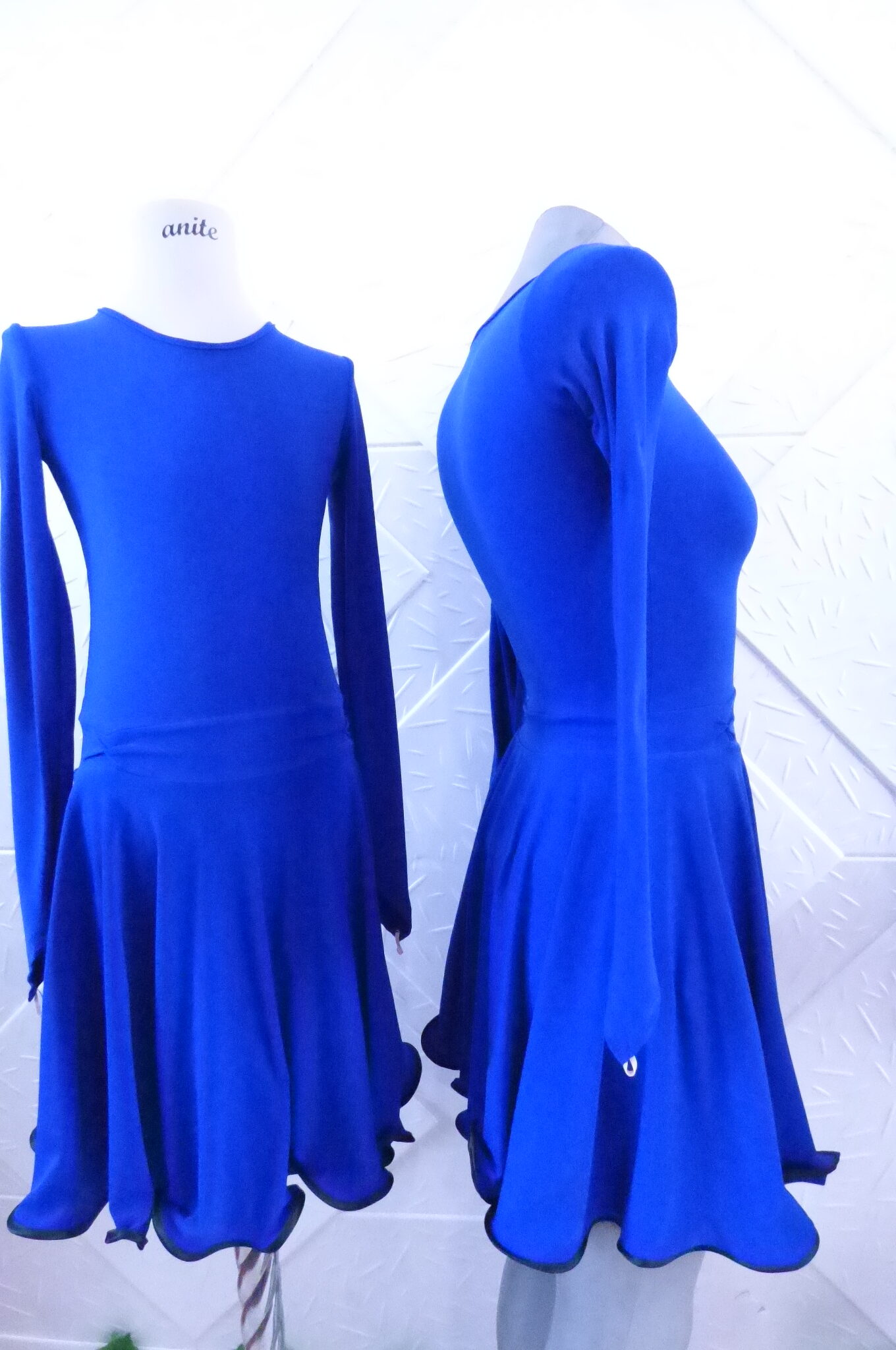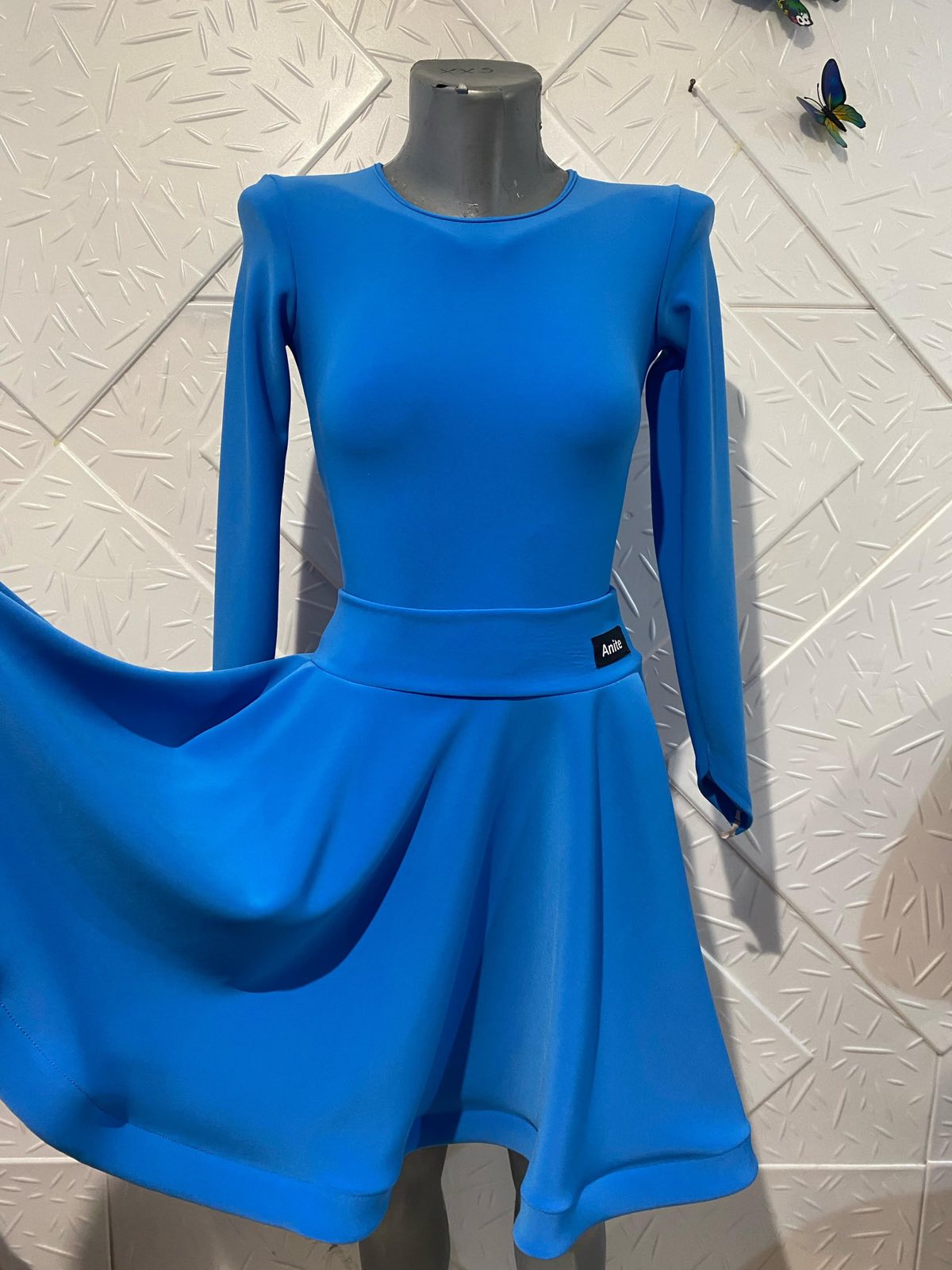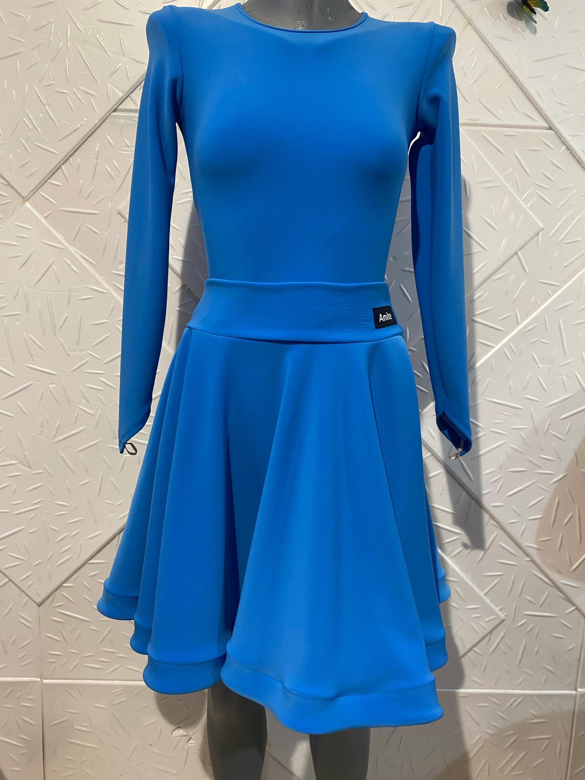 Синя рокля за латино танци , Може да се изработи и в други цветове и с ваши размери.