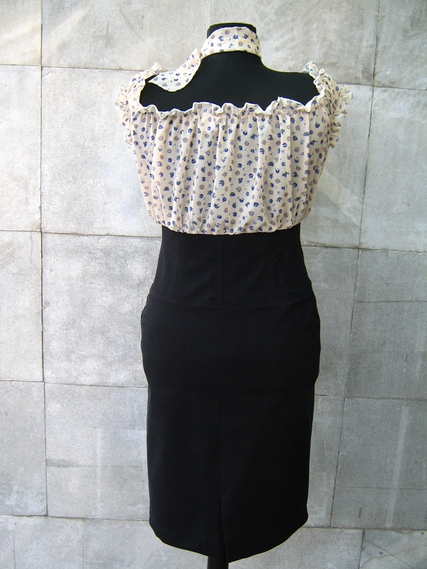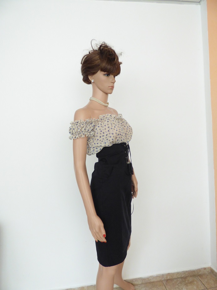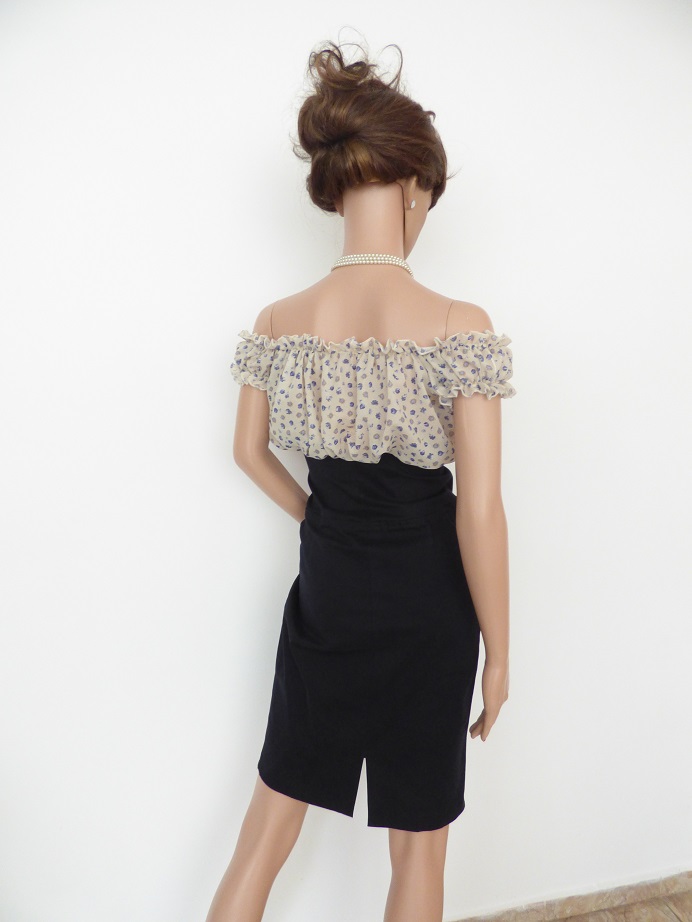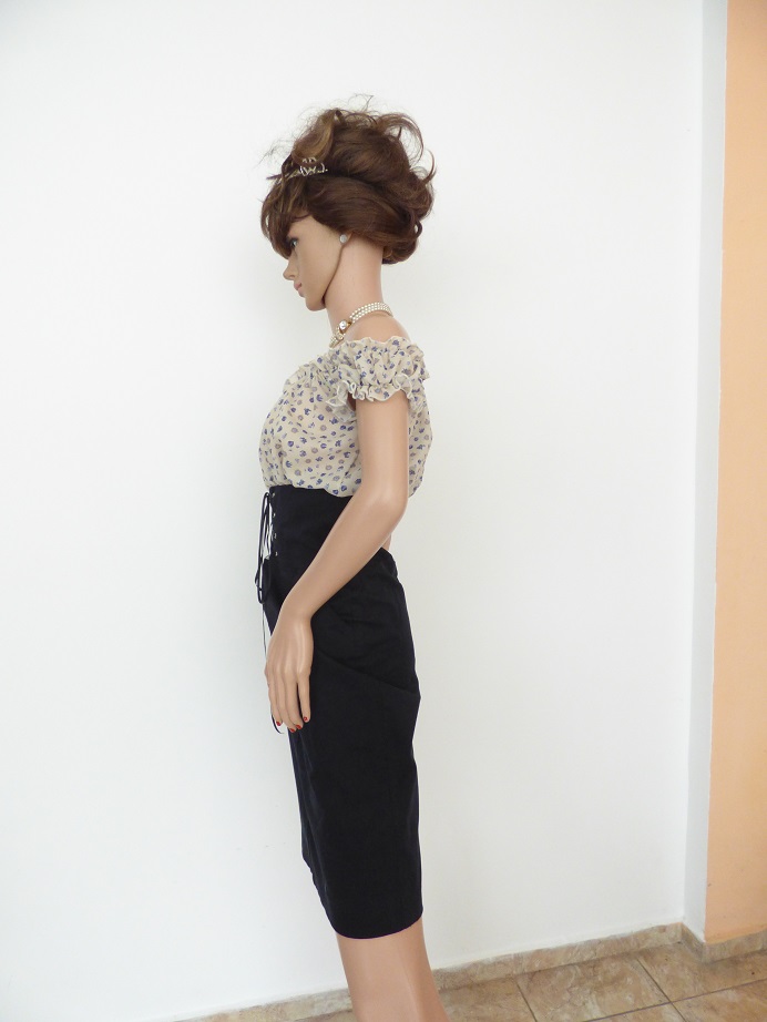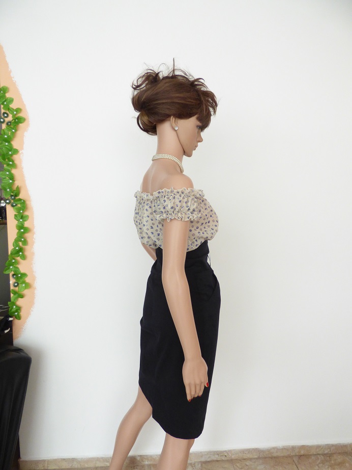 изработена от шифон и памучен тъмно син текстил с лек еластан .