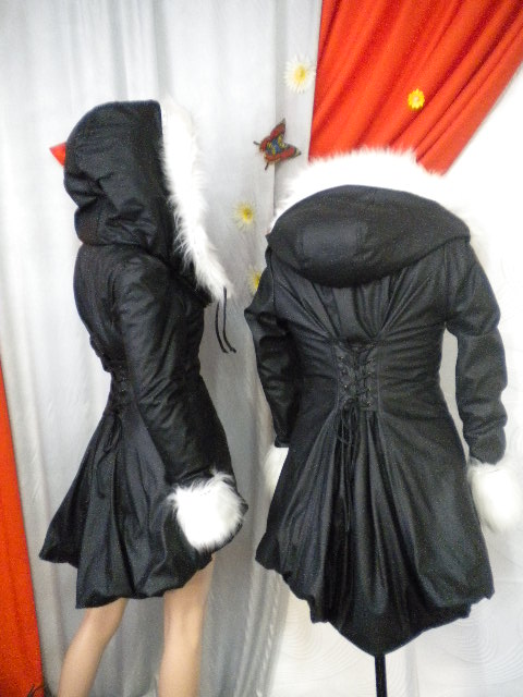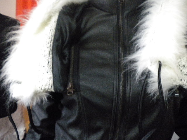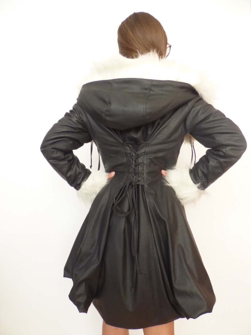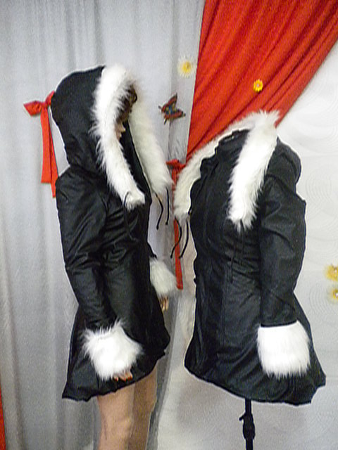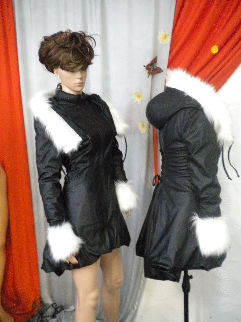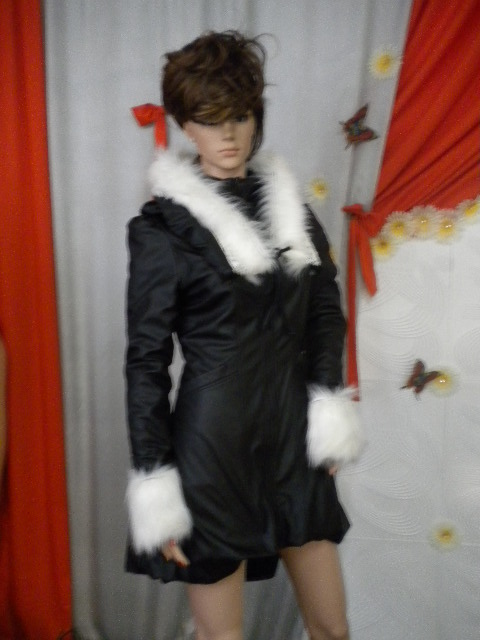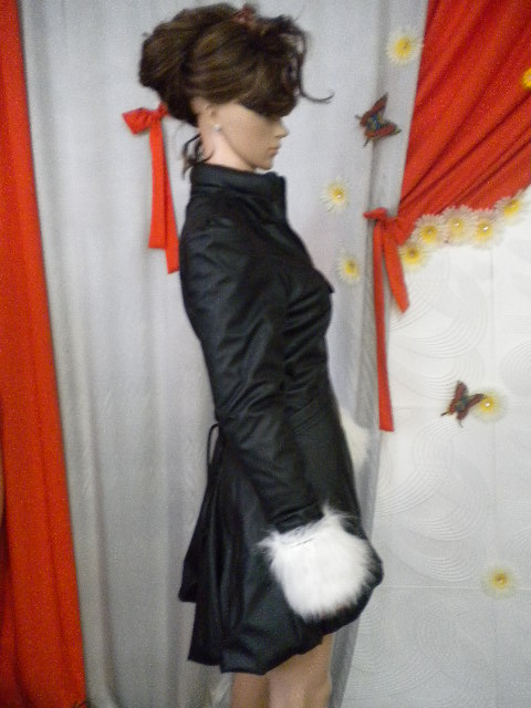 изработено от черна еко кожа , бял пух ,хастар с вата,